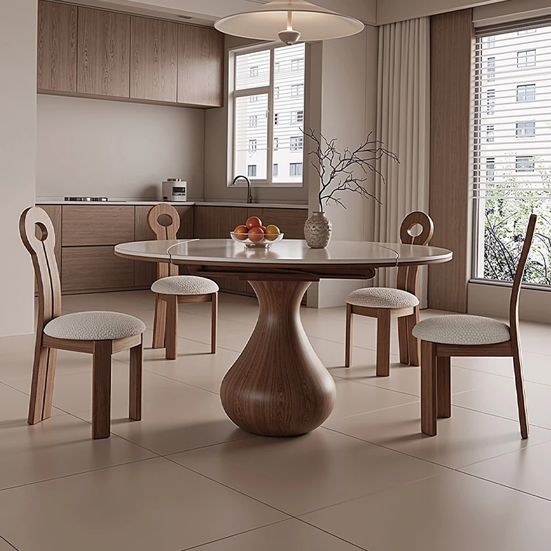 Luxury Solid Wood Round Dining Table Set with Integrated Heating Plate – Modern Minimalist Design for Small Spaces, Perfect for Stylish Homes