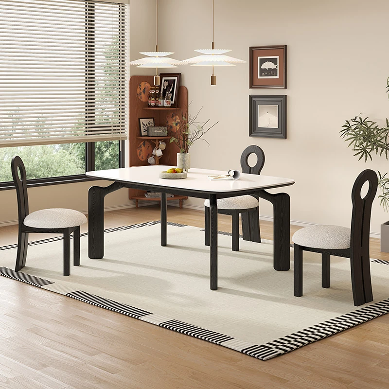 Italian Luxury Minimalist Rectangular Dining Table and Chair Set for Small Spaces - Modern Home Dining Furniture for Stylish Western Cuisine