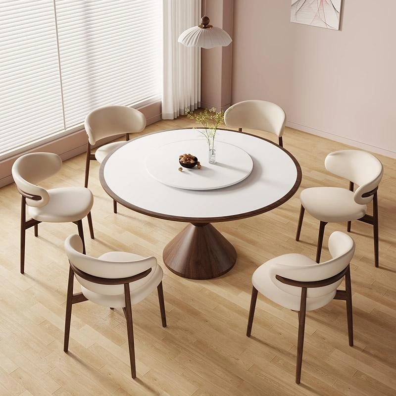 Nordic Modern Minimalist Round Dining Table Set with Lazy Susan - Solid Wood and Marble Combination for Home Use, Perfect for Family Meals and Gatherings