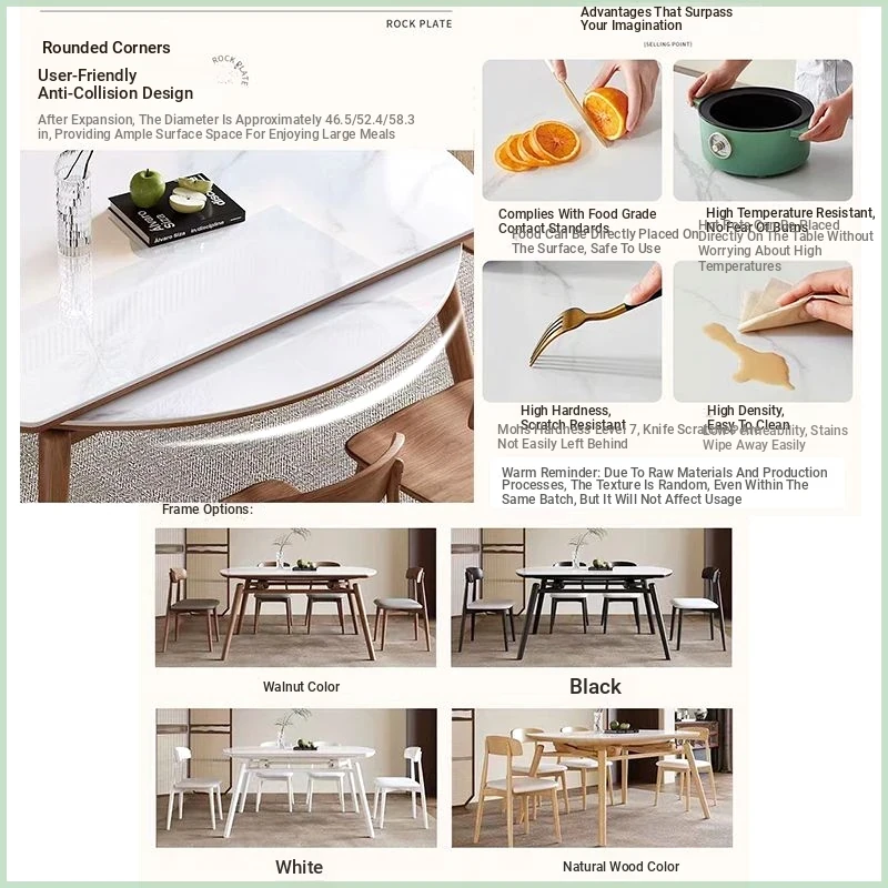 Nordic Versatile Dining Table - Expandable Round Turntable with Adjustable Size, Stylish Oval Folding Table for Home Use, Perfect for Family Gatherings and Entertaining