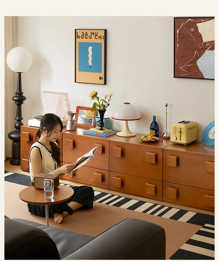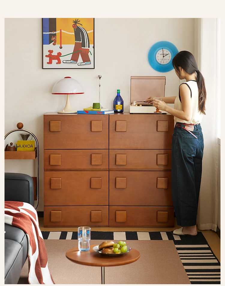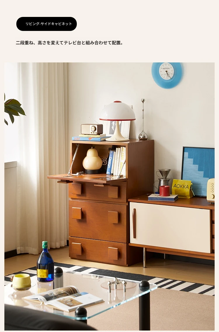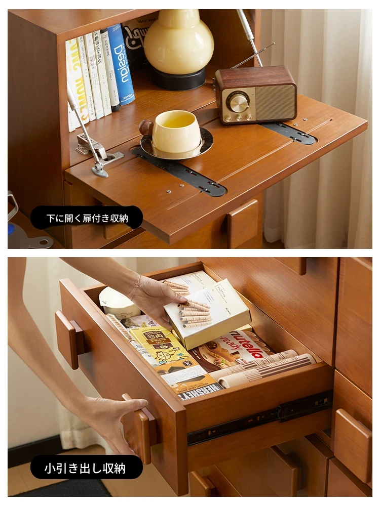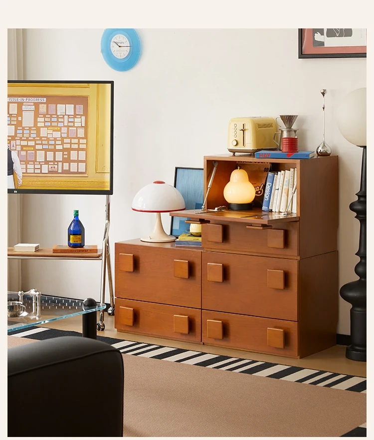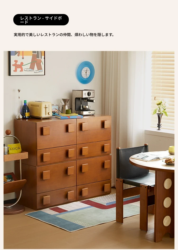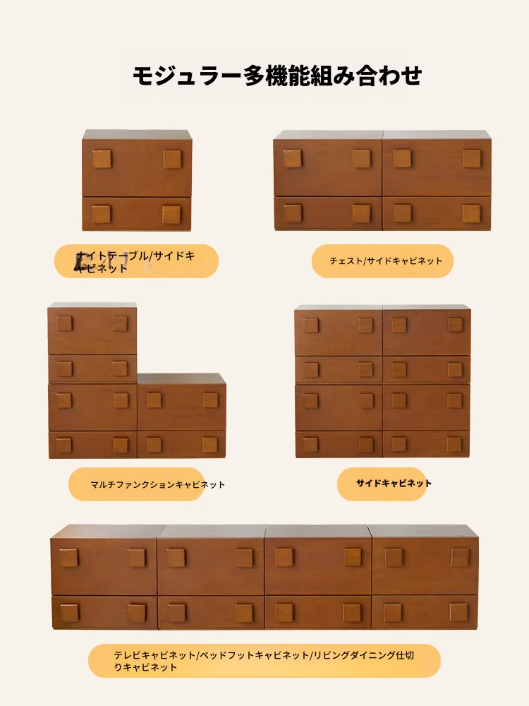 栗の公園 カルメン 収納キャビネット 多機能モジュール式 天然木製 リビングルーム用 クラシックなデザインの引き出しキャビネット おしゃれで使いやすい ベッドルームのサイドキャビネットにも最適!