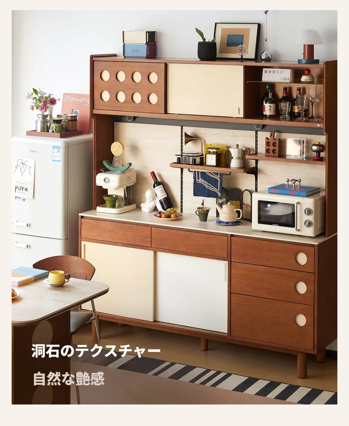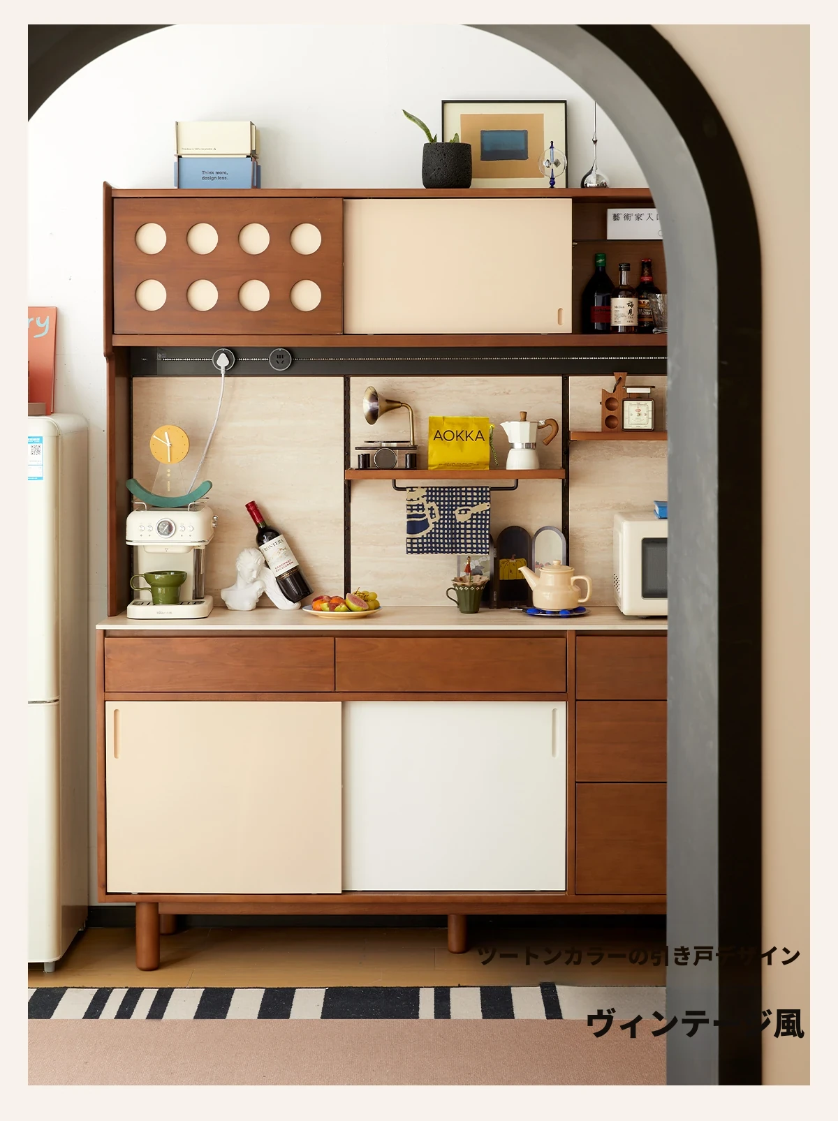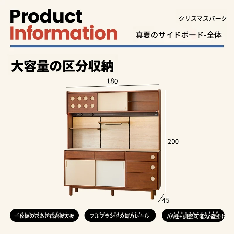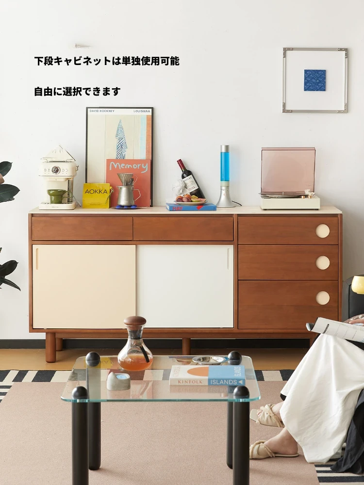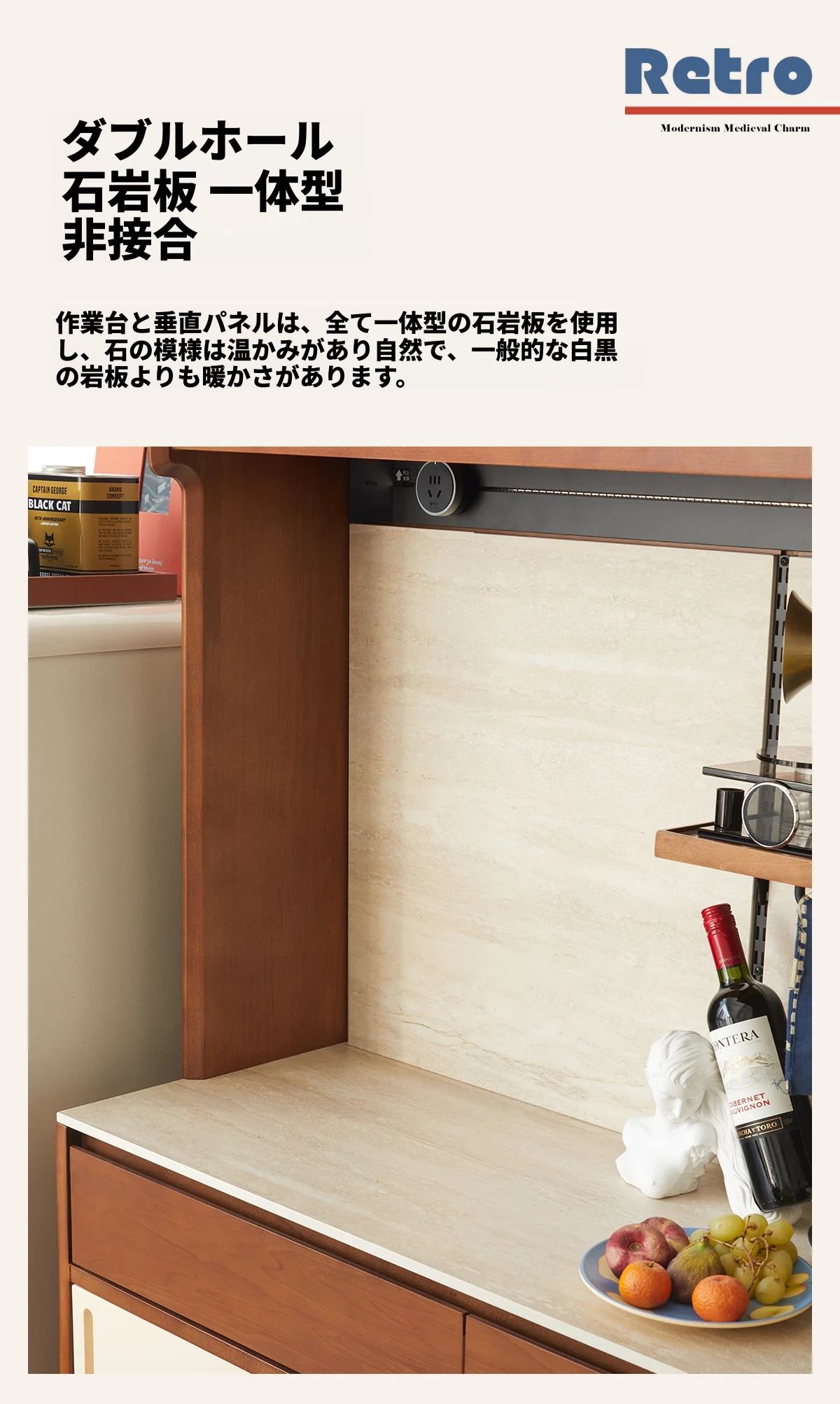栗子公園の夏限定!実木製のレトロ風デザイン、洞石岩板使用の壁面一体型キャビネット。リビングにぴったりな収納力抜群の高級収納キャビネットで、スタイリッシュな空間を演出!
