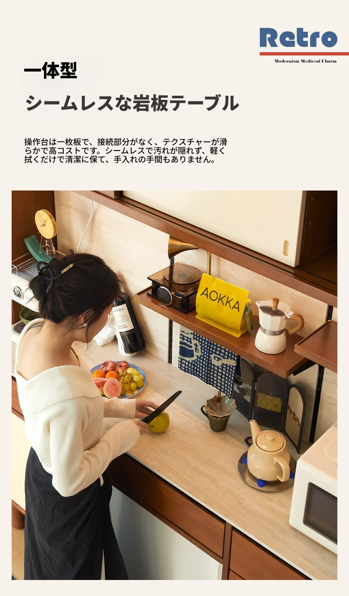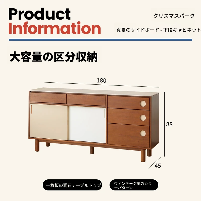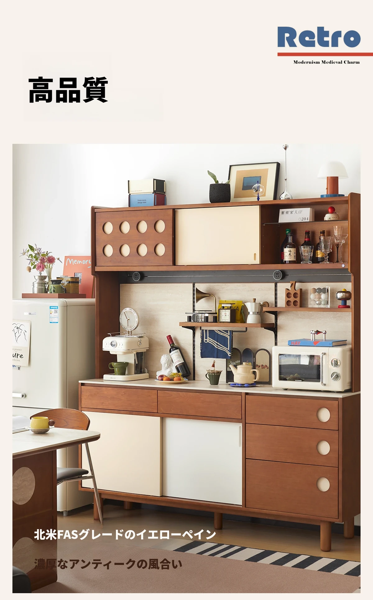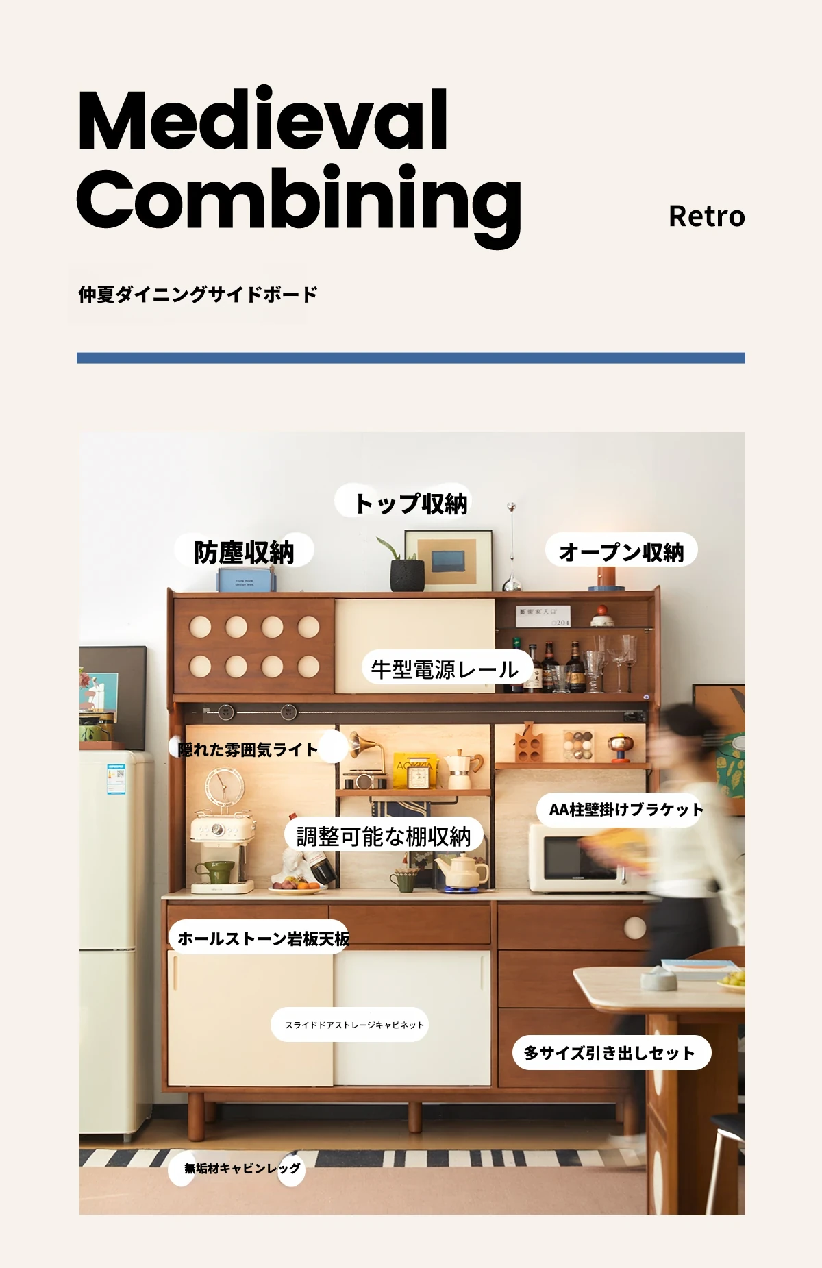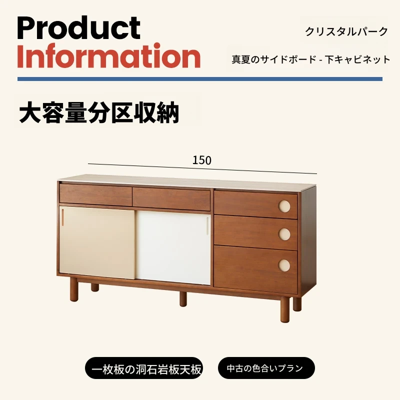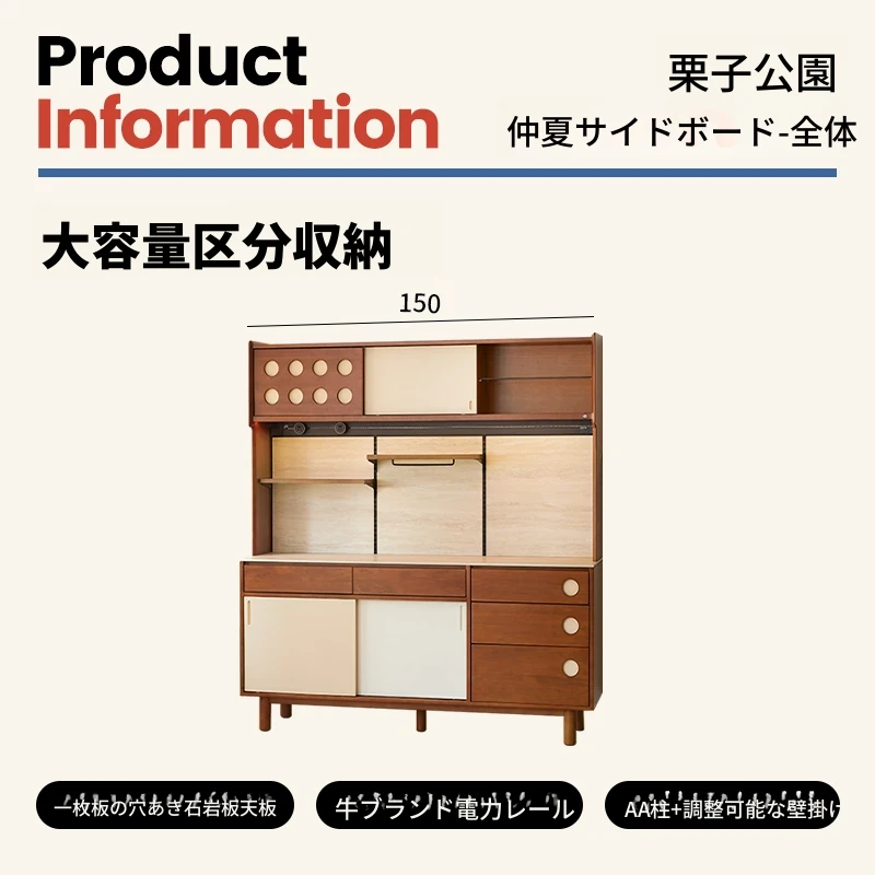 栗子公園の夏限定!実木製のレトロ風デザイン、洞石岩板使用の壁面一体型キャビネット。リビングにぴったりな収納力抜群の高級収納キャビネットで、スタイリッシュな空間を演出!