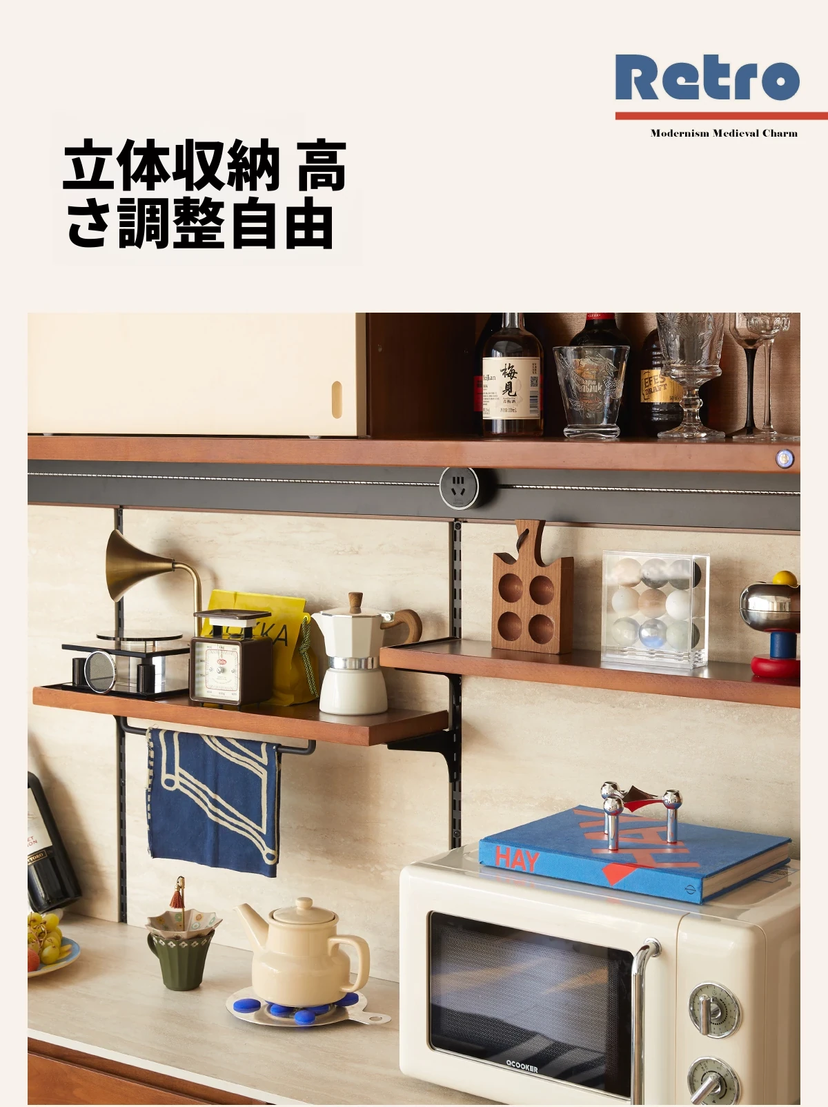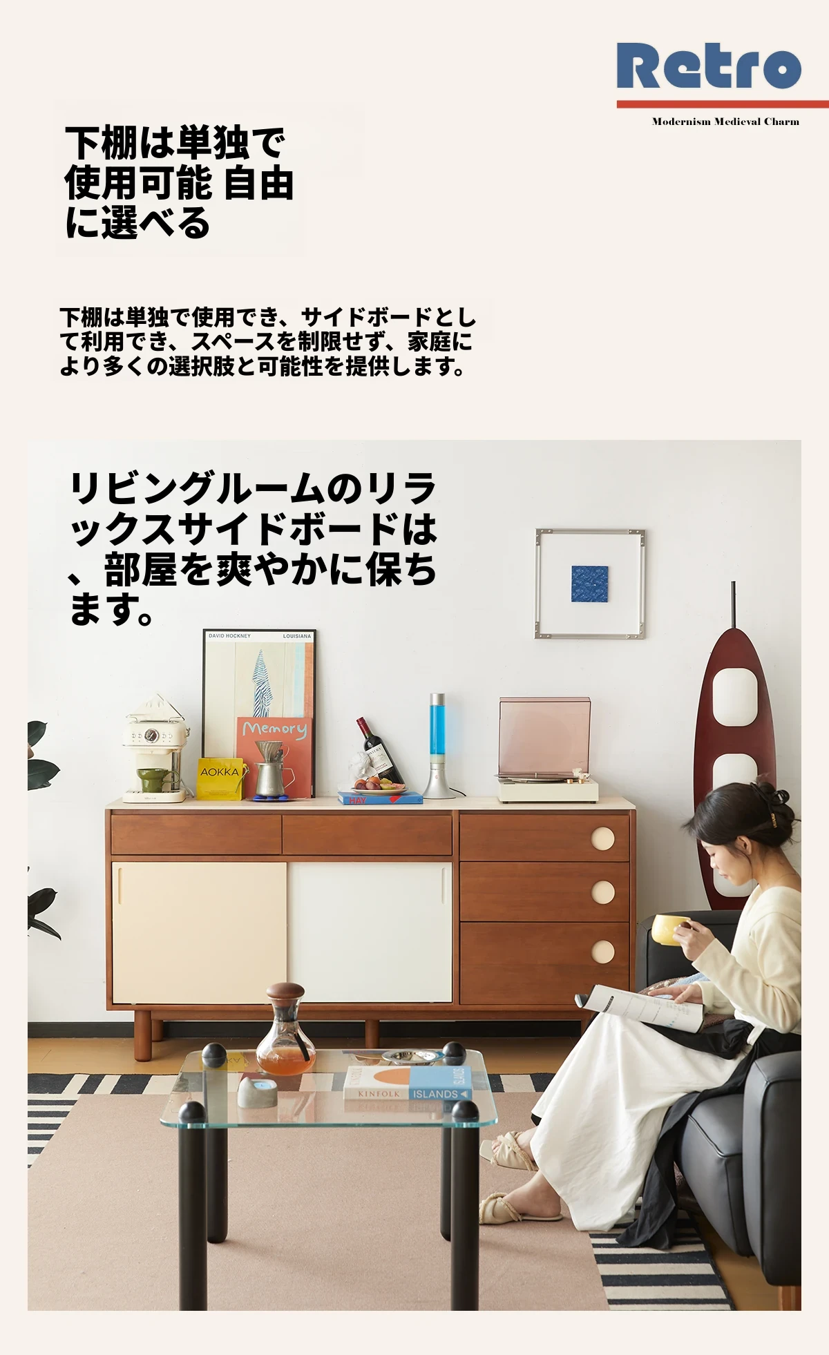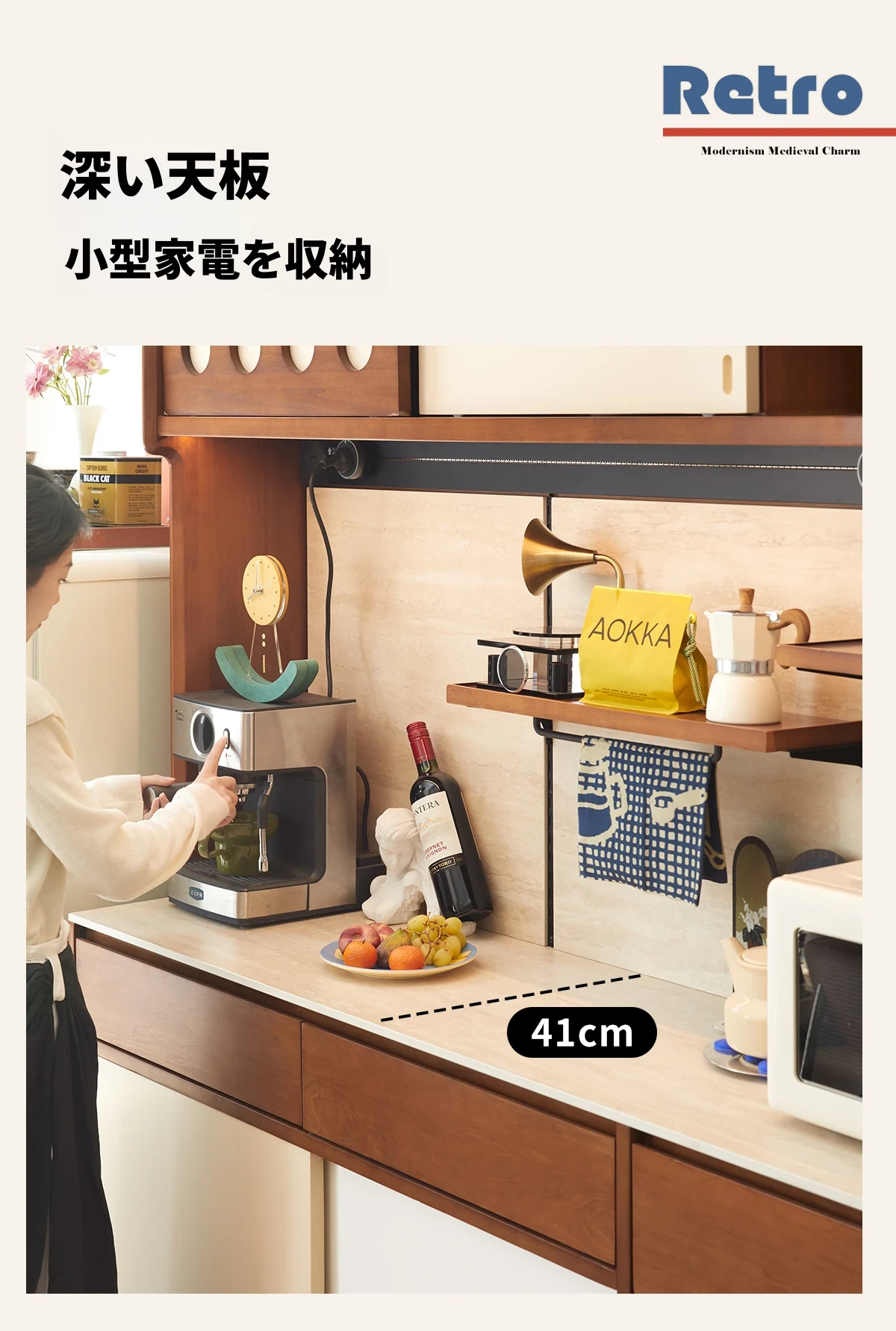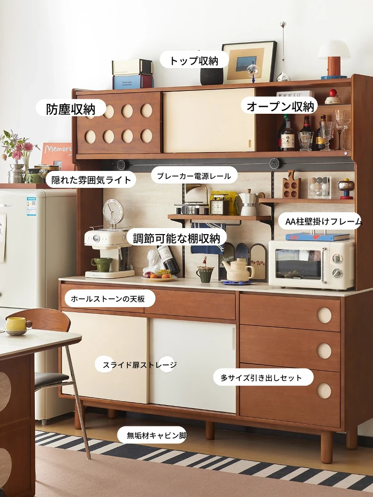 栗子公園の夏限定!実木製のレトロ風デザイン、洞石岩板使用の壁面一体型キャビネット。リビングにぴったりな収納力抜群の高級収納キャビネットで、スタイリッシュな空間を演出!
