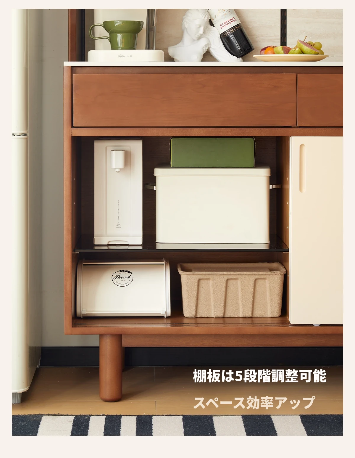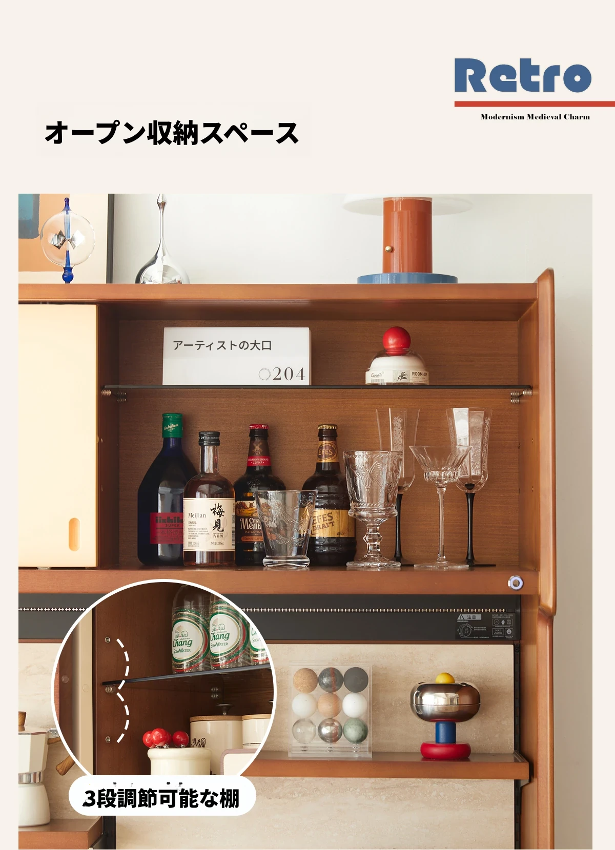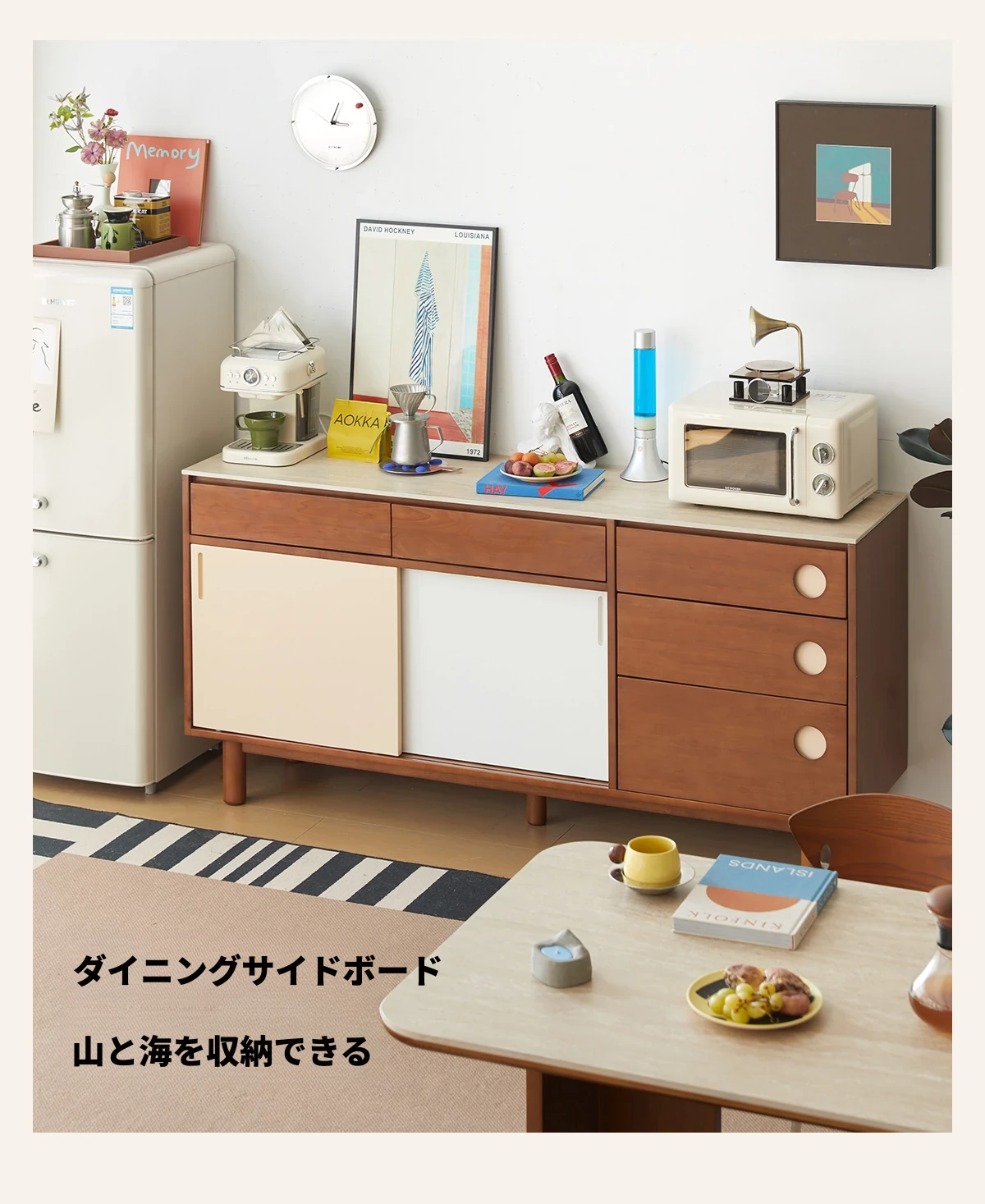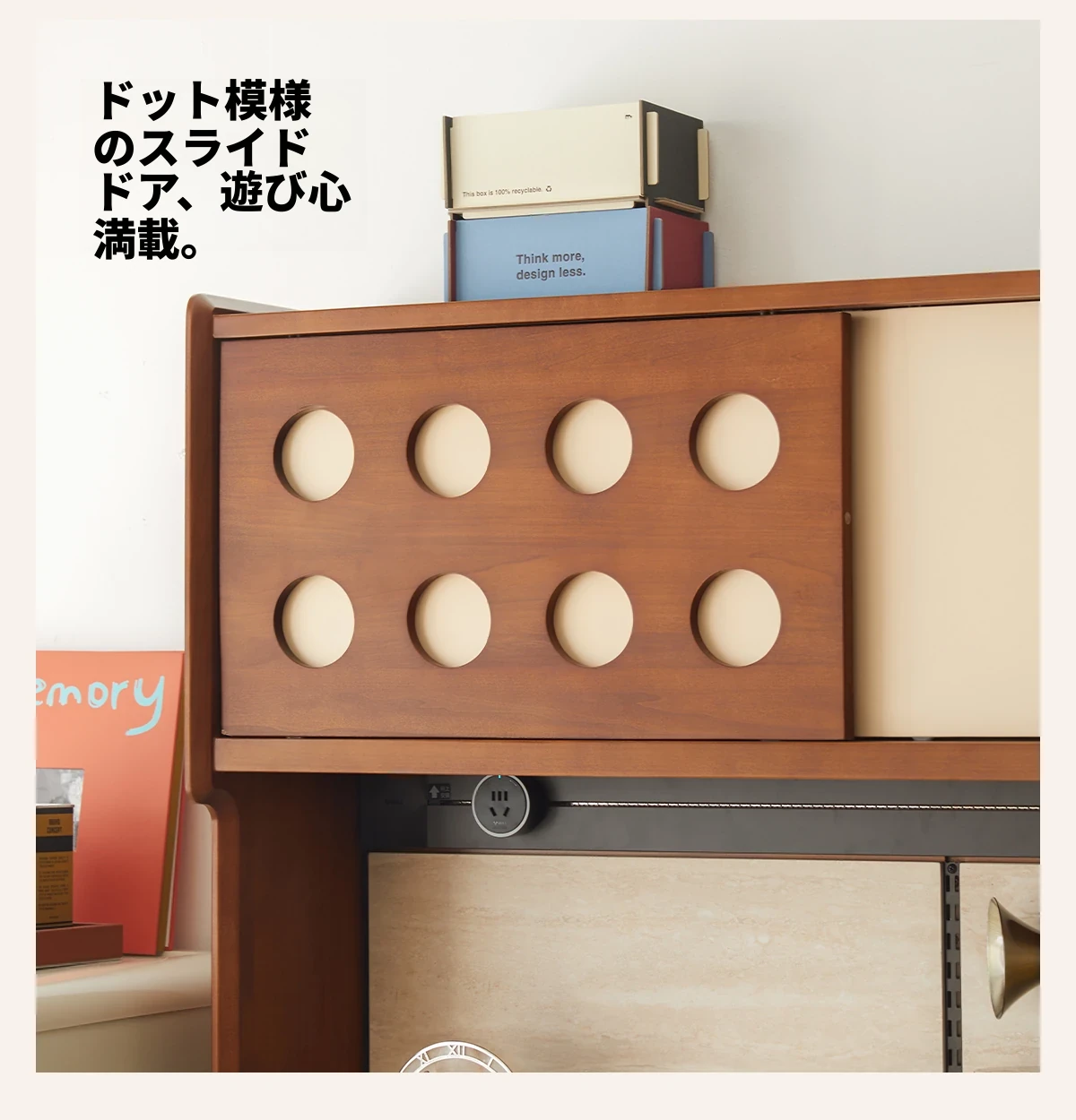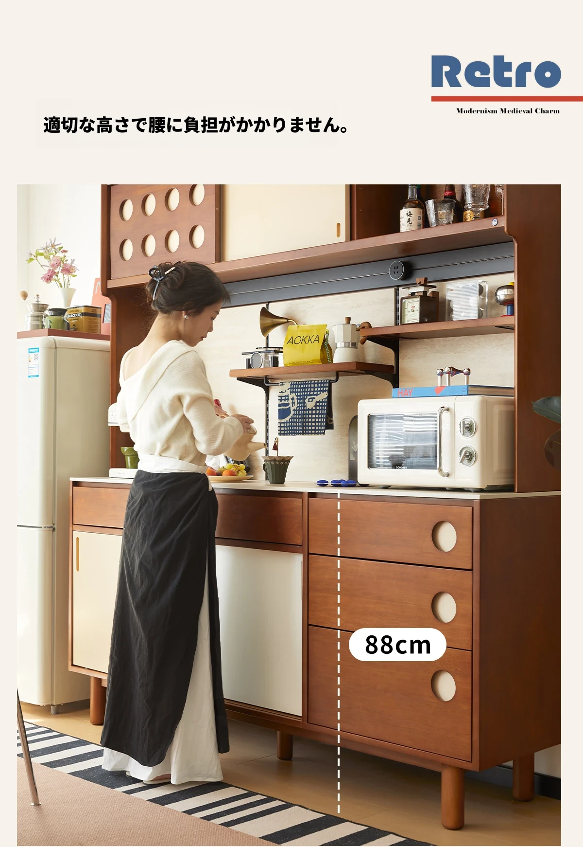 栗子公園の夏限定!実木製のレトロ風デザイン、洞石岩板使用の壁面一体型キャビネット。リビングにぴったりな収納力抜群の高級収納キャビネットで、スタイリッシュな空間を演出!