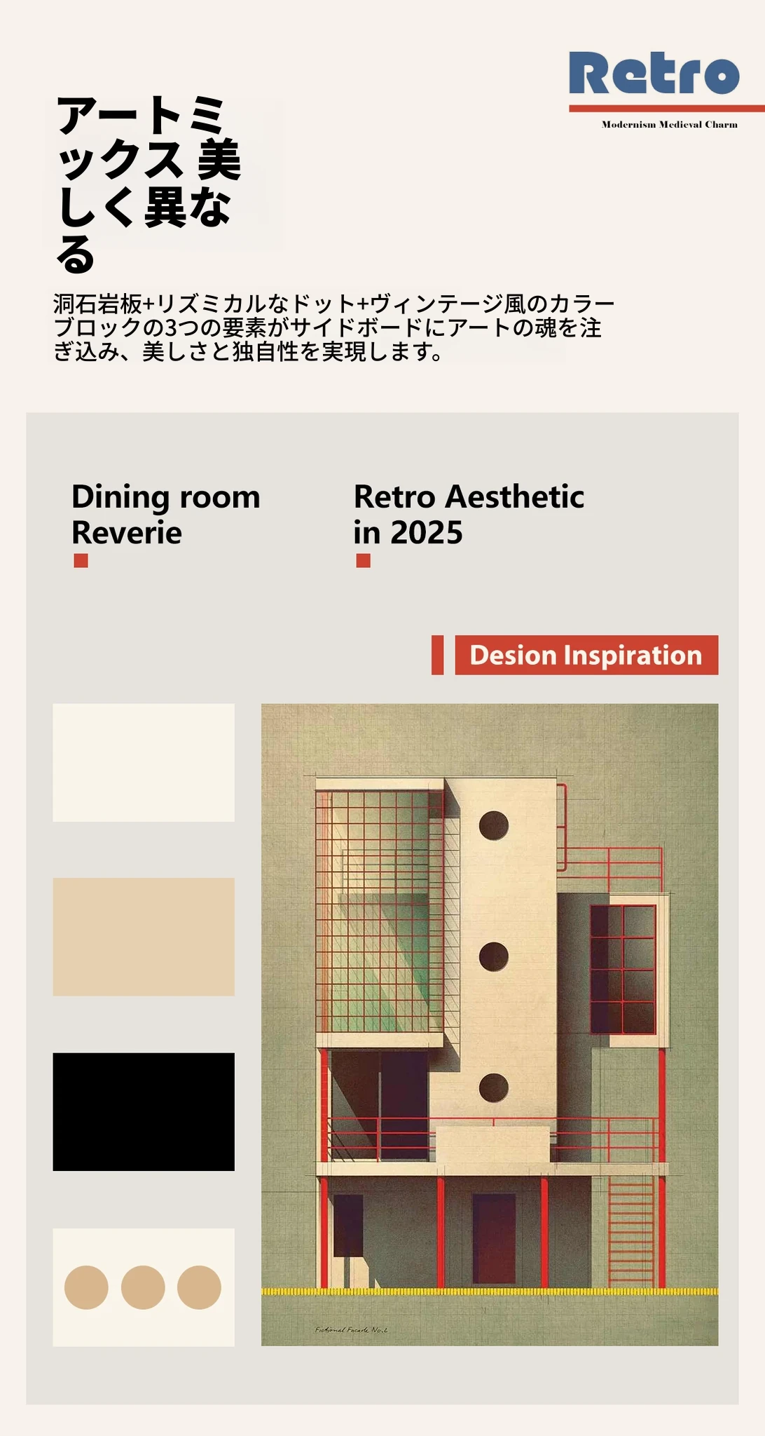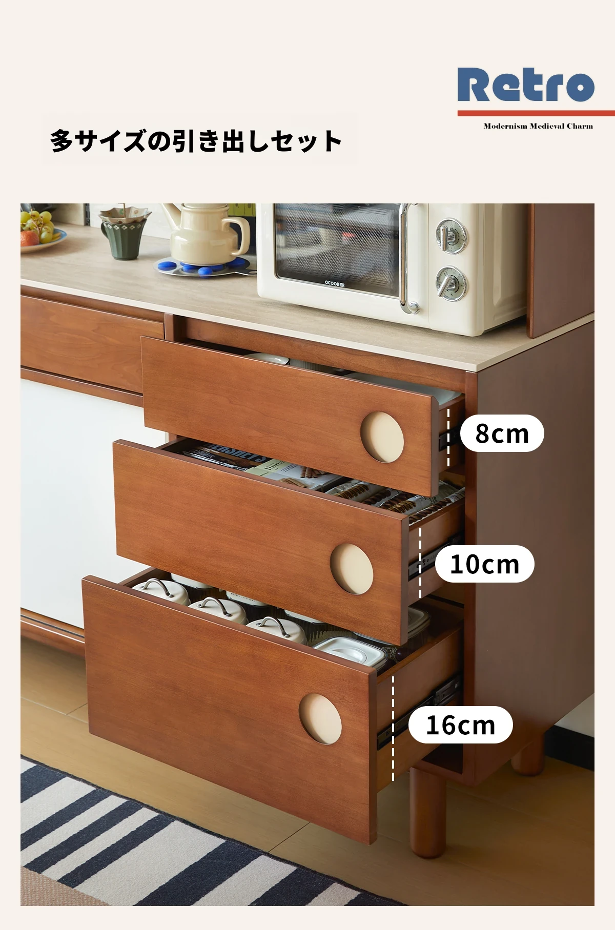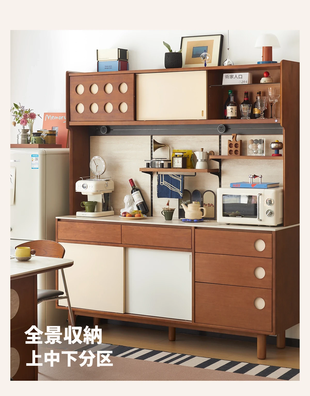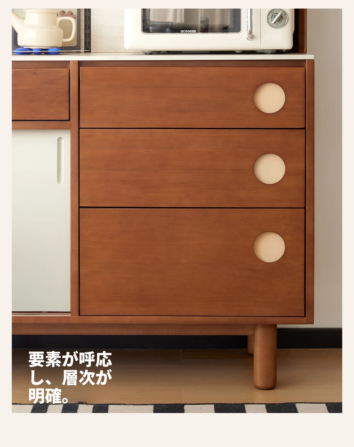 栗子公園の夏限定!実木製のレトロ風デザイン、洞石岩板使用の壁面一体型キャビネット。リビングにぴったりな収納力抜群の高級収納キャビネットで、スタイリッシュな空間を演出!