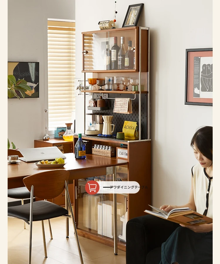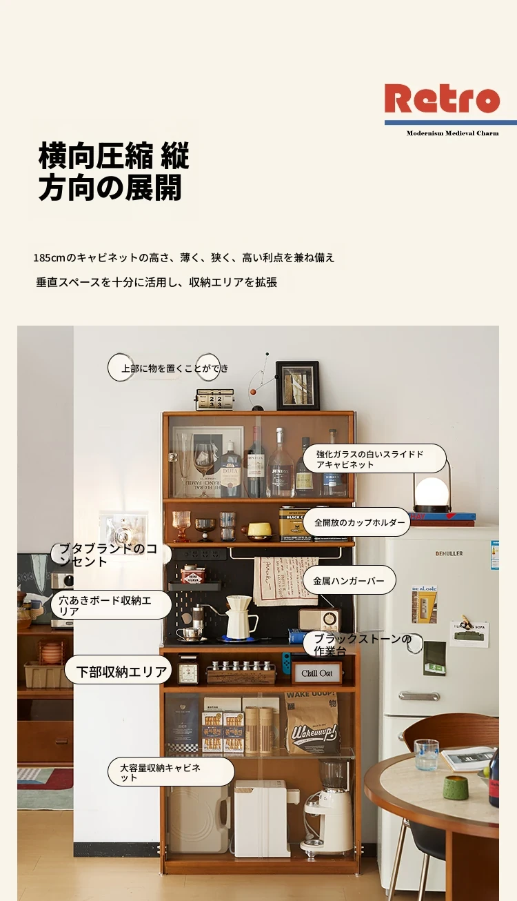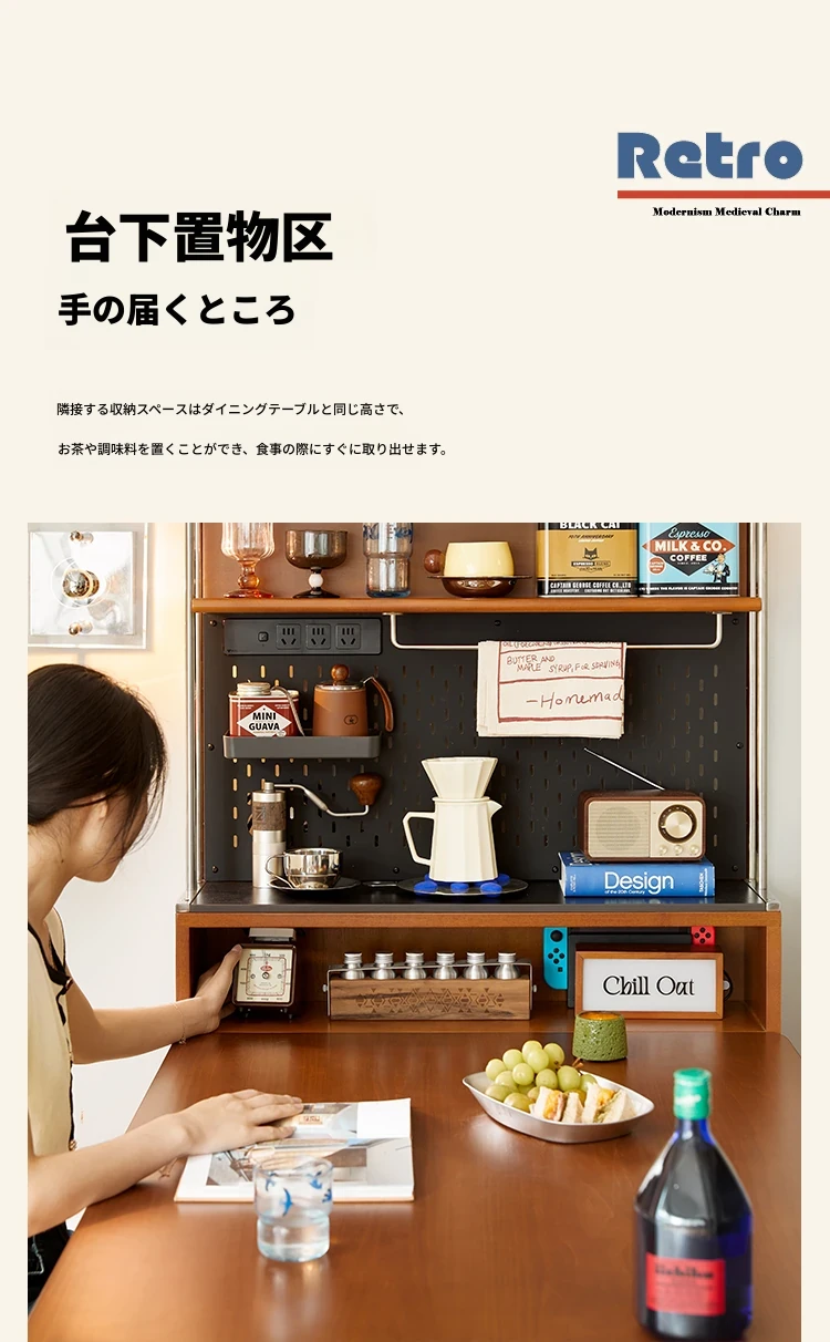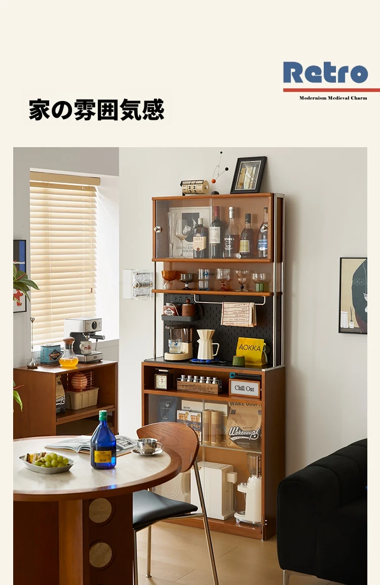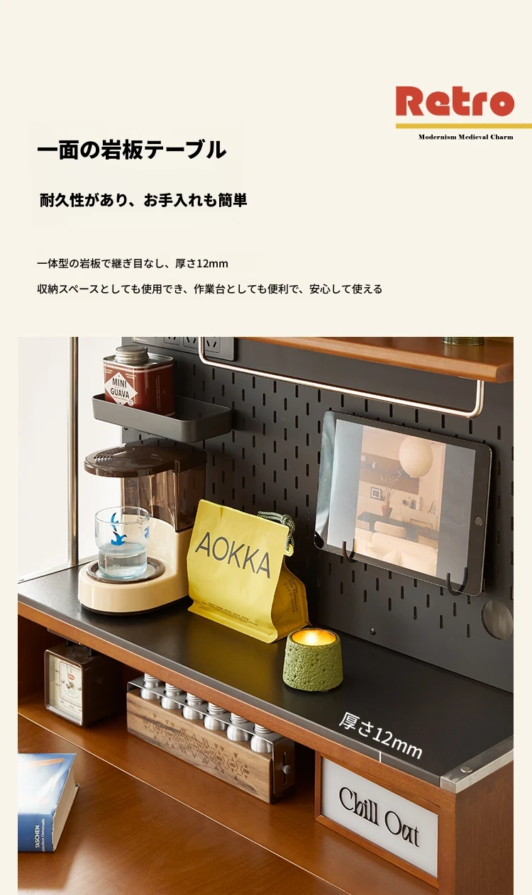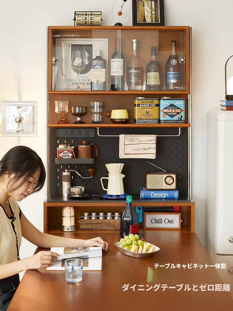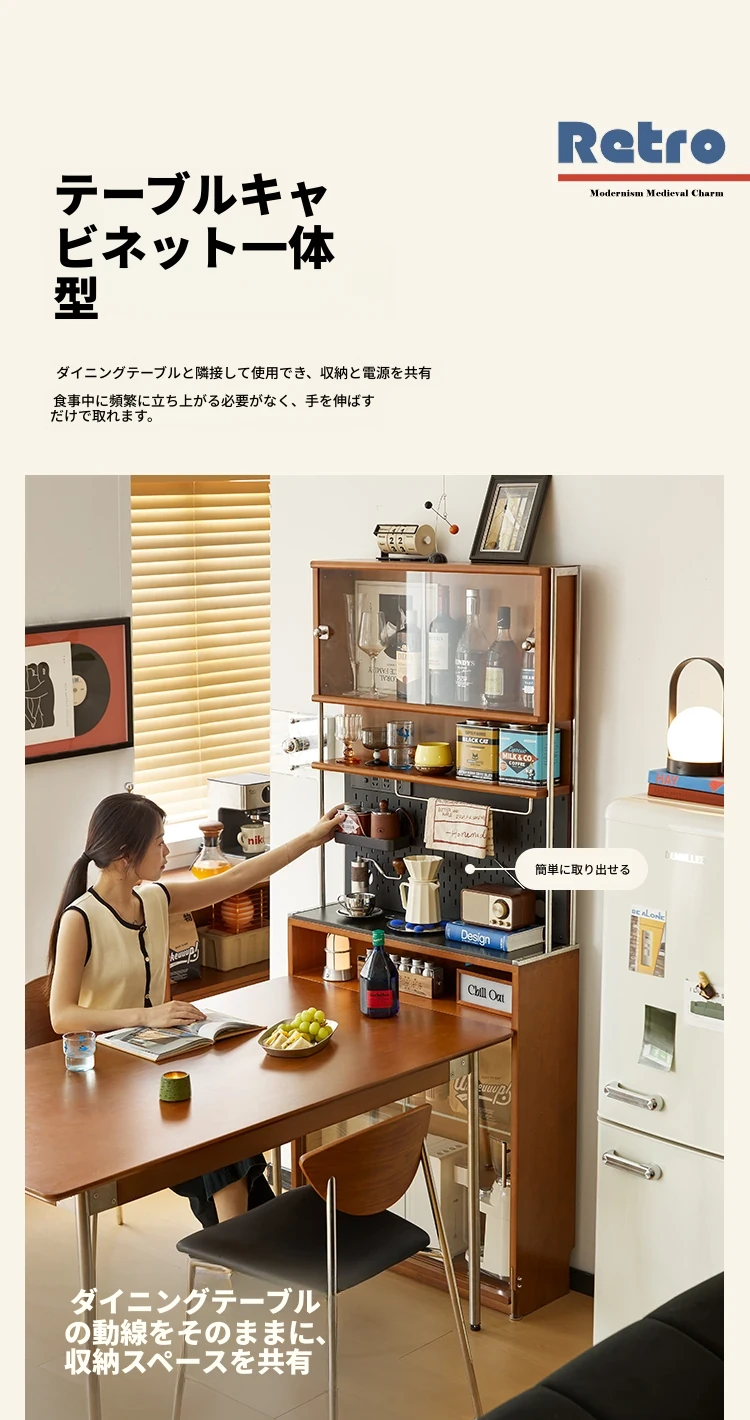栗子公園の超薄型ダイニングサイドキャビネット兼テーブル - 壁にぴったりフィットするレトロな無垢材製、小型住居に最適なスリムでスリムな岩板サイドキャビネット!おしゃれで機能的な空間を演出します。