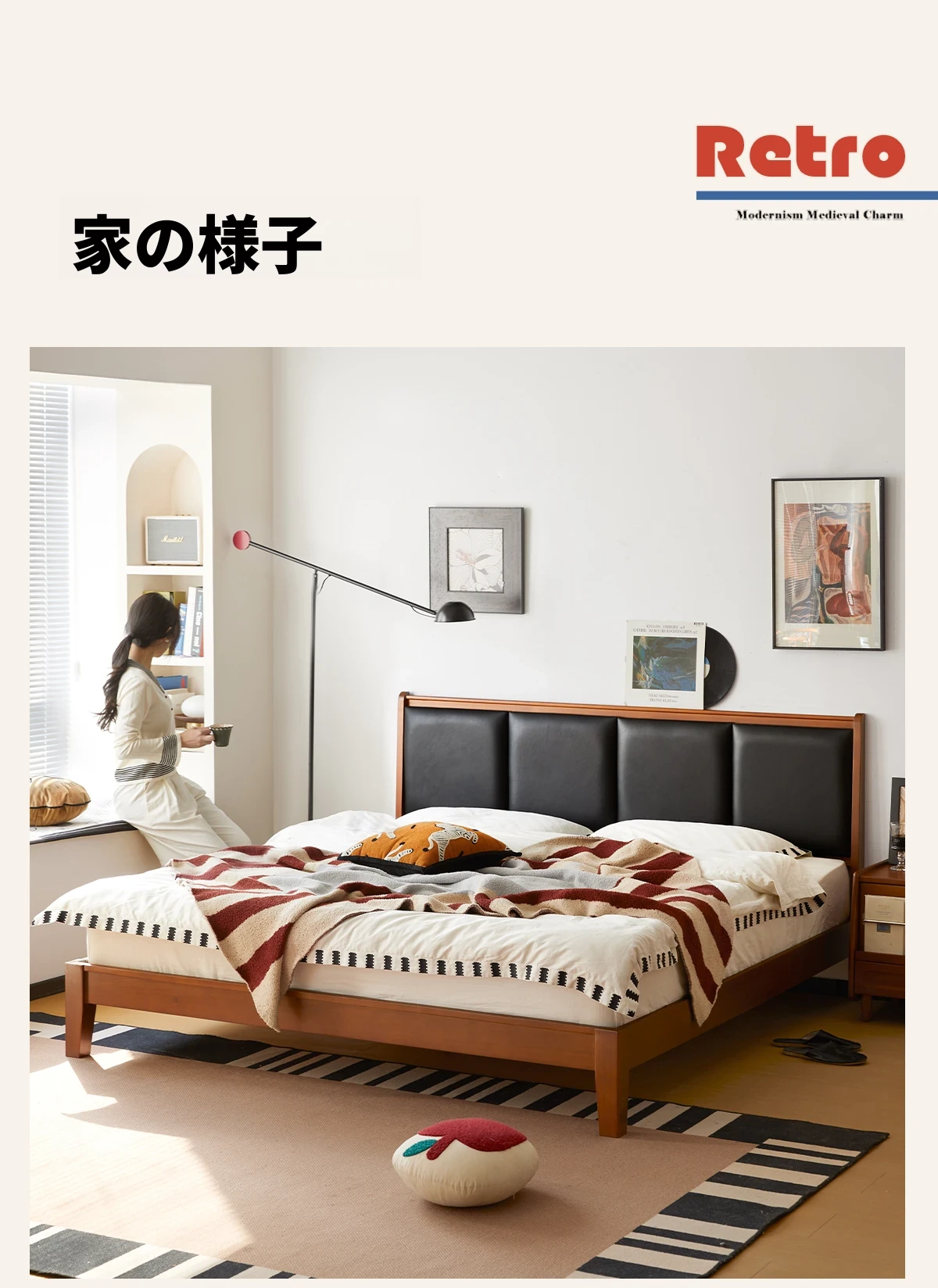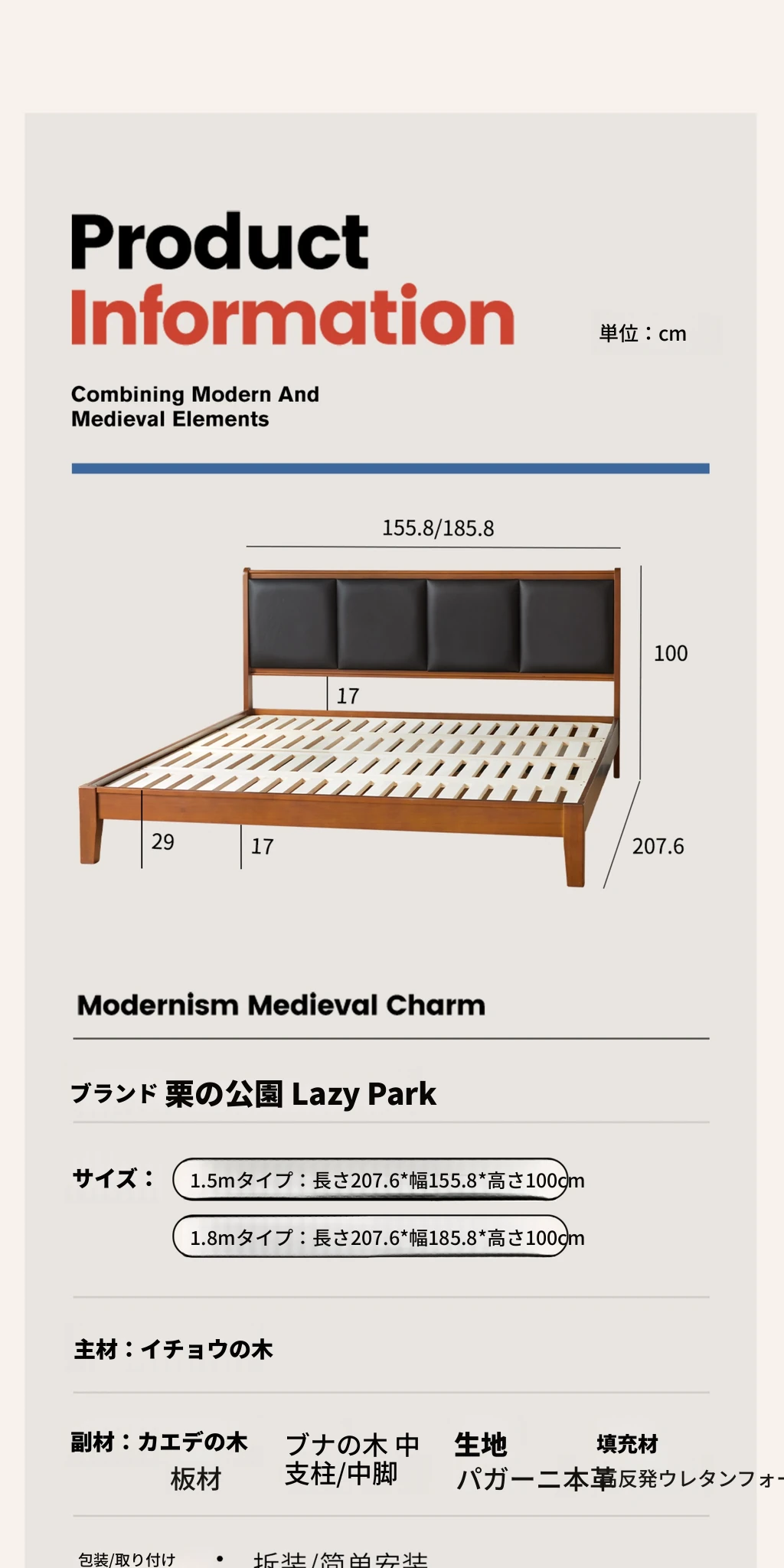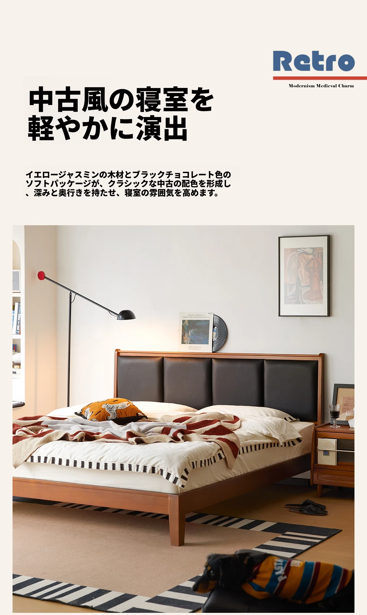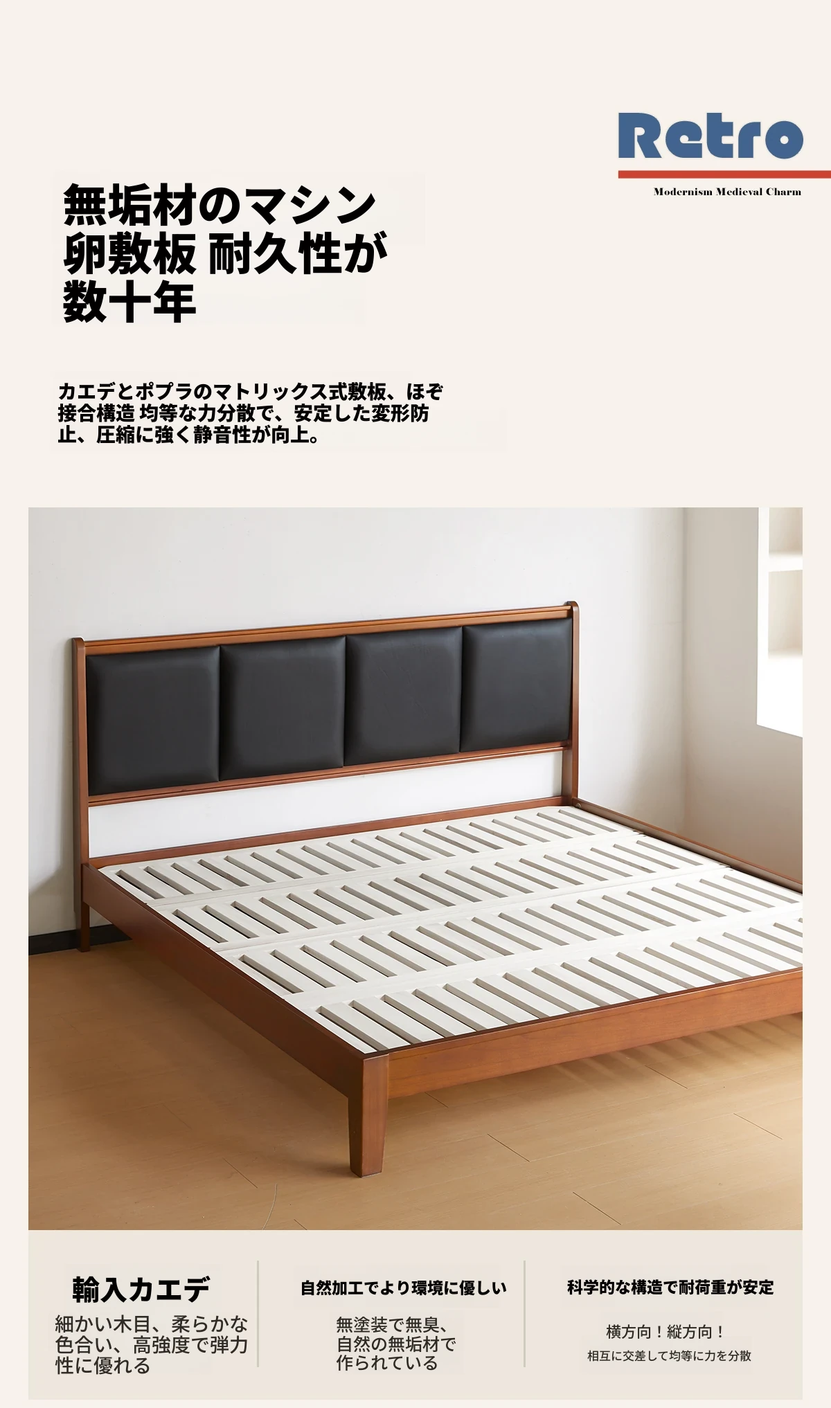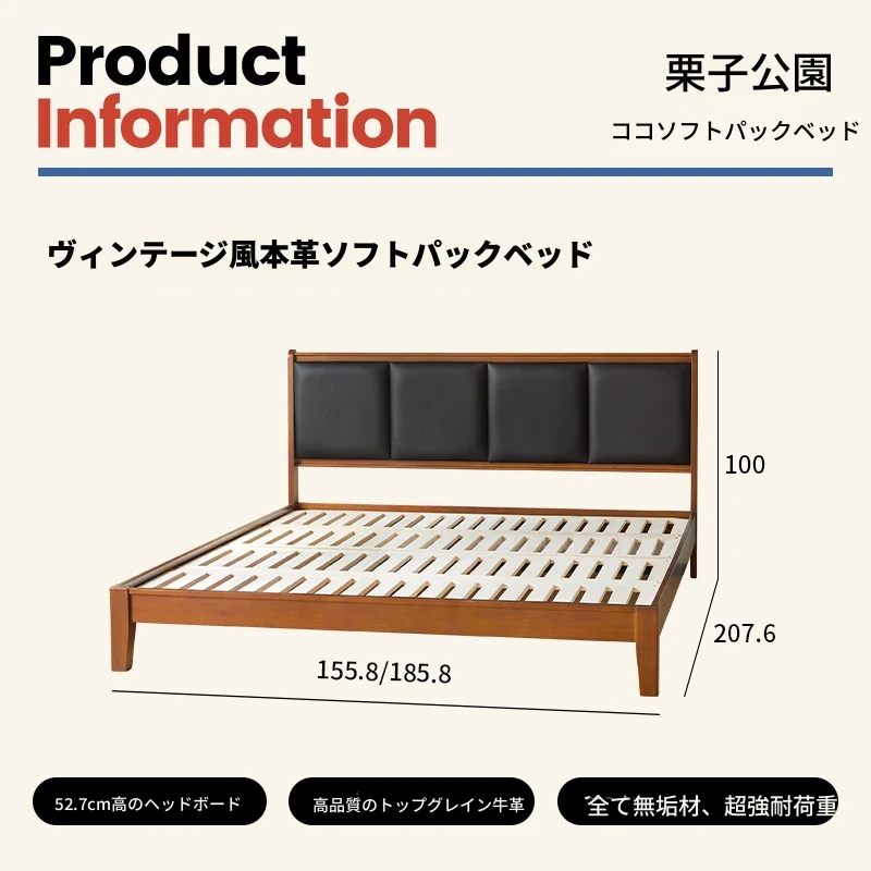 (さようなら款)クリスパーク本革ベッド、無垢材のレトロデザイン、1.8mサイズの主寝室用、上質な牛革ソフトパッケージベッドで、あなたの小さな空間をスタイリッシュに演出!