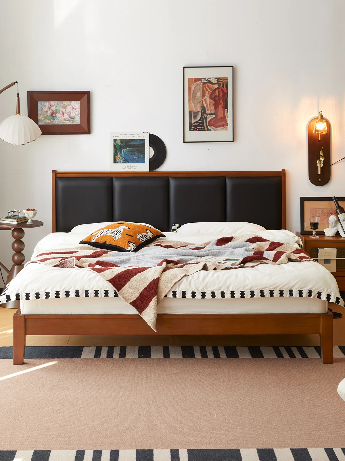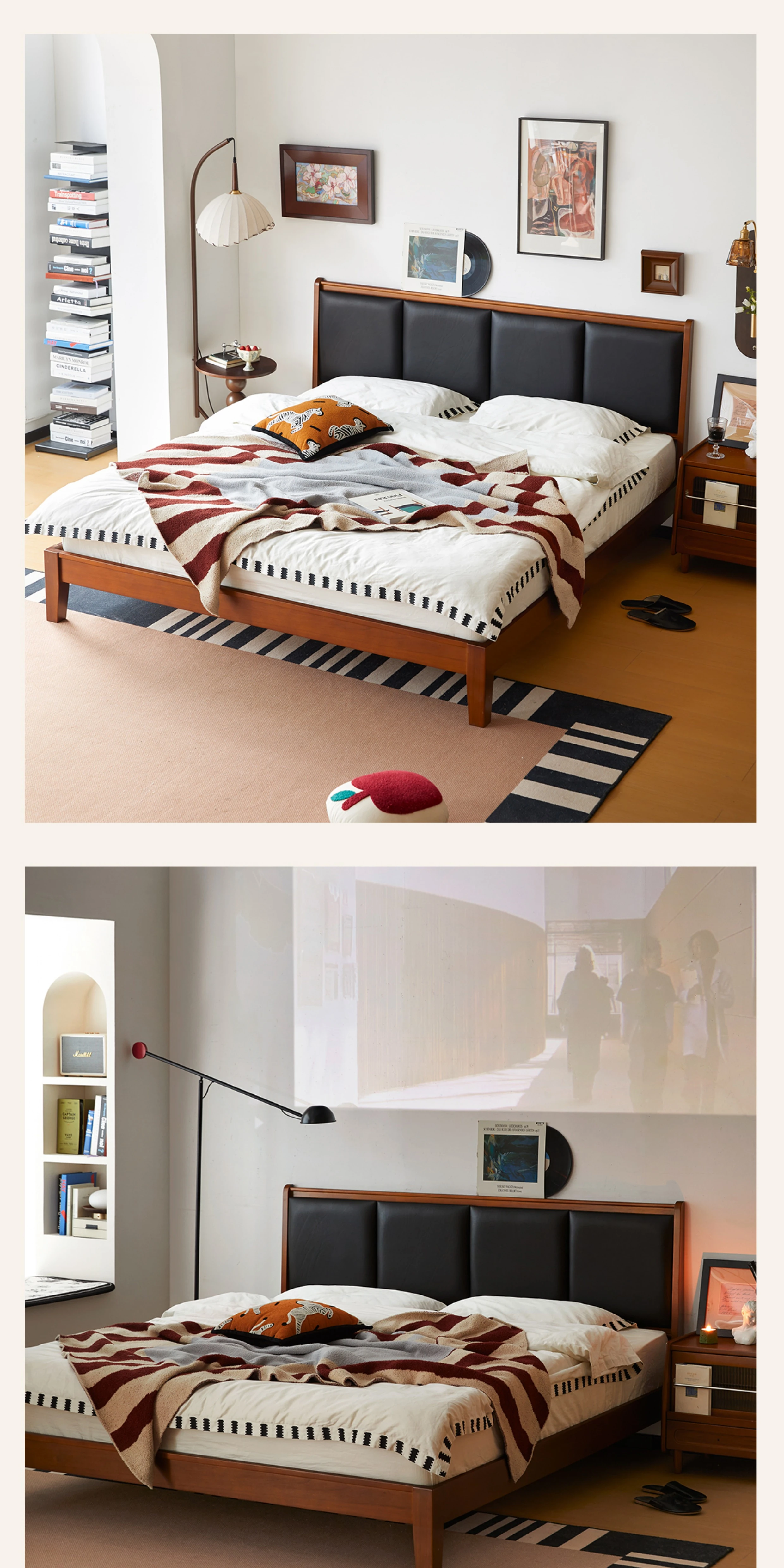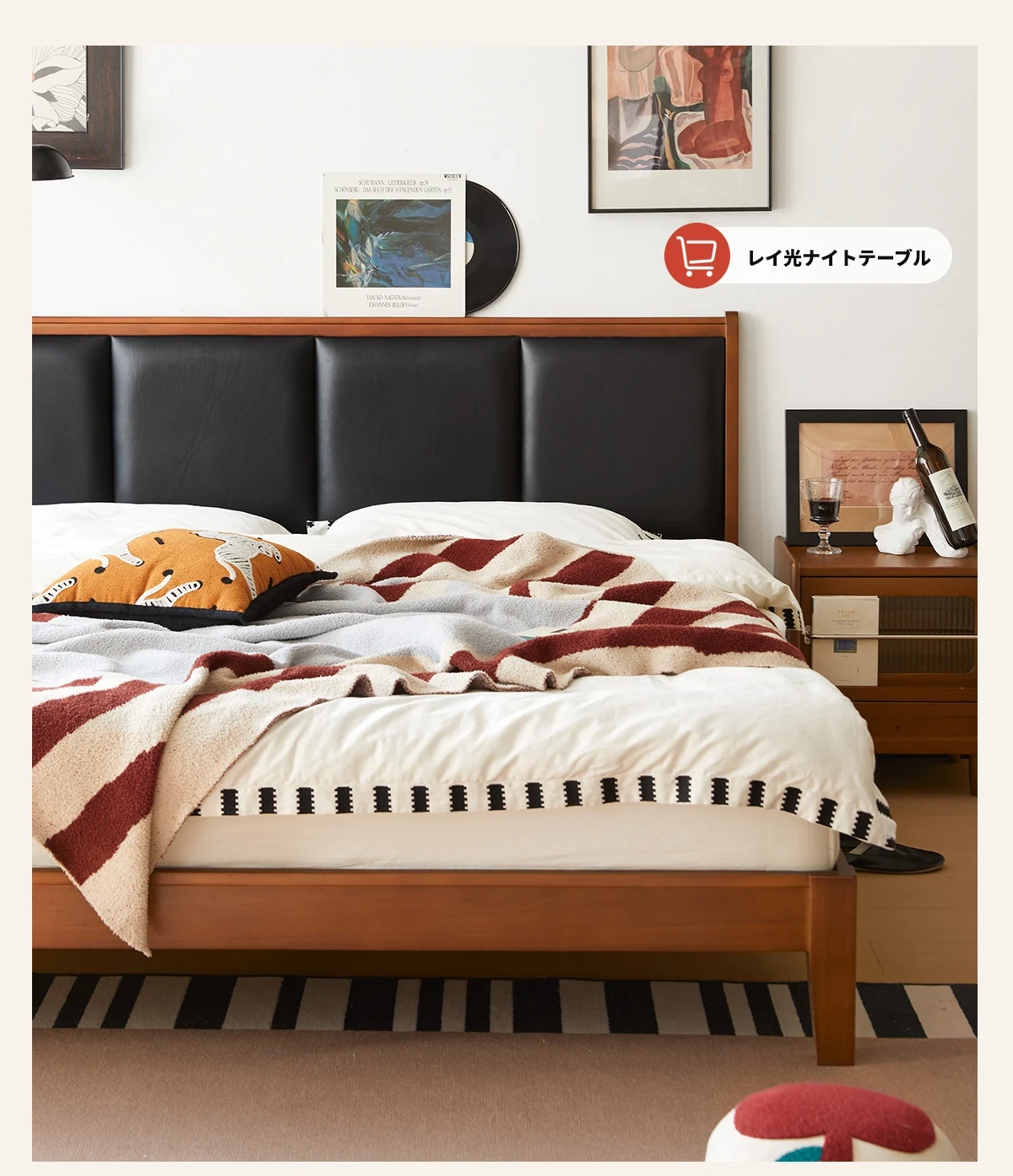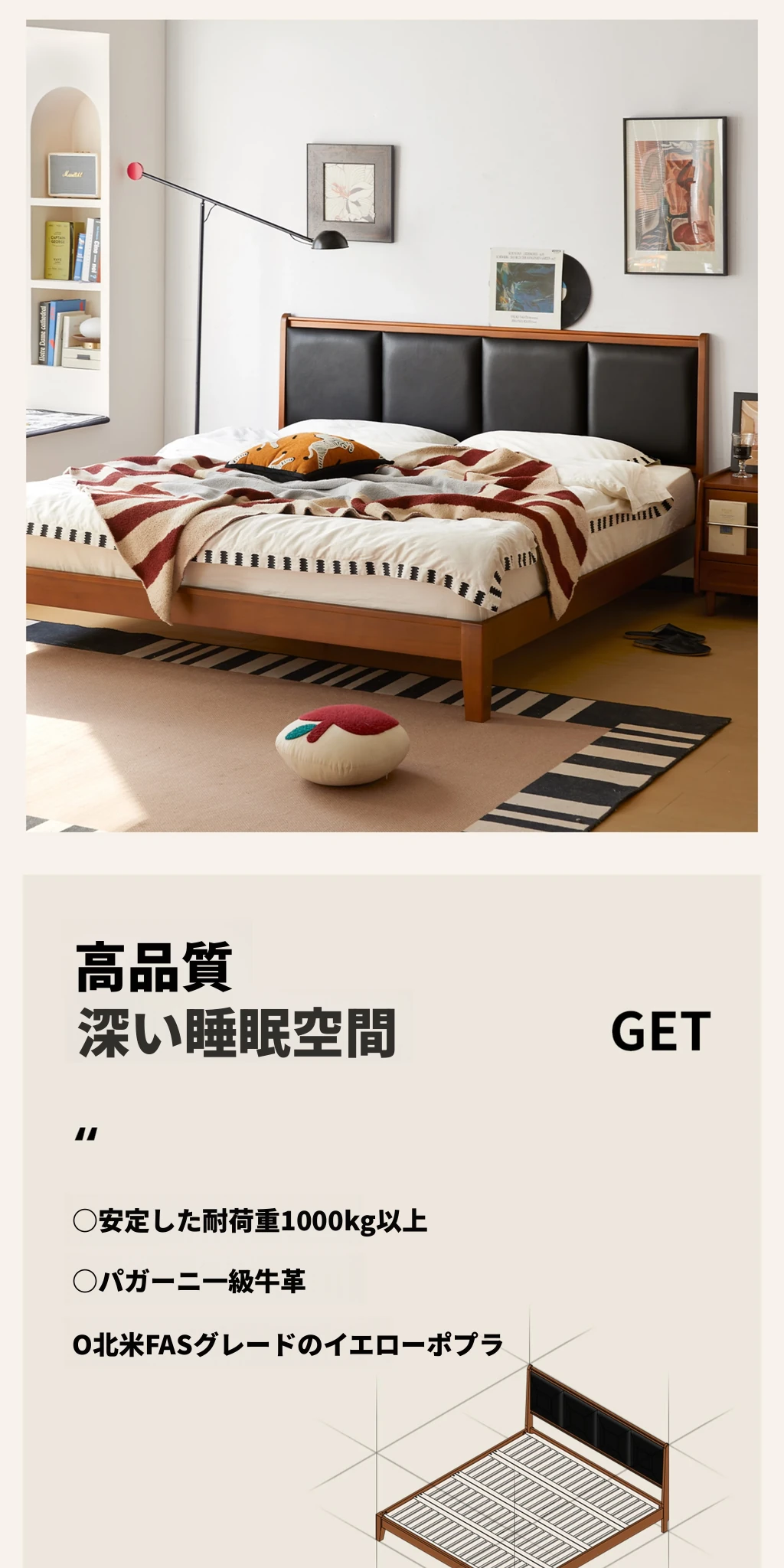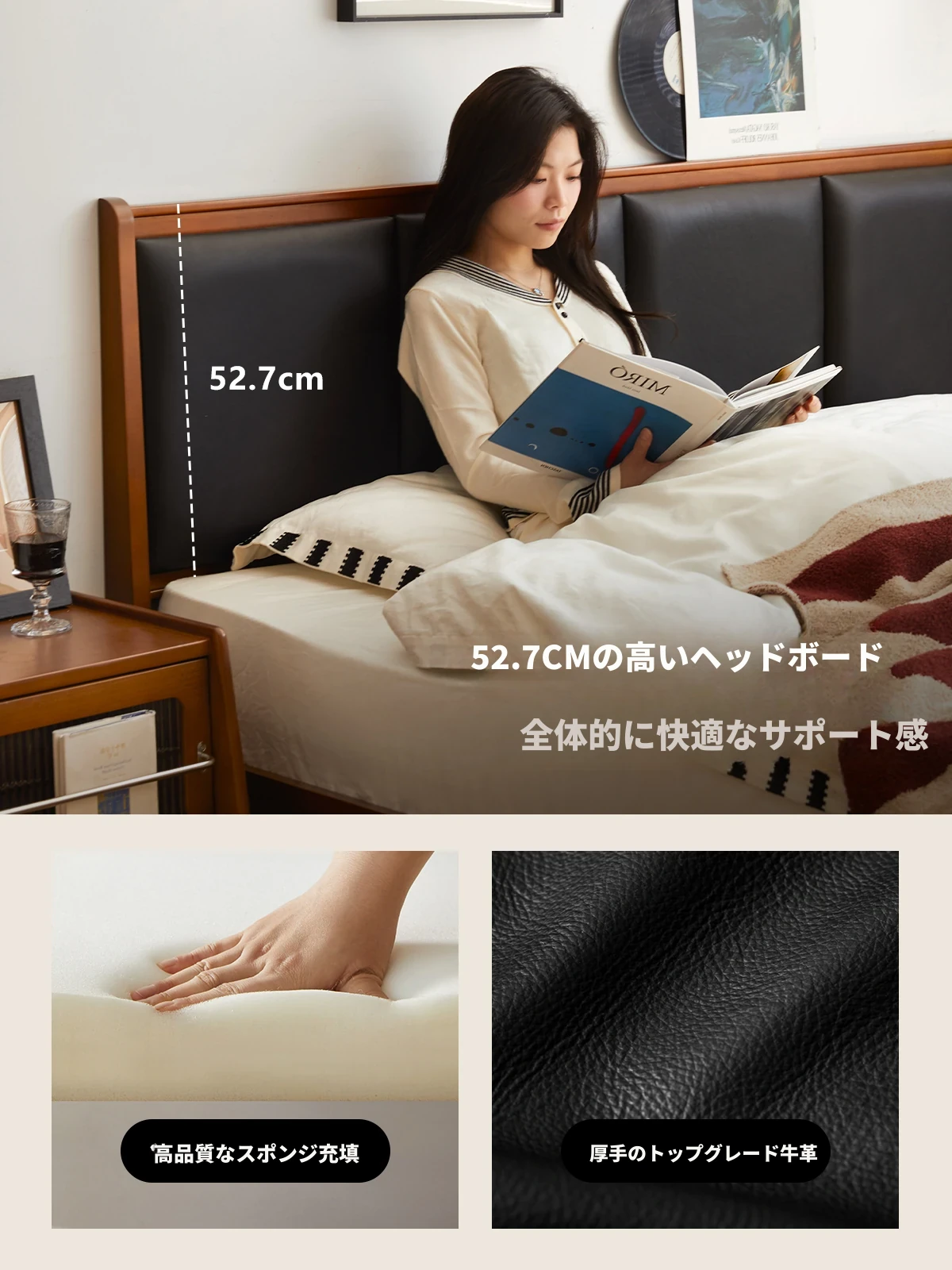 (さようなら款)クリスパーク本革ベッド、無垢材のレトロデザイン、1.8mサイズの主寝室用、上質な牛革ソフトパッケージベッドで、あなたの小さな空間をスタイリッシュに演出!