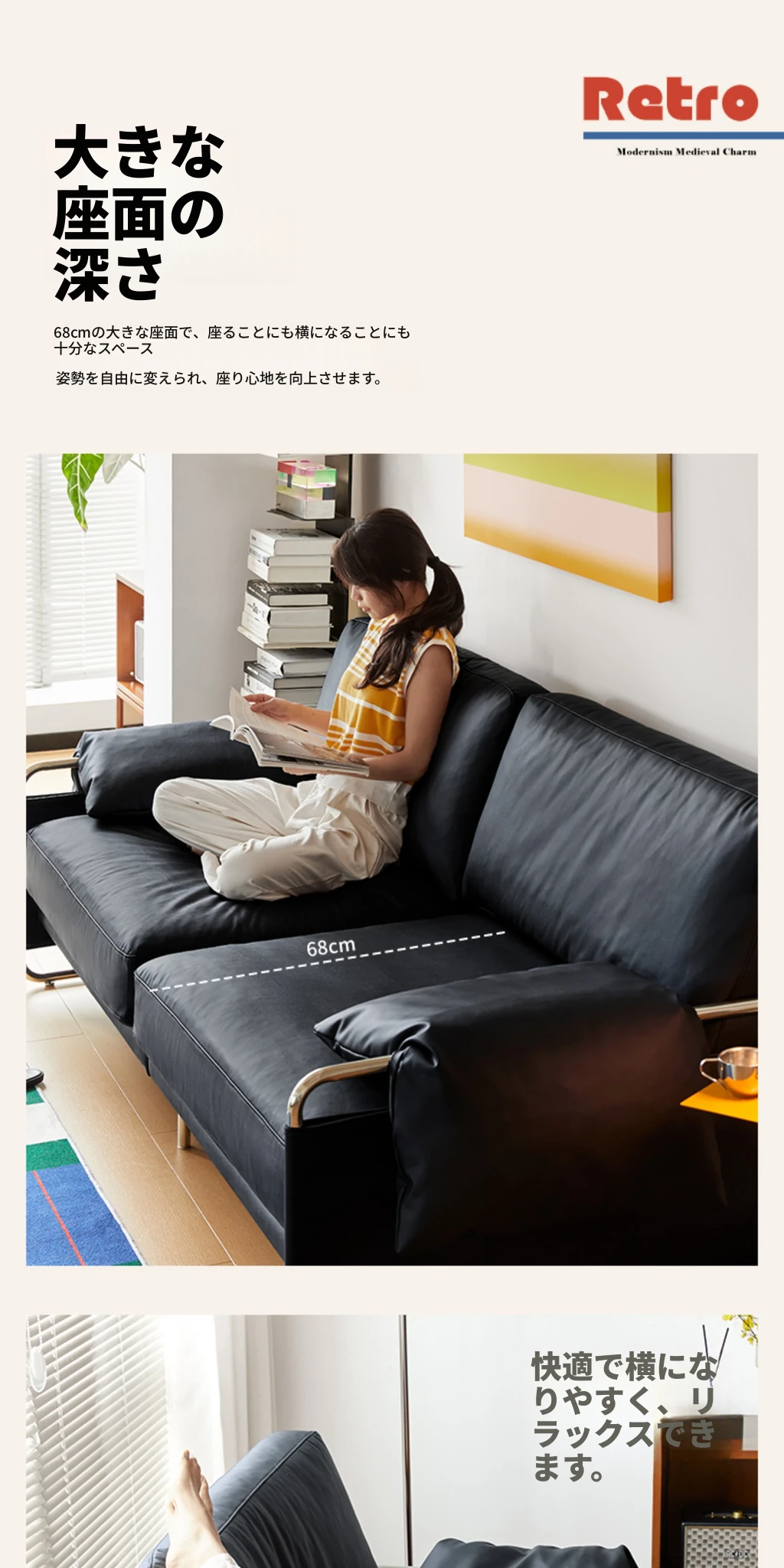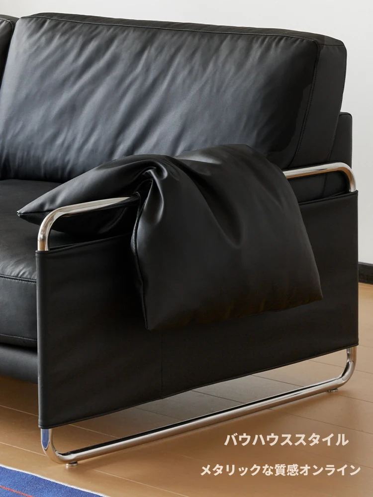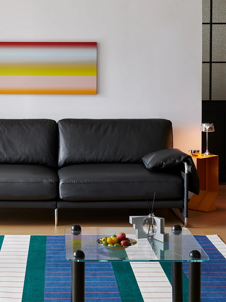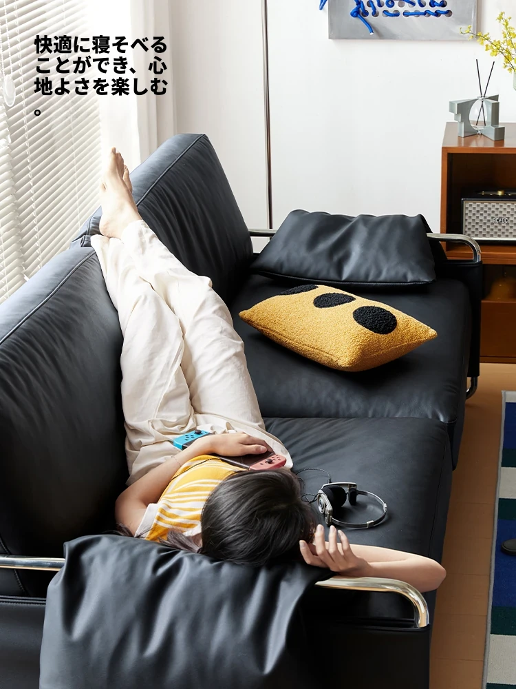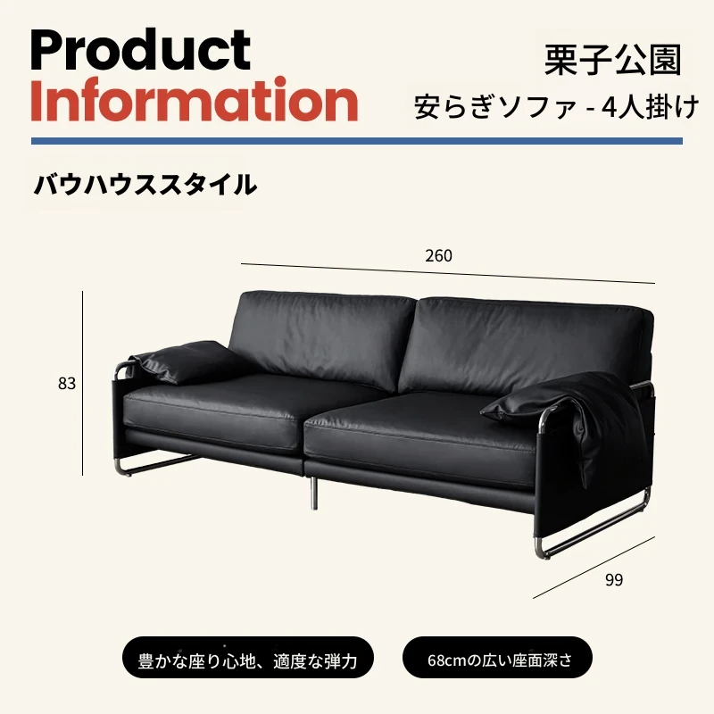 栗子公園の安らぎソファ - 北欧風レトロデザイン、テクノロジー革を使用したバウハウススタイルのシンプルなブラックリビングソファ。心地よいくつろぎ空間を演出する、洗練されたデザインです。