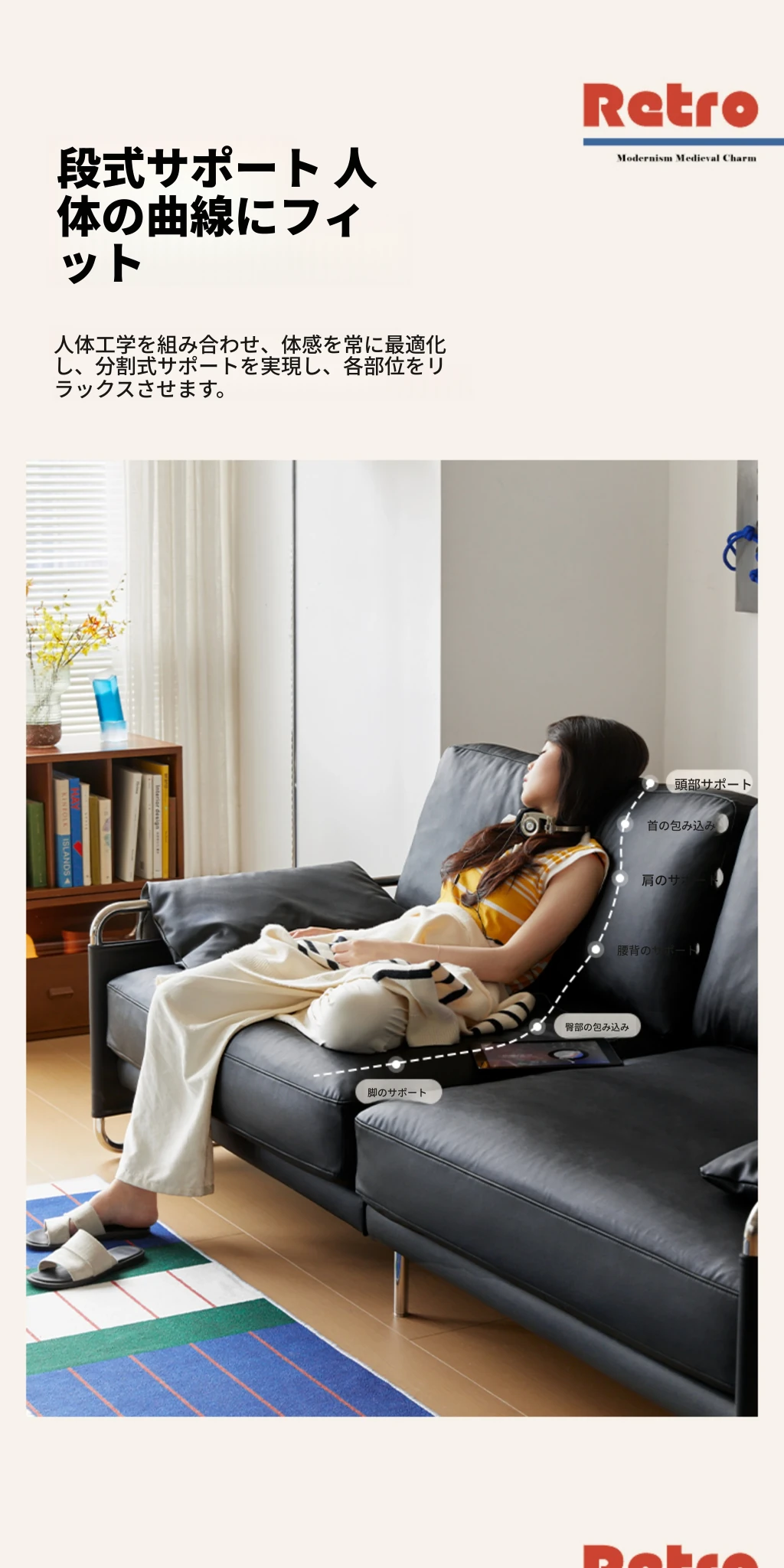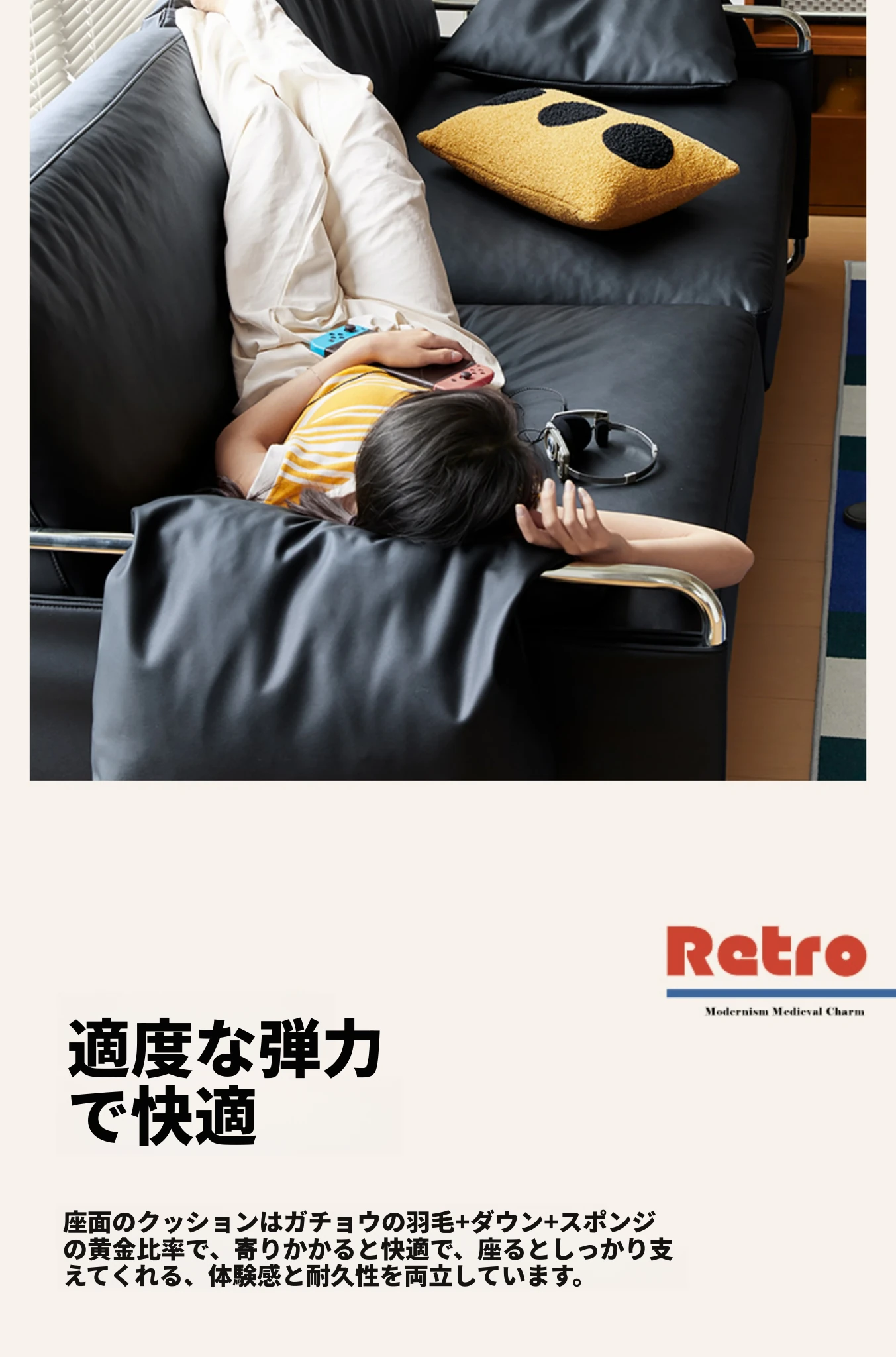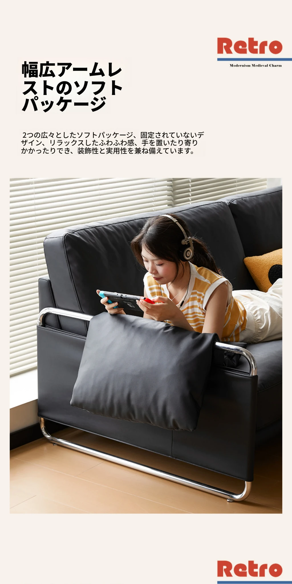 栗子公園の安らぎソファ - 北欧風レトロデザイン、テクノロジー革を使用したバウハウススタイルのシンプルなブラックリビングソファ。心地よいくつろぎ空間を演出する、洗練されたデザインです。