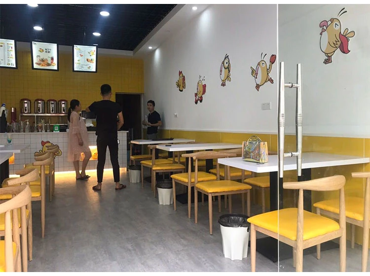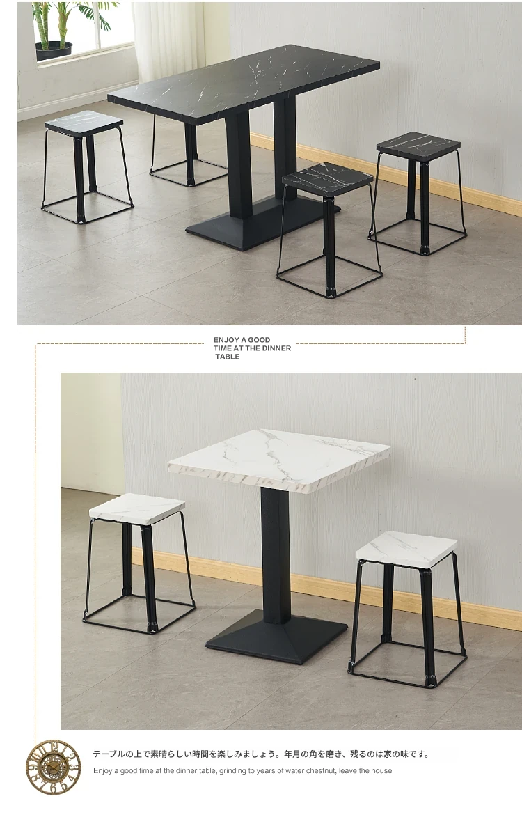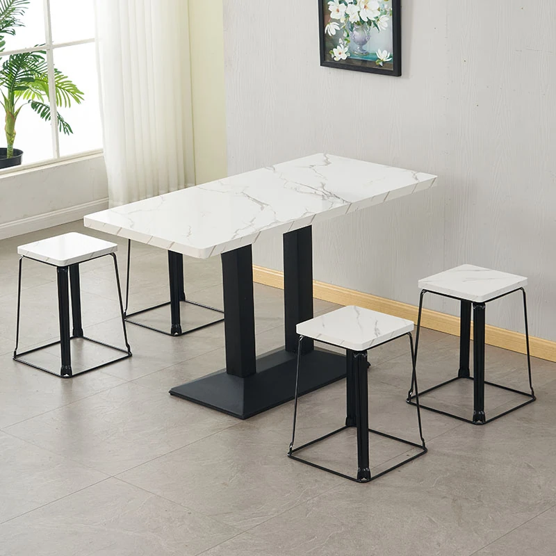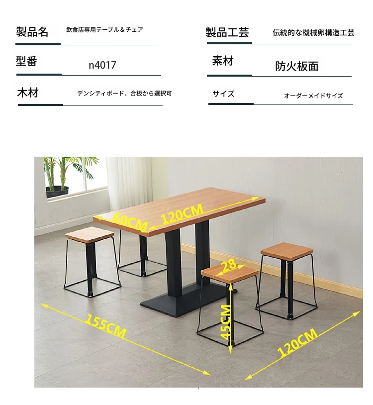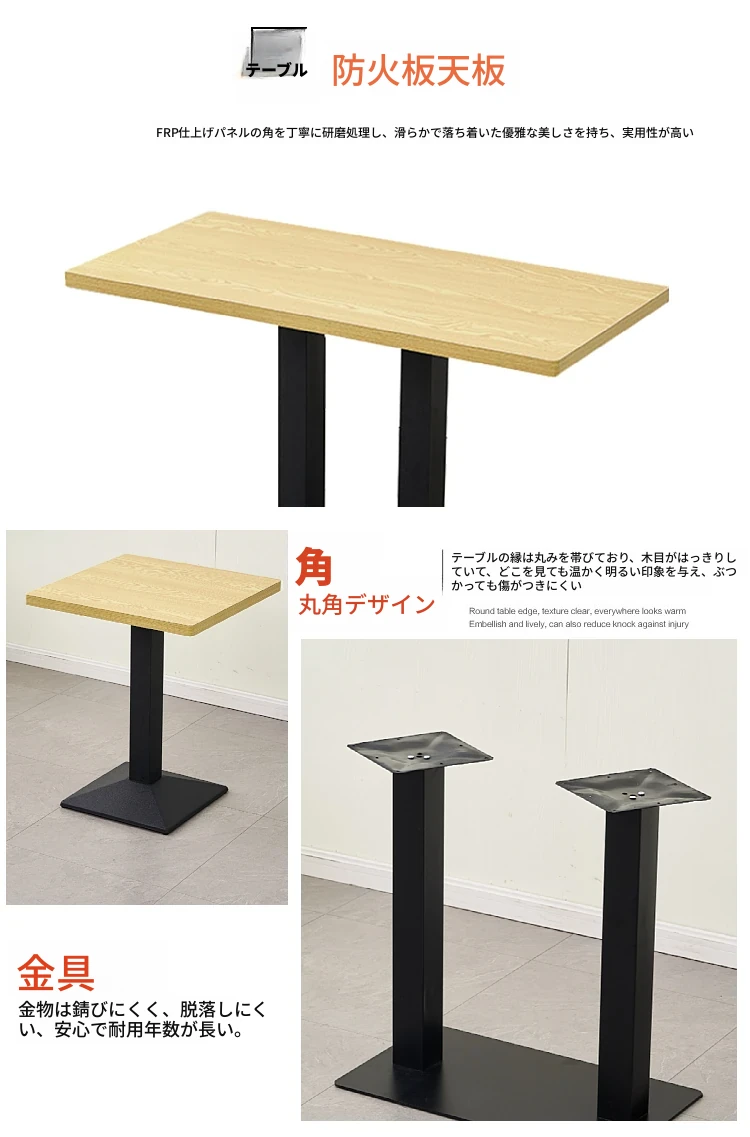 おしゃれなカフェ用テーブル&椅子セット|多用途の長方形テーブル|軽食店・ファーストフード・ミルクティー・朝食・ハンバーガー・バーベキュー・飲食店・ラーメン店に最適!快適な食事空間を提供します。