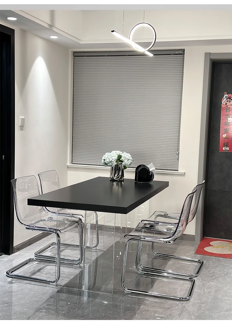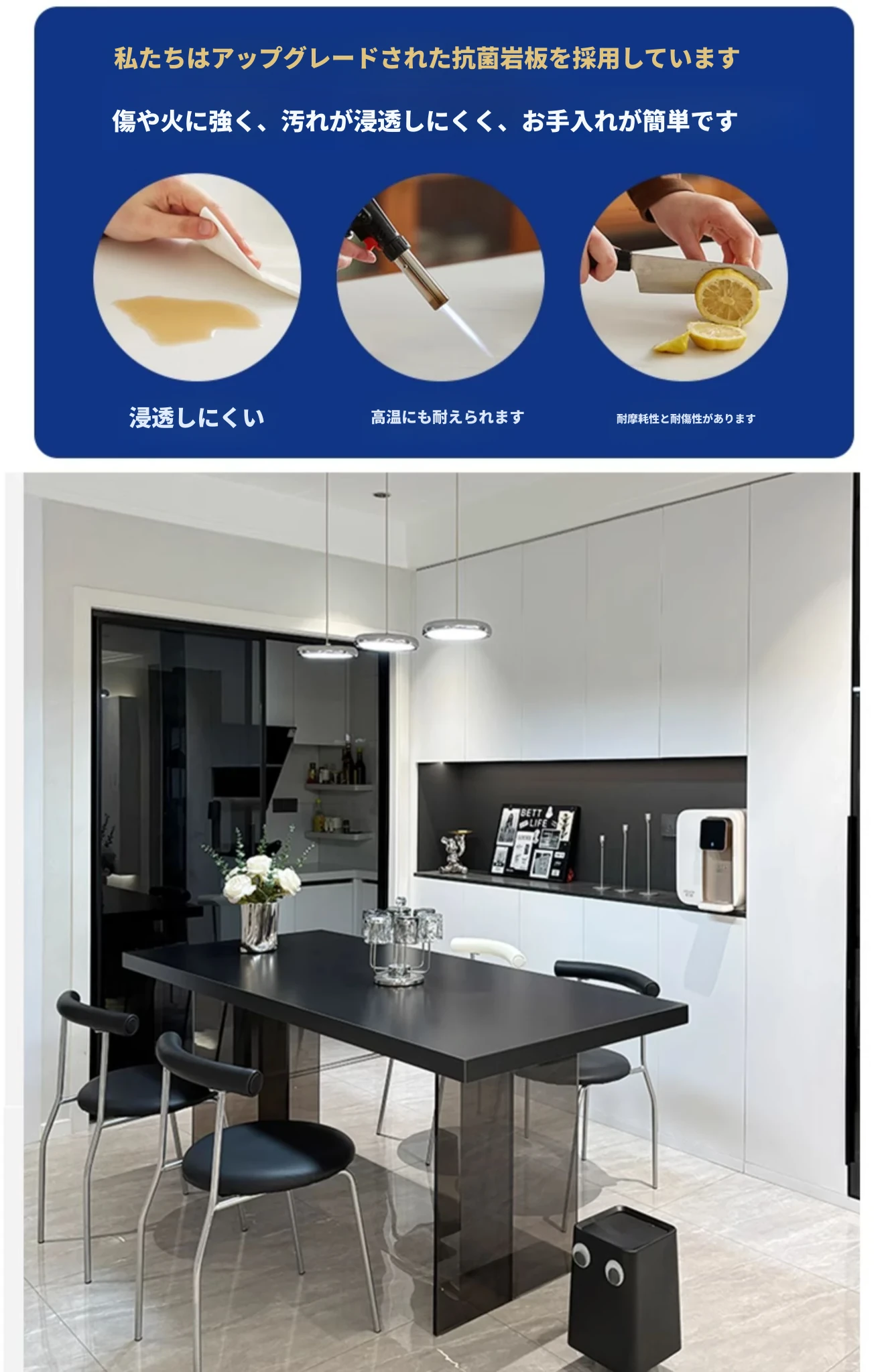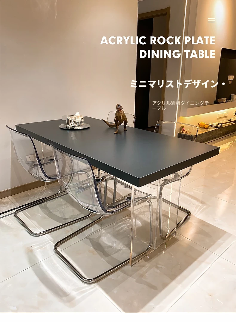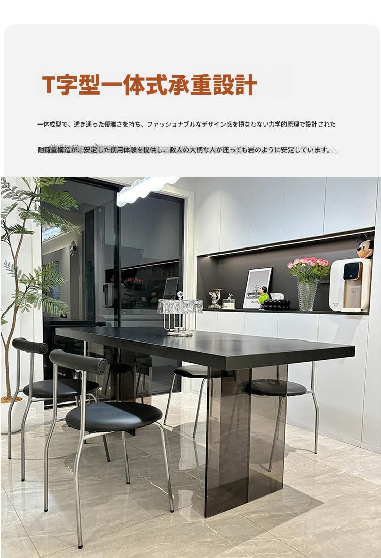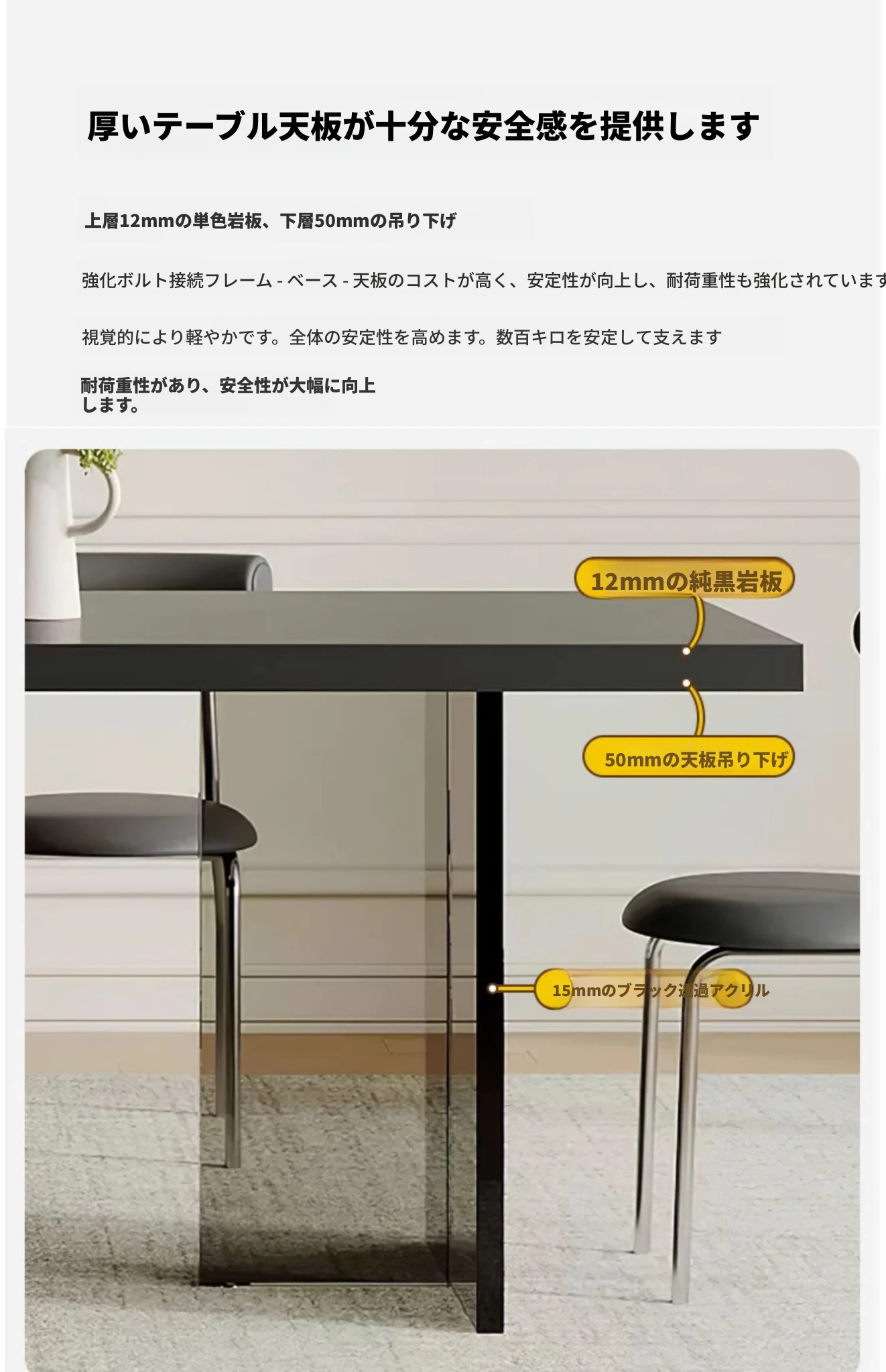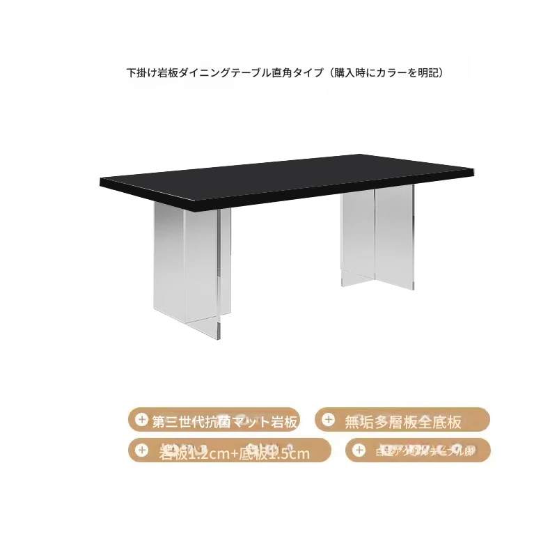 ブラック浮遊アクリル下掛け岩板ダイニングテーブル - 小型住宅向けの軽奢華な高級デザイン、2024年新作!洗練されたスタイルでおしゃれな食卓を実現。