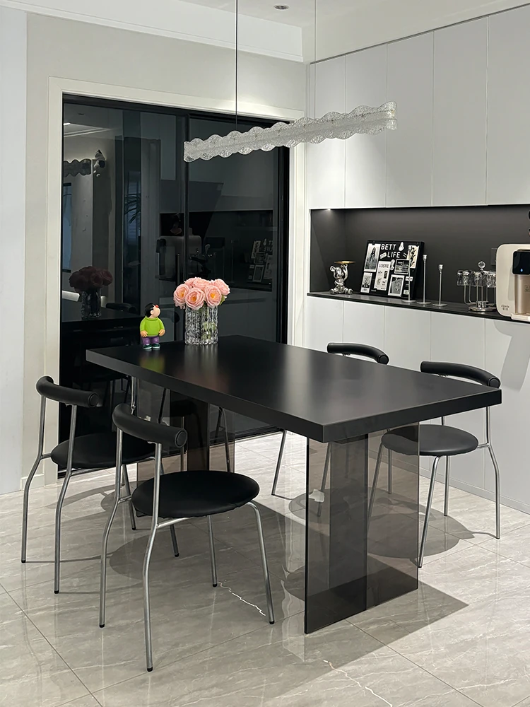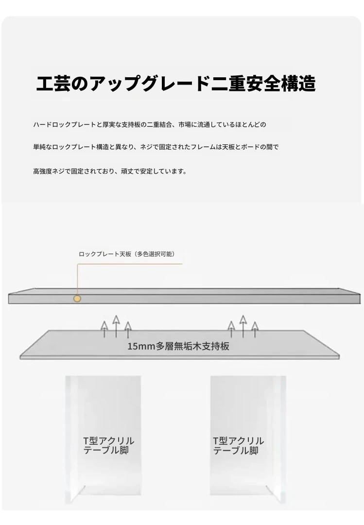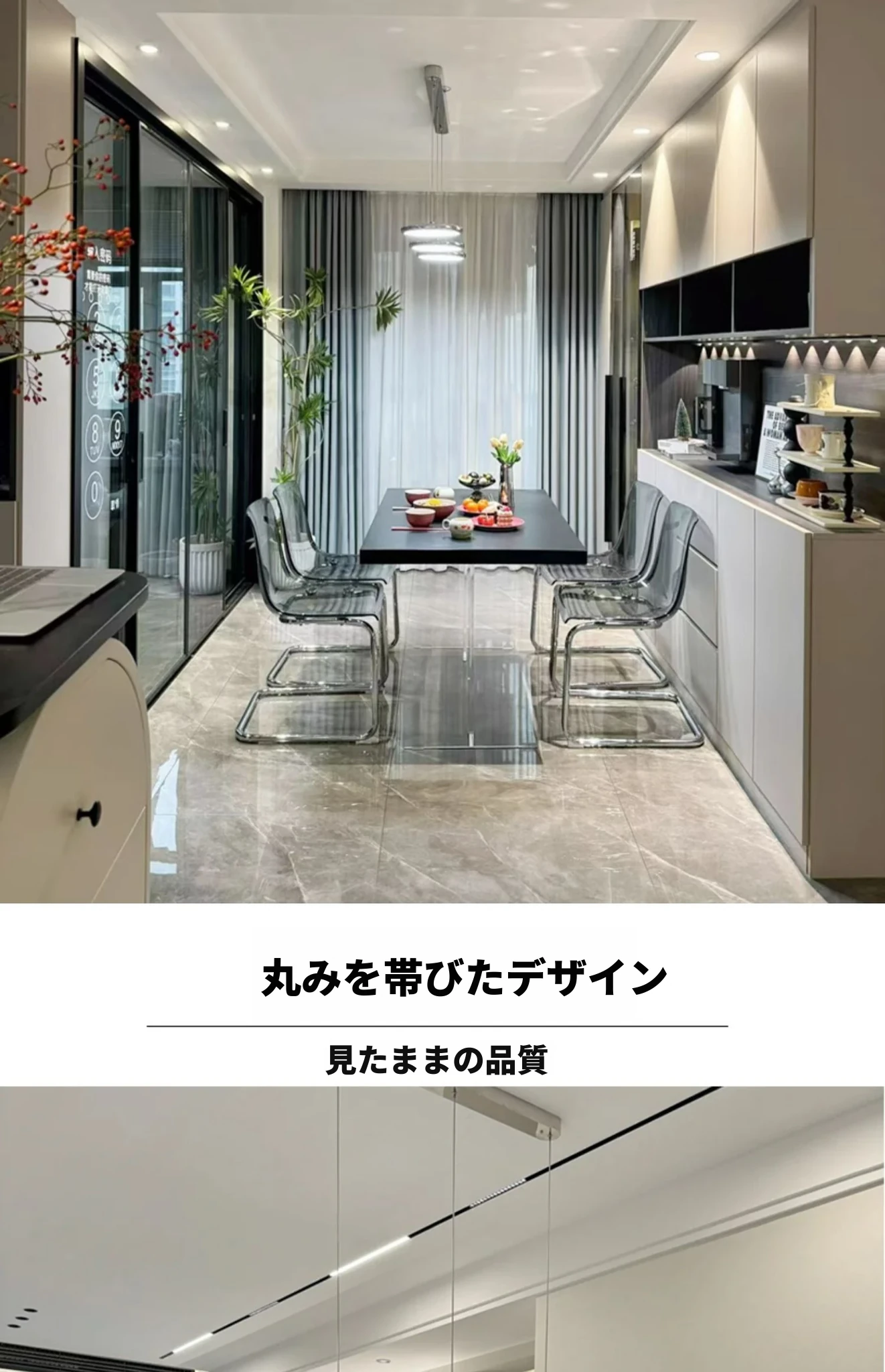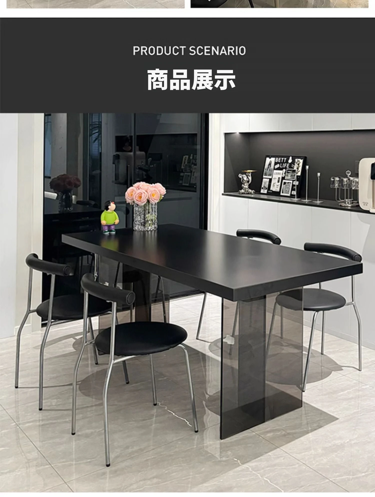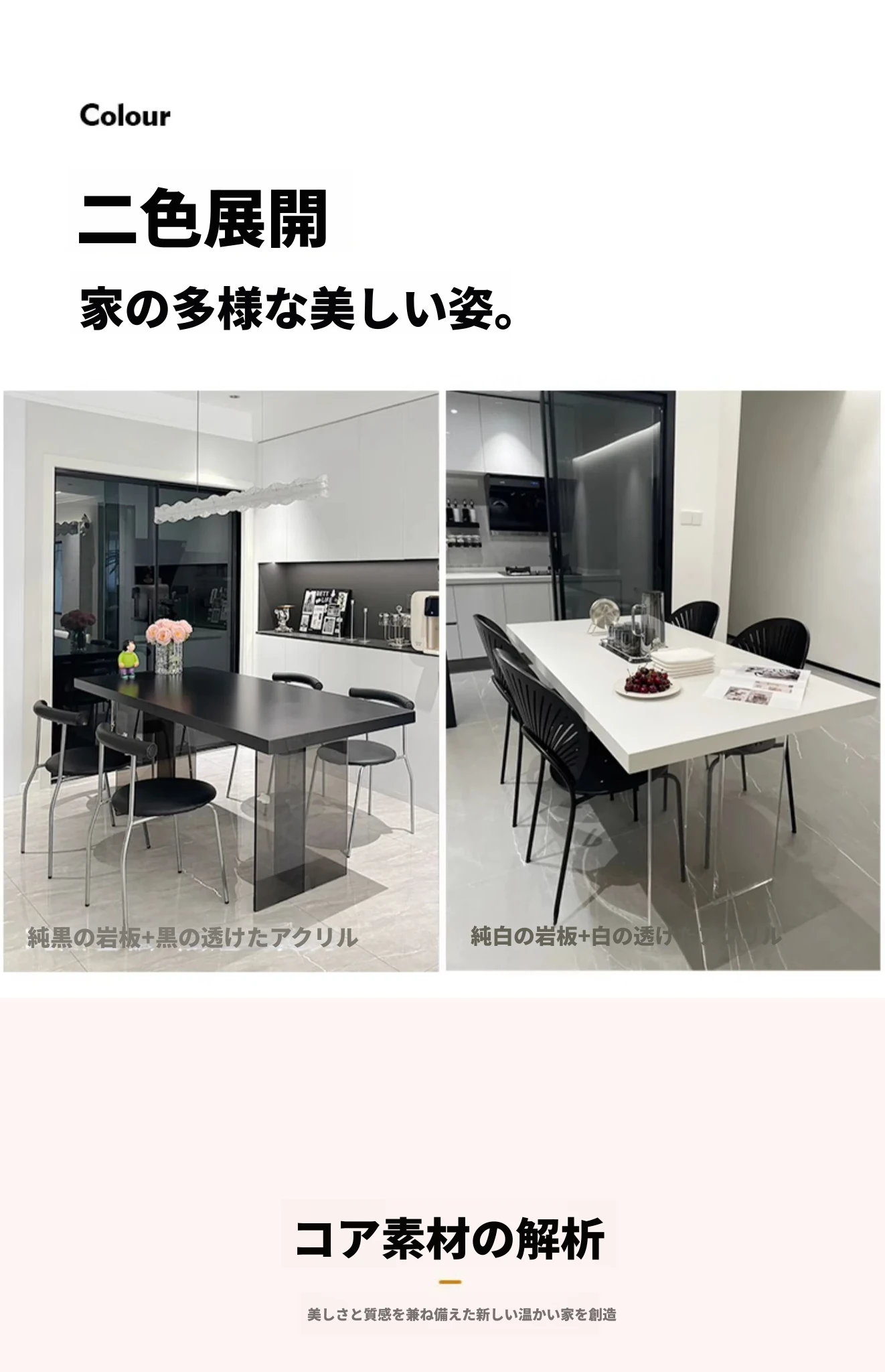 ブラック浮遊アクリル下掛け岩板ダイニングテーブル - 小型住宅向けの軽奢華な高級デザイン、2024年新作!洗練されたスタイルでおしゃれな食卓を実現。