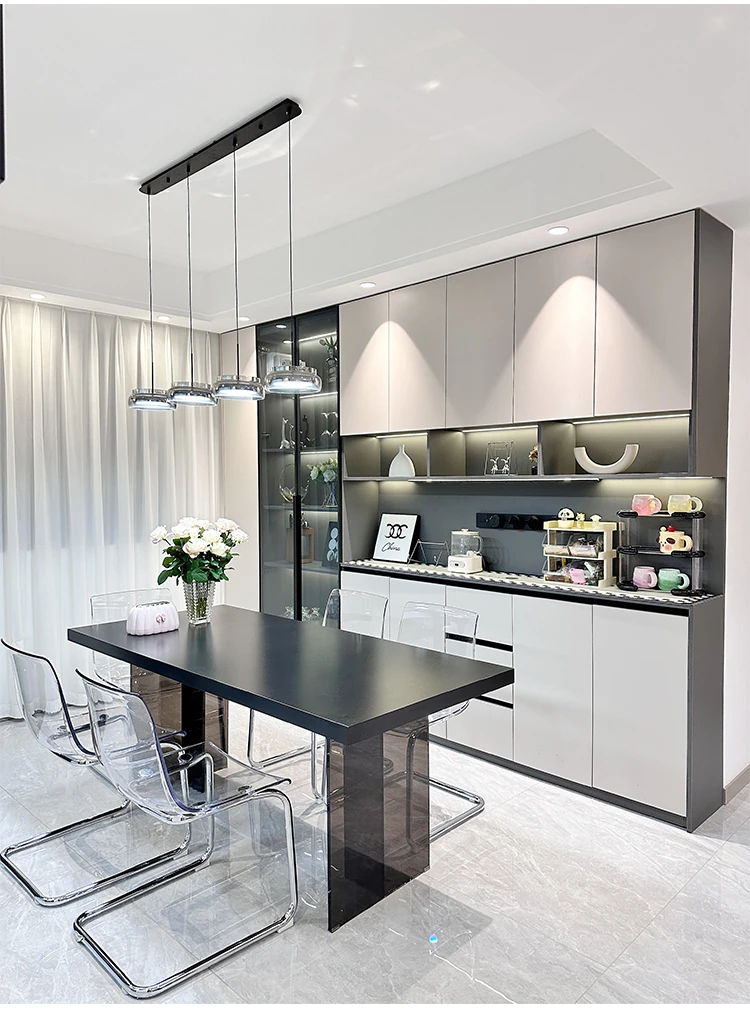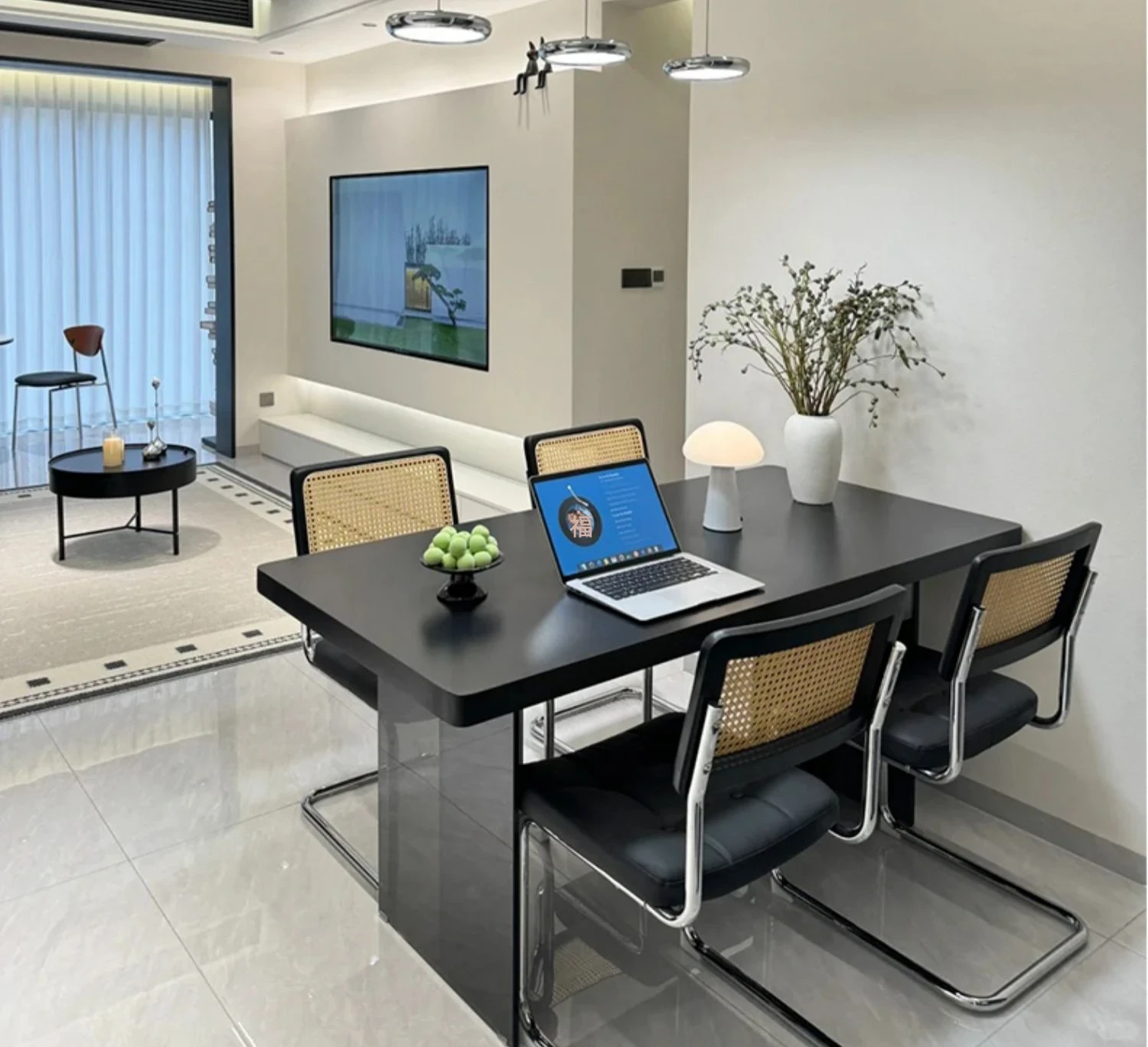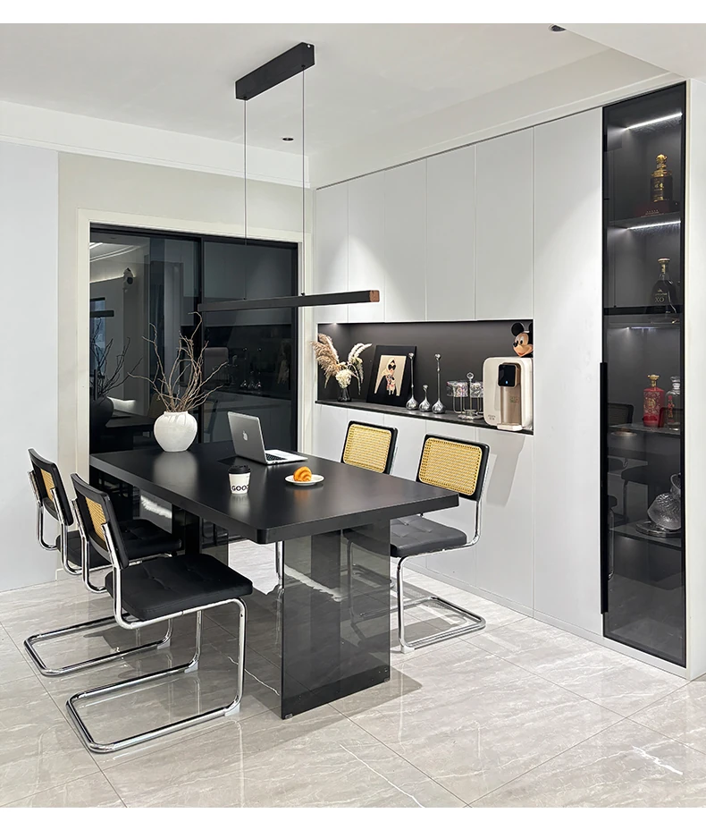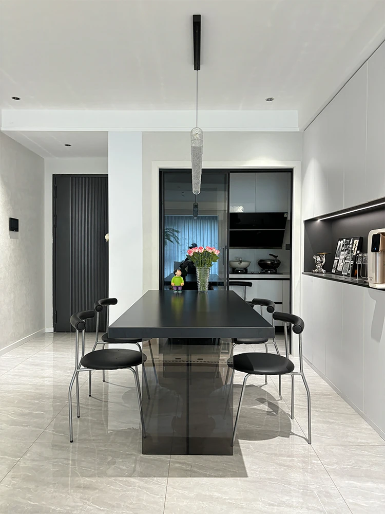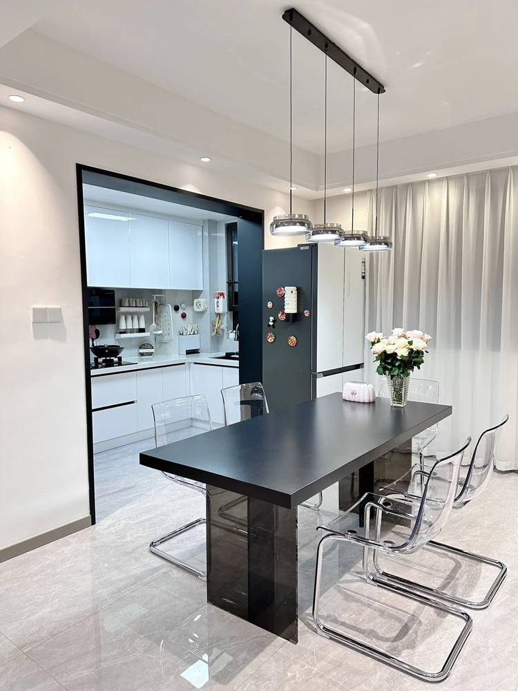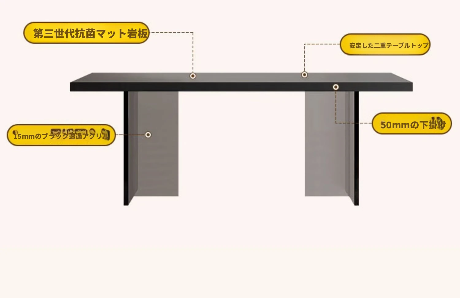 ブラック浮遊アクリル下掛け岩板ダイニングテーブル - 小型住宅向けの軽奢華な高級デザイン、2024年新作!洗練されたスタイルでおしゃれな食卓を実現。