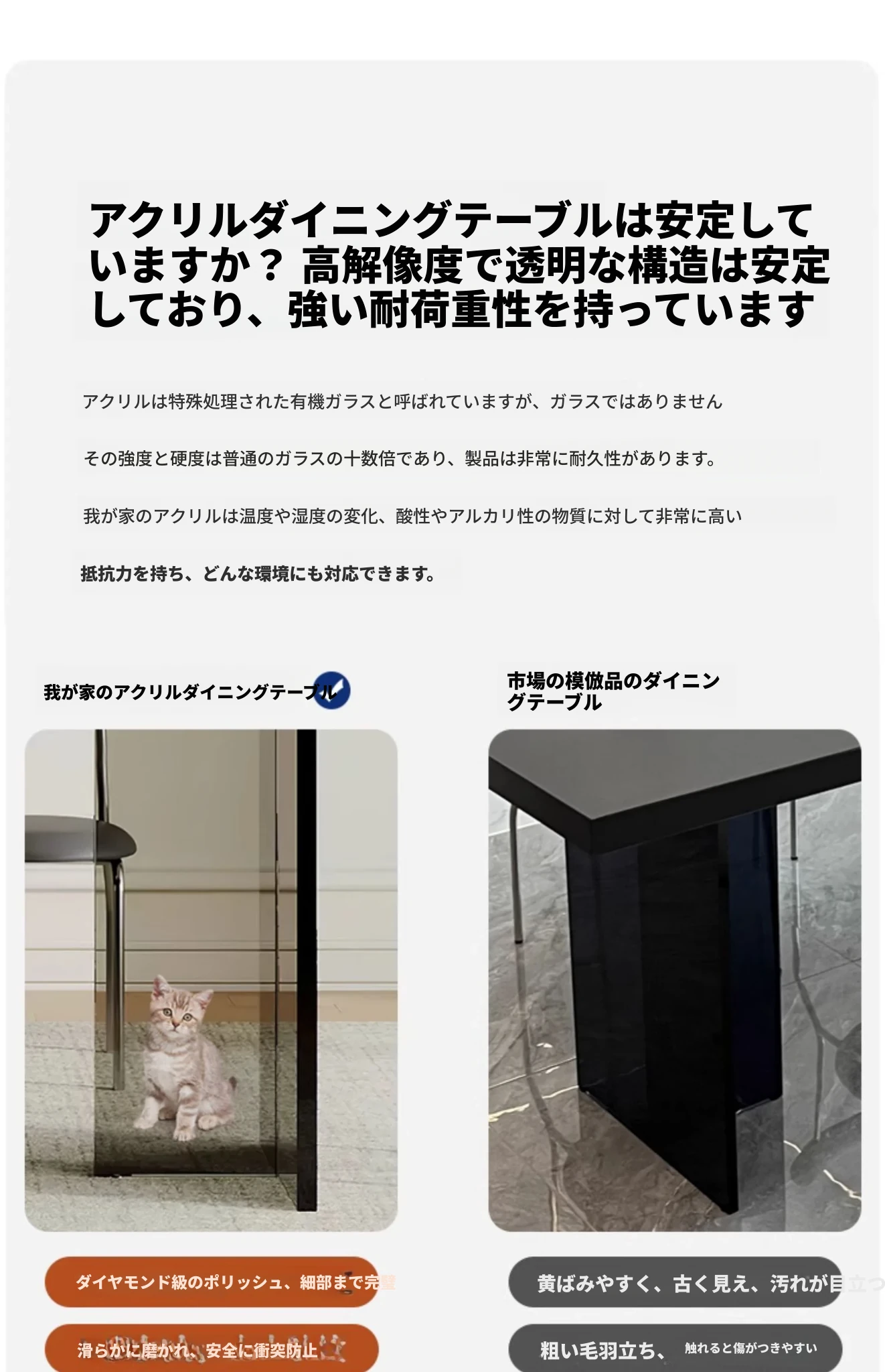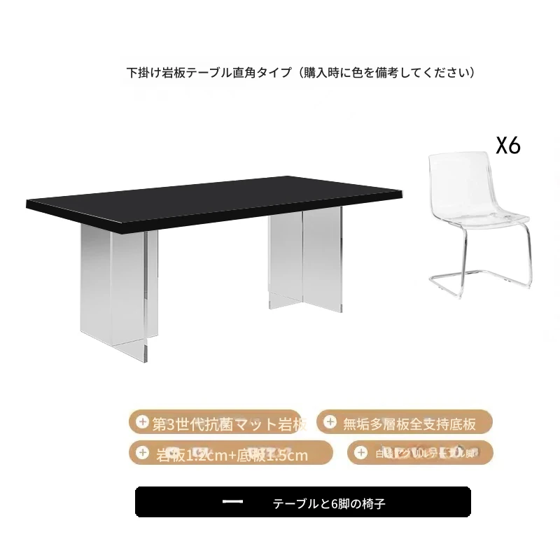 アクリル純黒岩板ダイニングテーブル【1テーブル6アクリルチェア】
