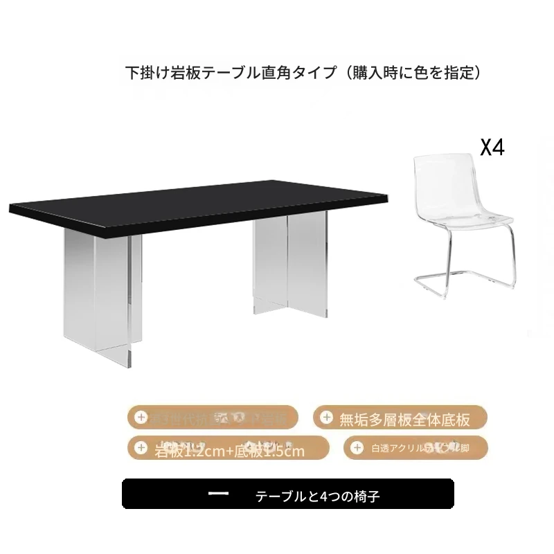 アクリル純黒岩板ダイニングテーブル【1テーブル4アクリルチェア】