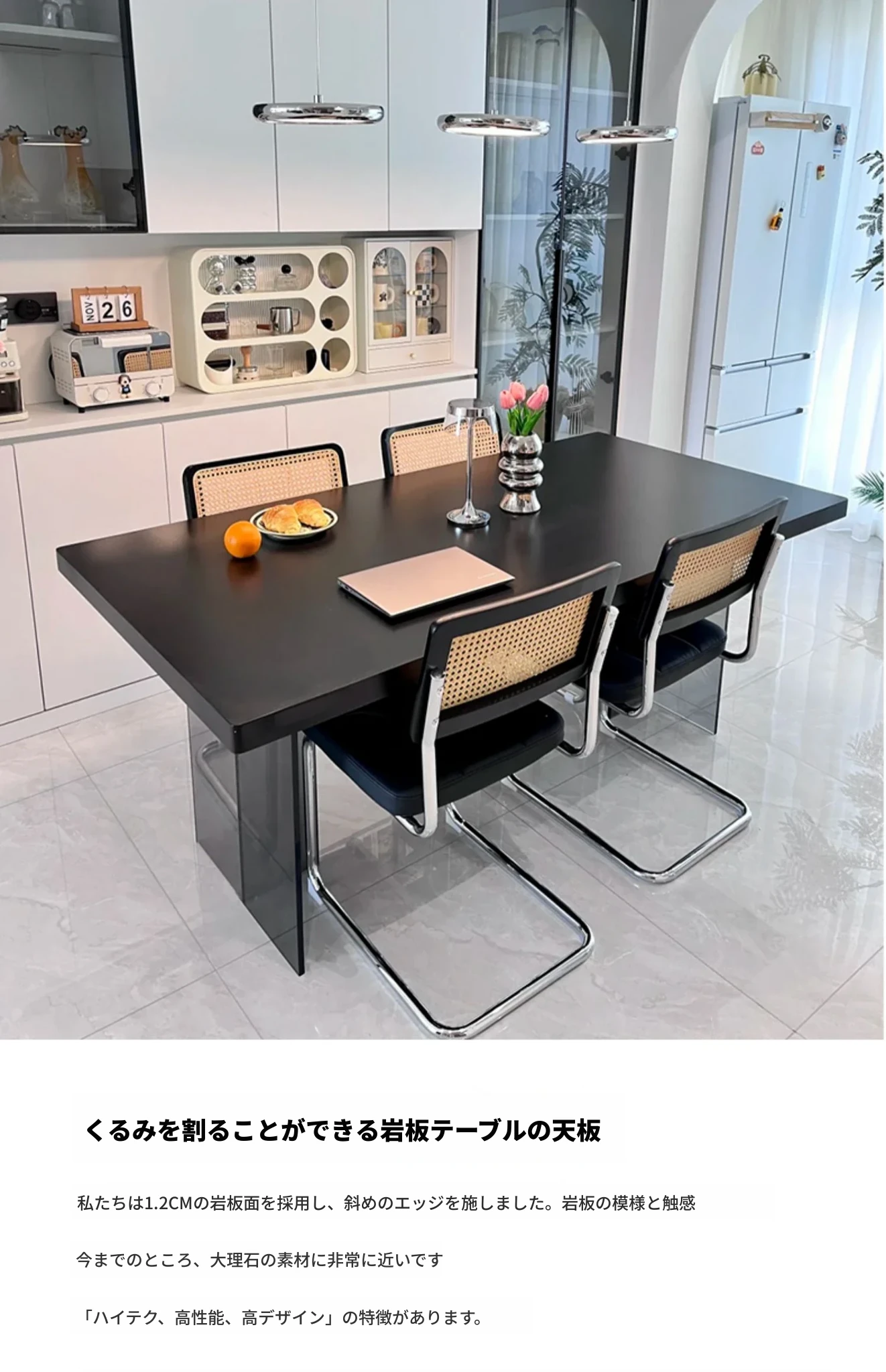 アクリル純黒岩板ダイニングテーブル【1テーブル6チェア】