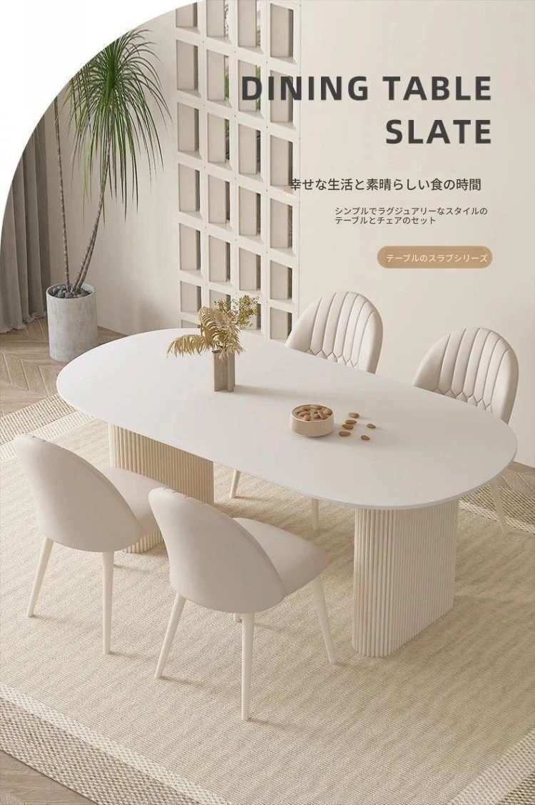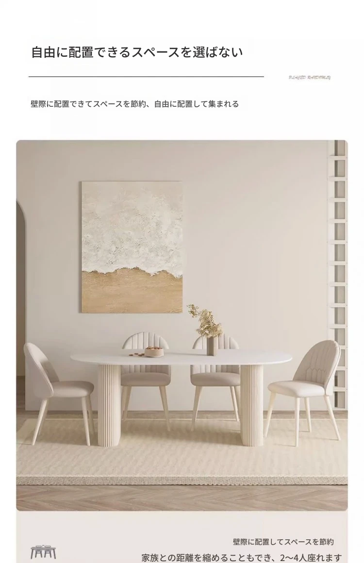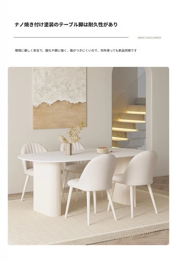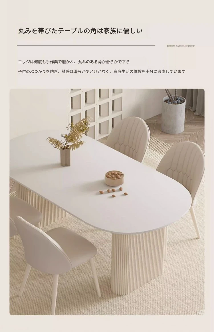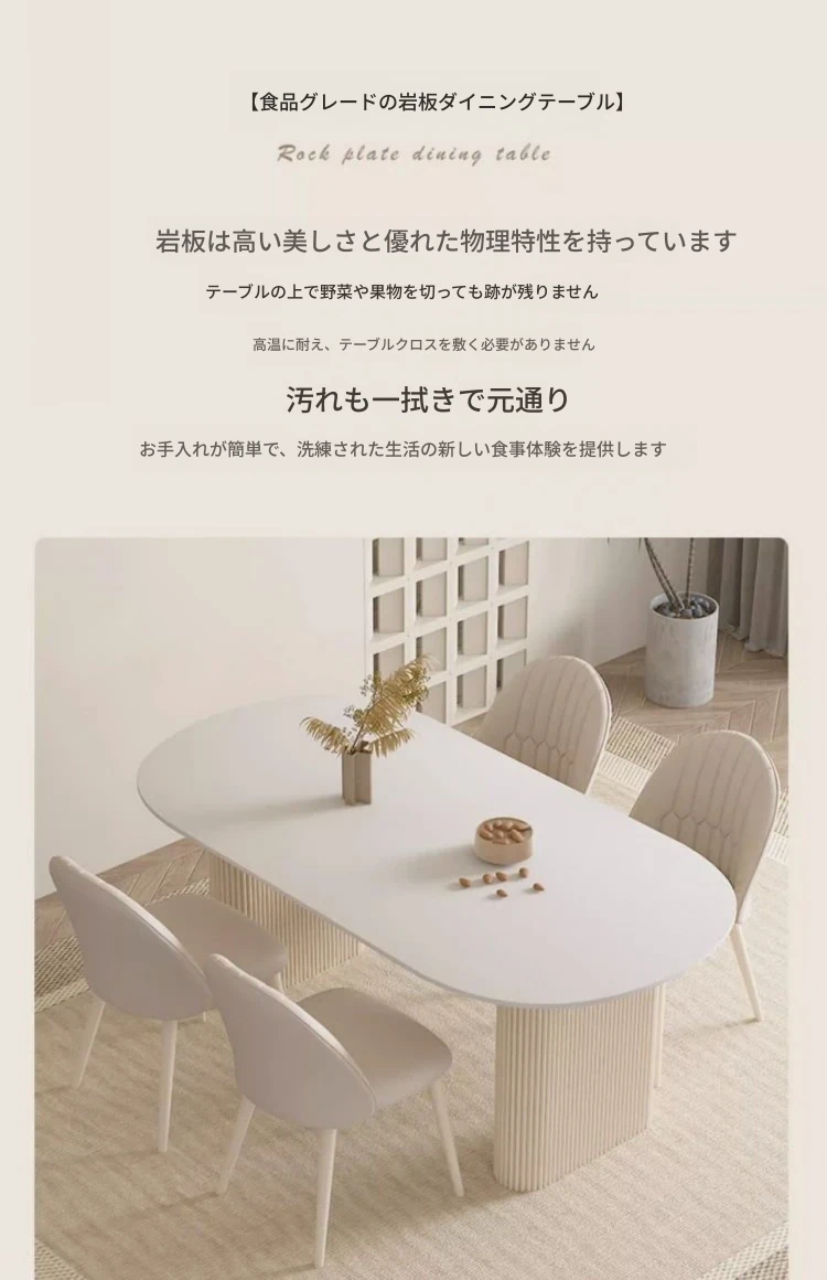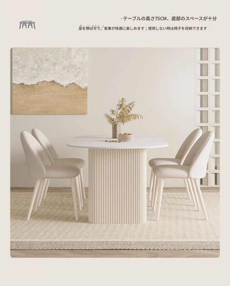 クリーミーホワイトの岩板ダイニングテーブル - 家庭用の軽やかなラグジュアリースタイル、モダンでシンプル、大きさもミニマルなフレンチコンビネーションで、小さなスペースにもぴったり!