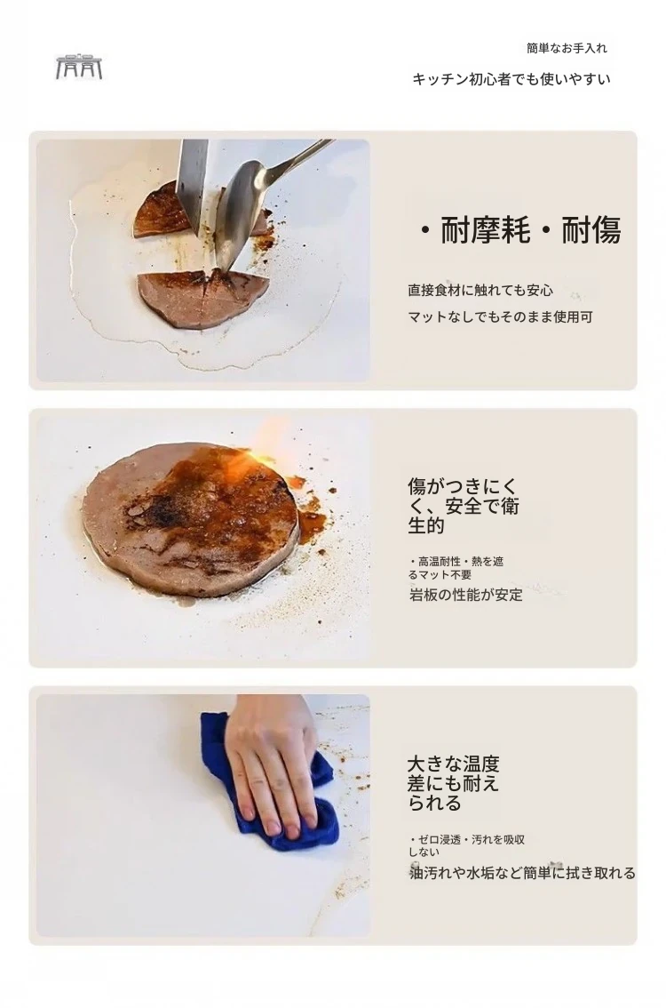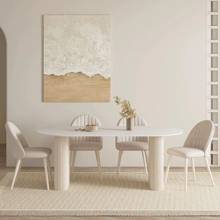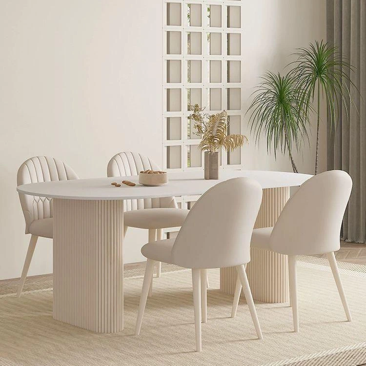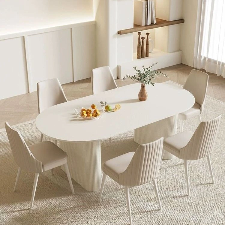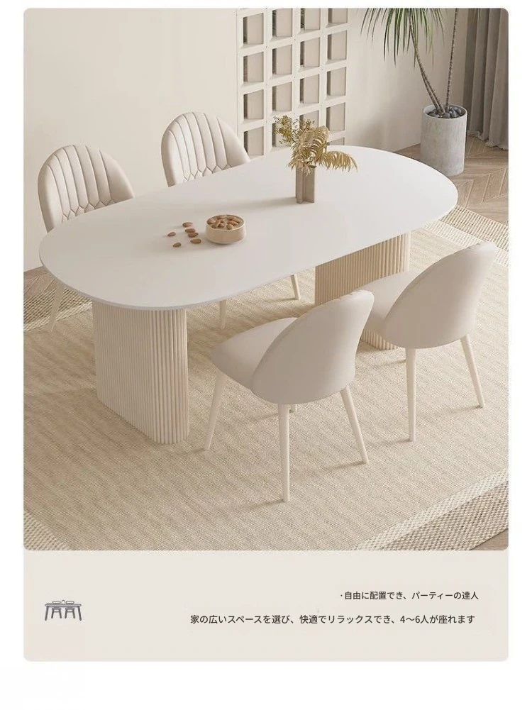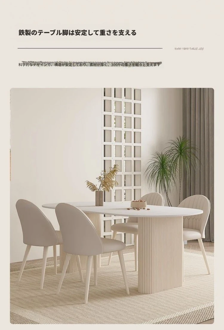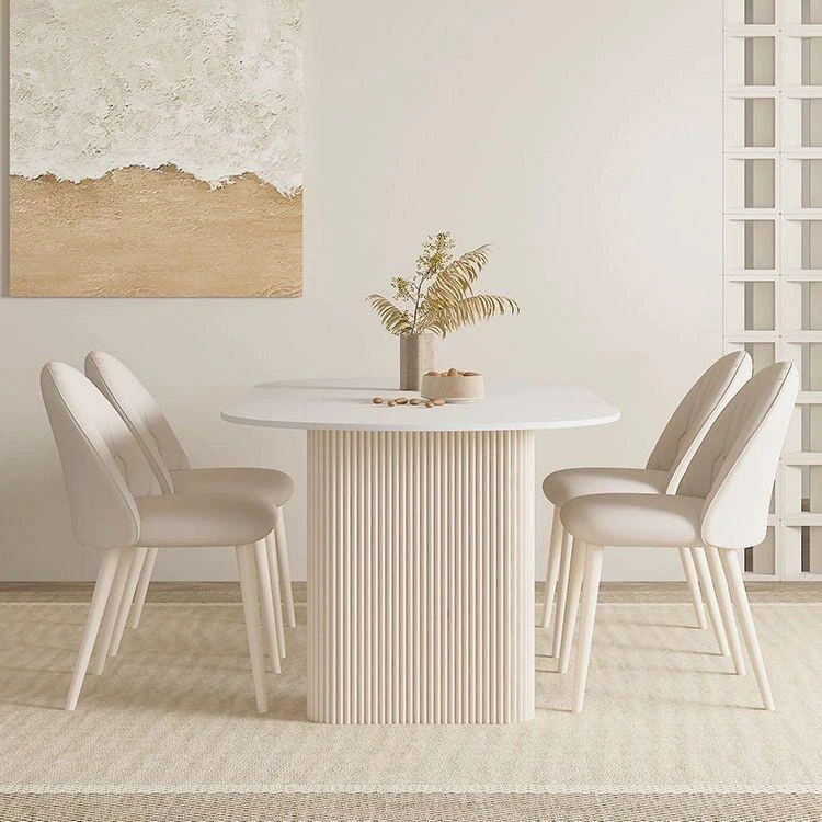 クリーミーホワイトの岩板ダイニングテーブル - 家庭用の軽やかなラグジュアリースタイル、モダンでシンプル、大きさもミニマルなフレンチコンビネーションで、小さなスペースにもぴったり!