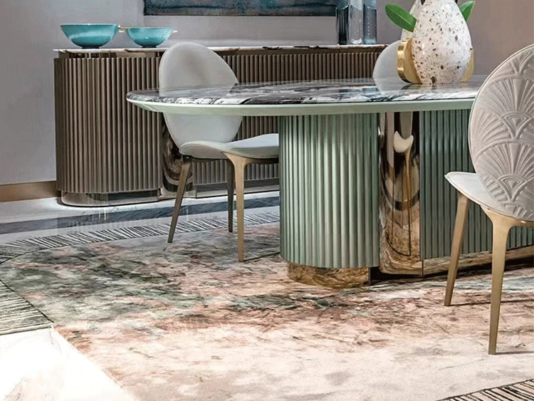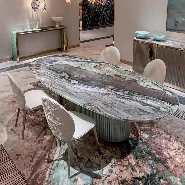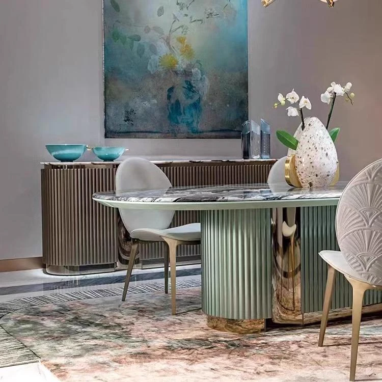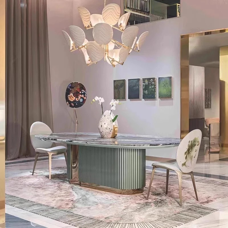 ラグジュアリーなダイニングテーブル|高級別荘向けのエレガントな楕円形テーブル|広々とした豪邸に最適なスタイリッシュな家具セット|上質な素材で作られた、贅沢な食事空間を演出します!