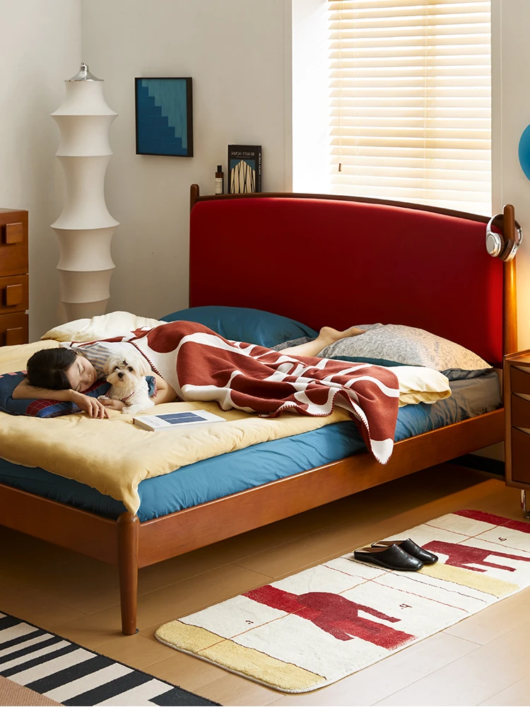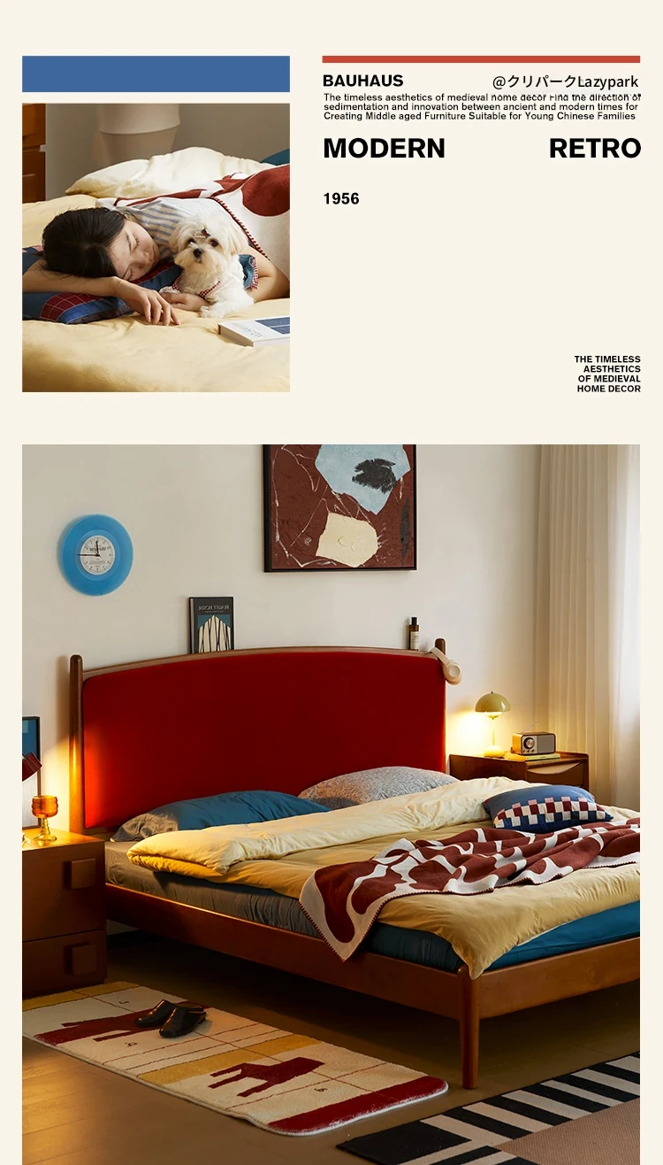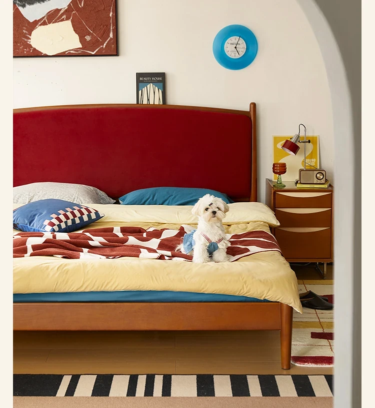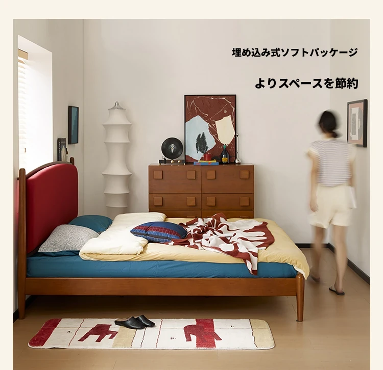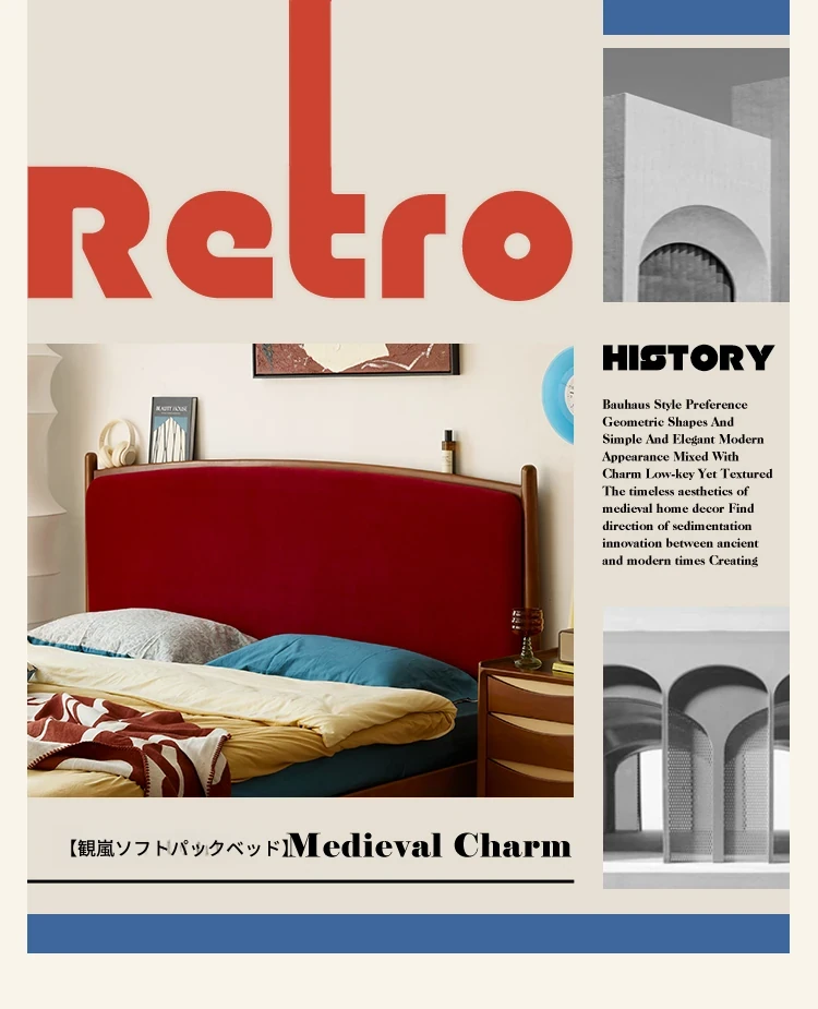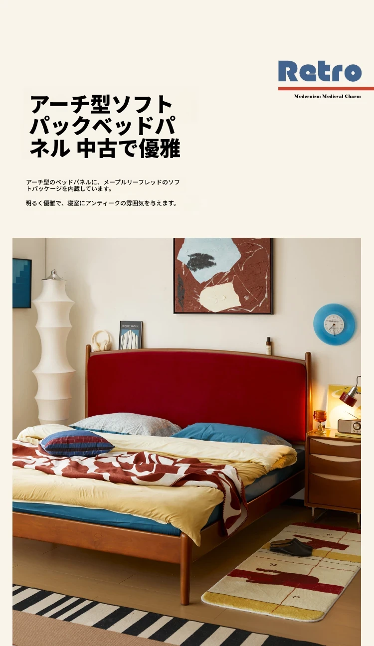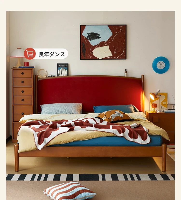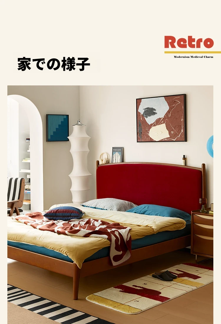 (さようならシリーズ)栗子公園の観嵐ベッド、実木製の軽やかなフレンチヴィンテージスタイル、1.8mダブルファブリックソフトパッケージベッド。快適な眠りとおしゃれな空間を演出します!