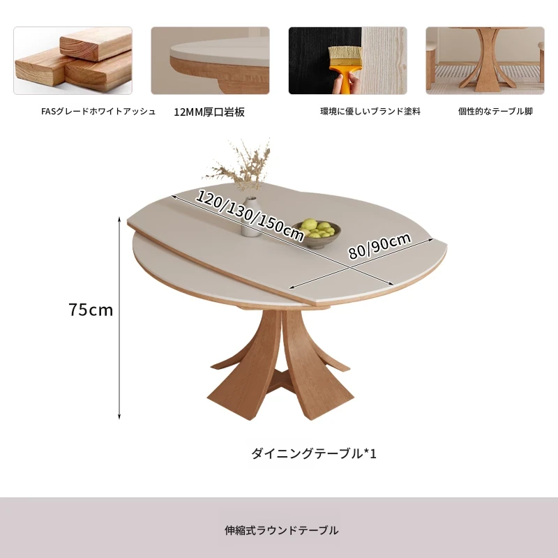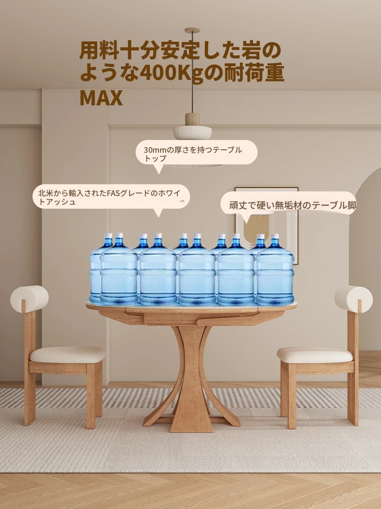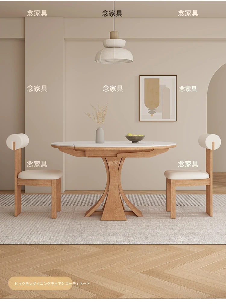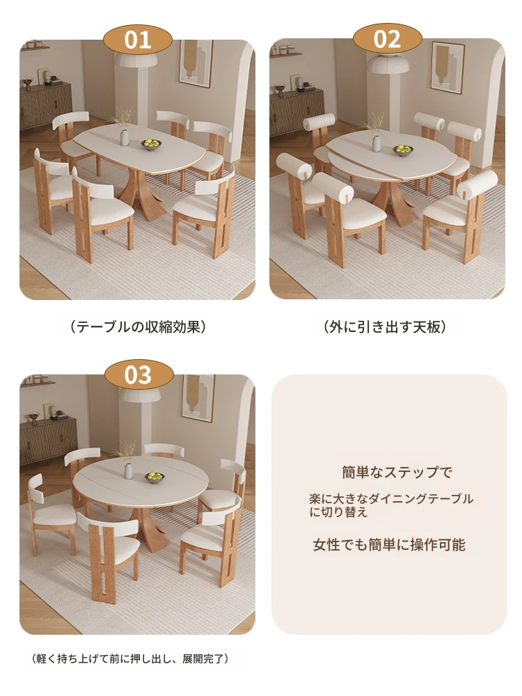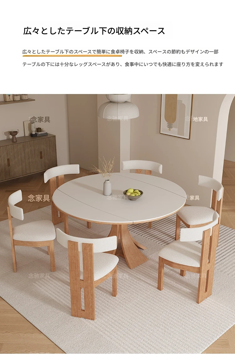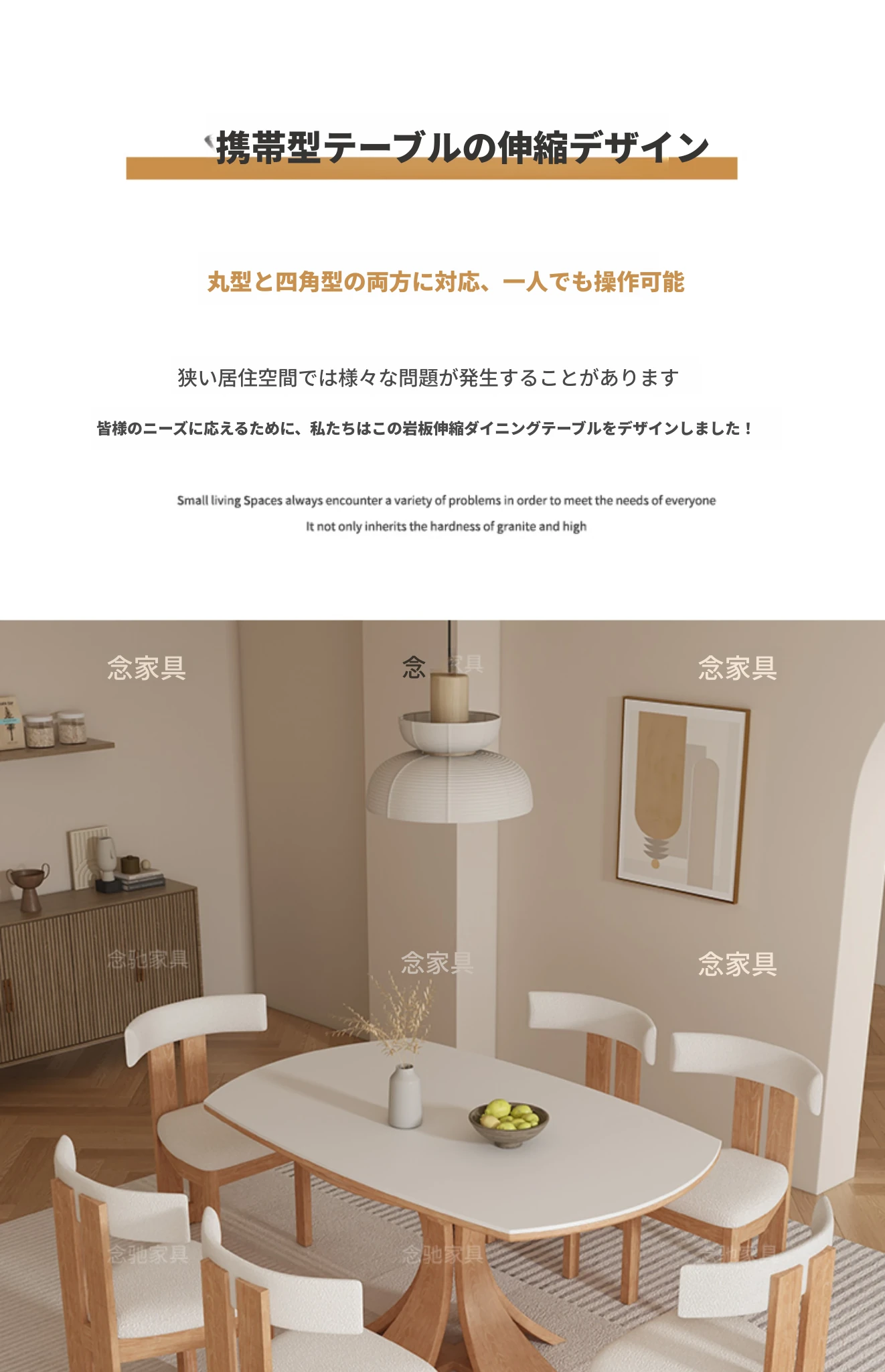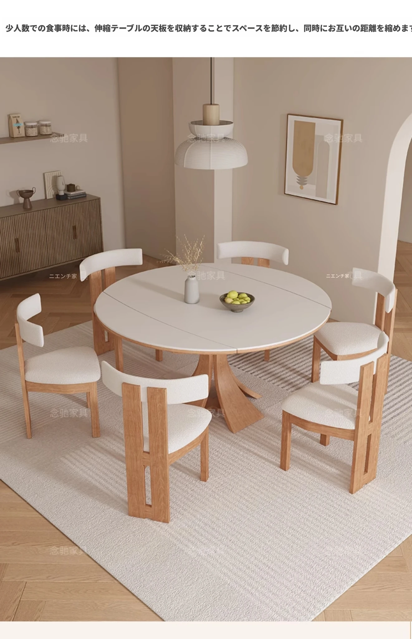 天然木材のクリーム風伸縮式ダイニングテーブル - 家庭用小型折りたたみ可変ラウンド&スクエアテーブルで、食事を楽しむ新しいスタイル!
