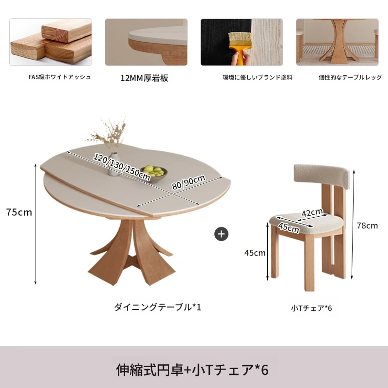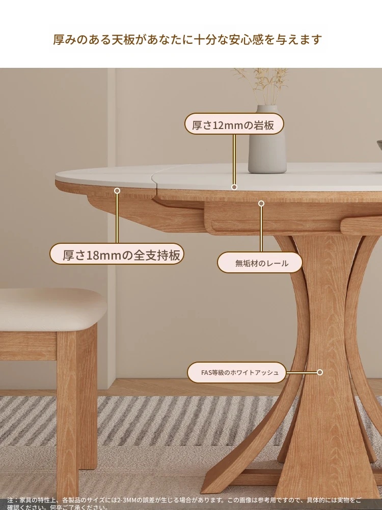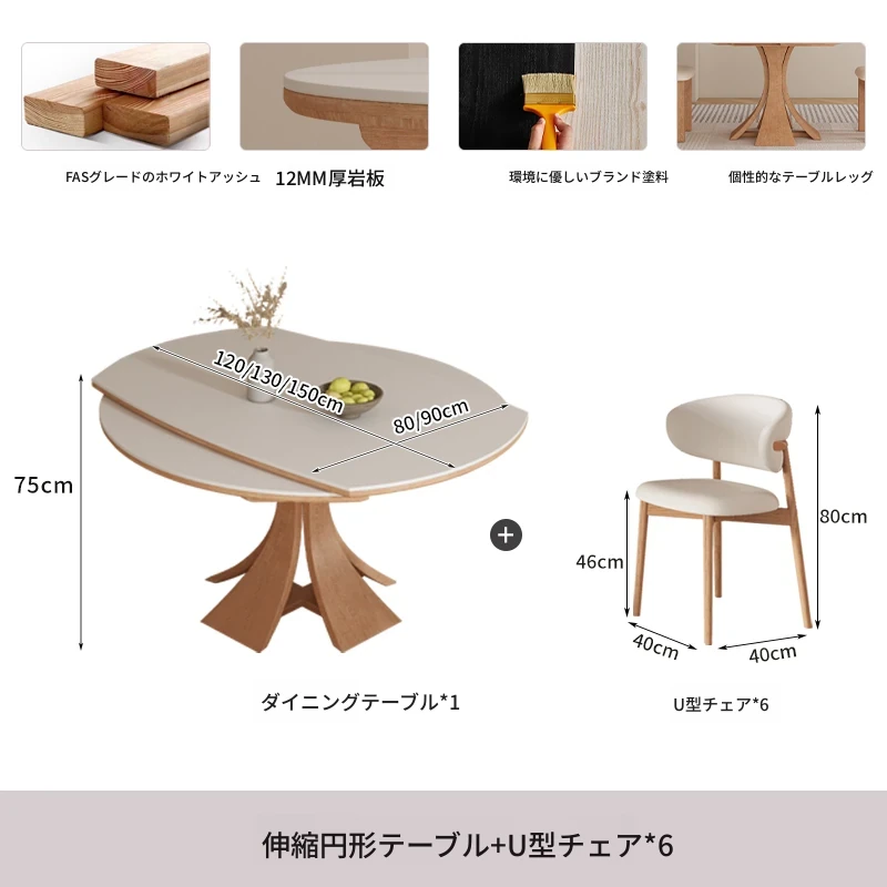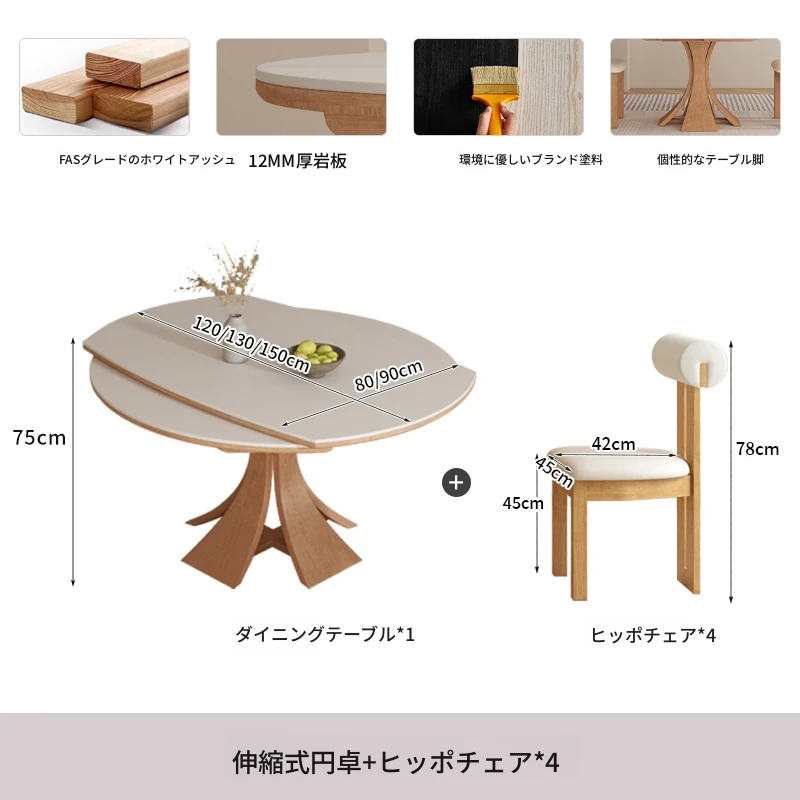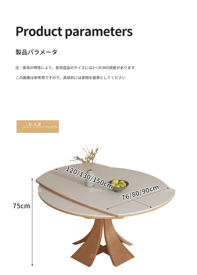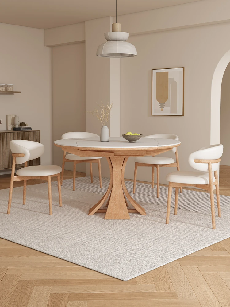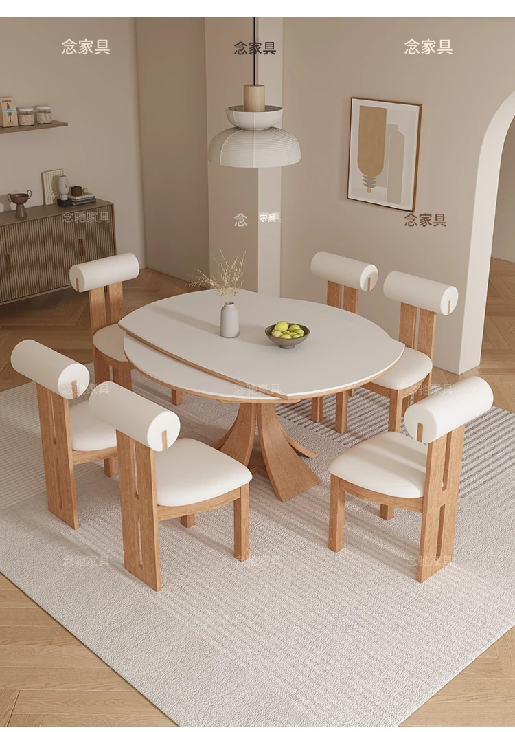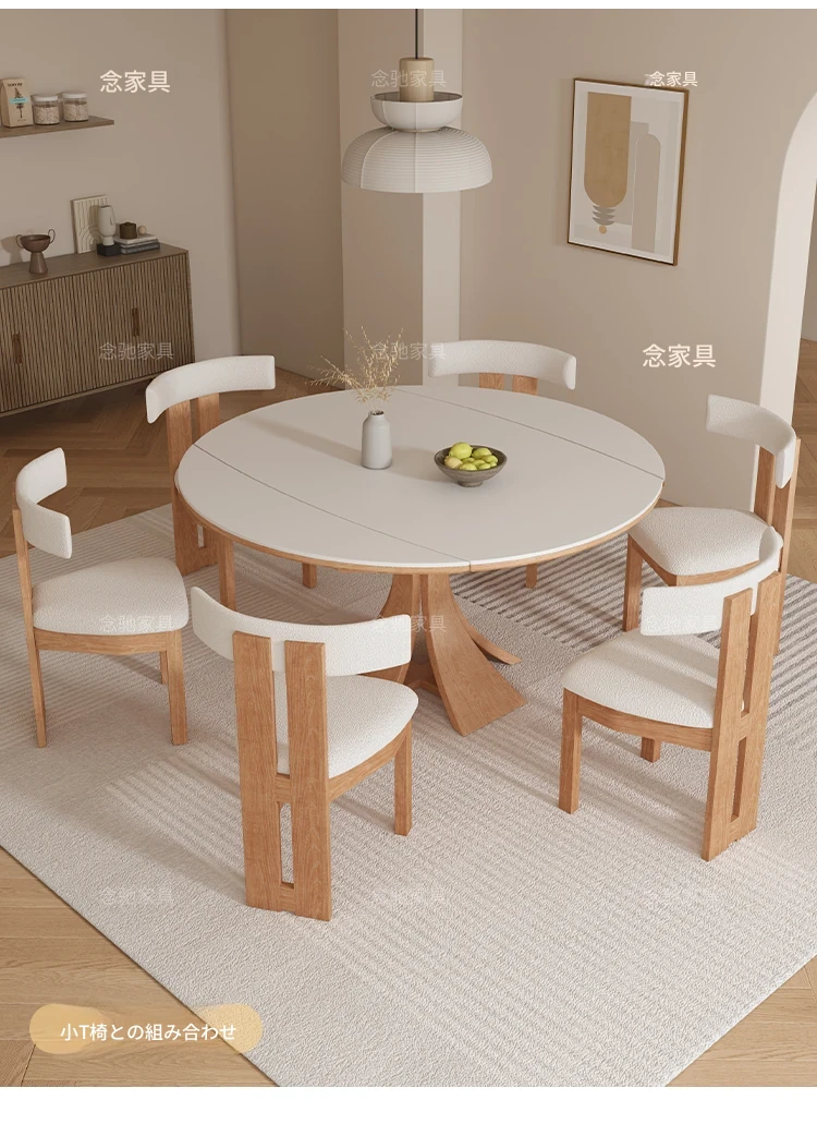 天然木材のクリーム風伸縮式ダイニングテーブル - 家庭用小型折りたたみ可変ラウンド&スクエアテーブルで、食事を楽しむ新しいスタイル!