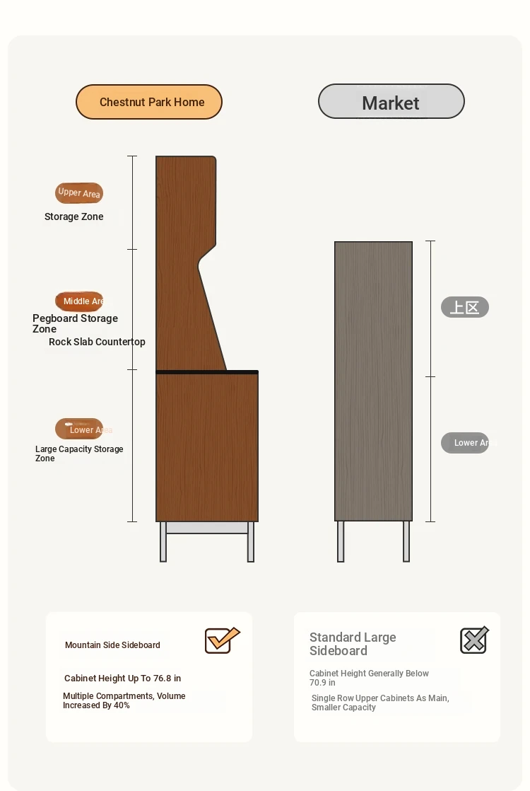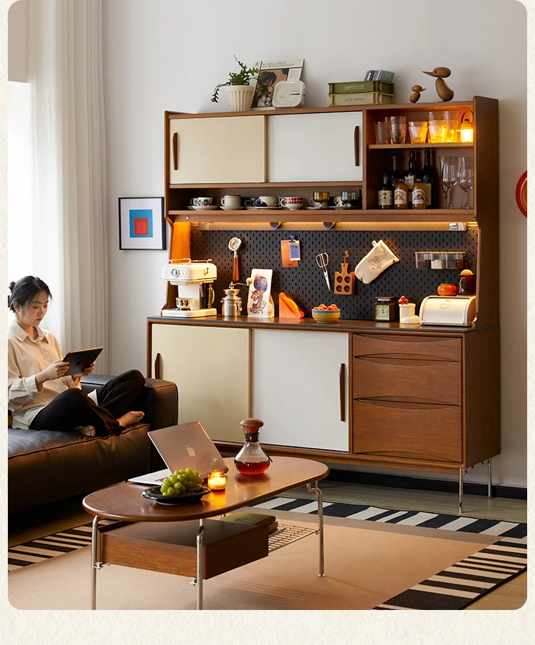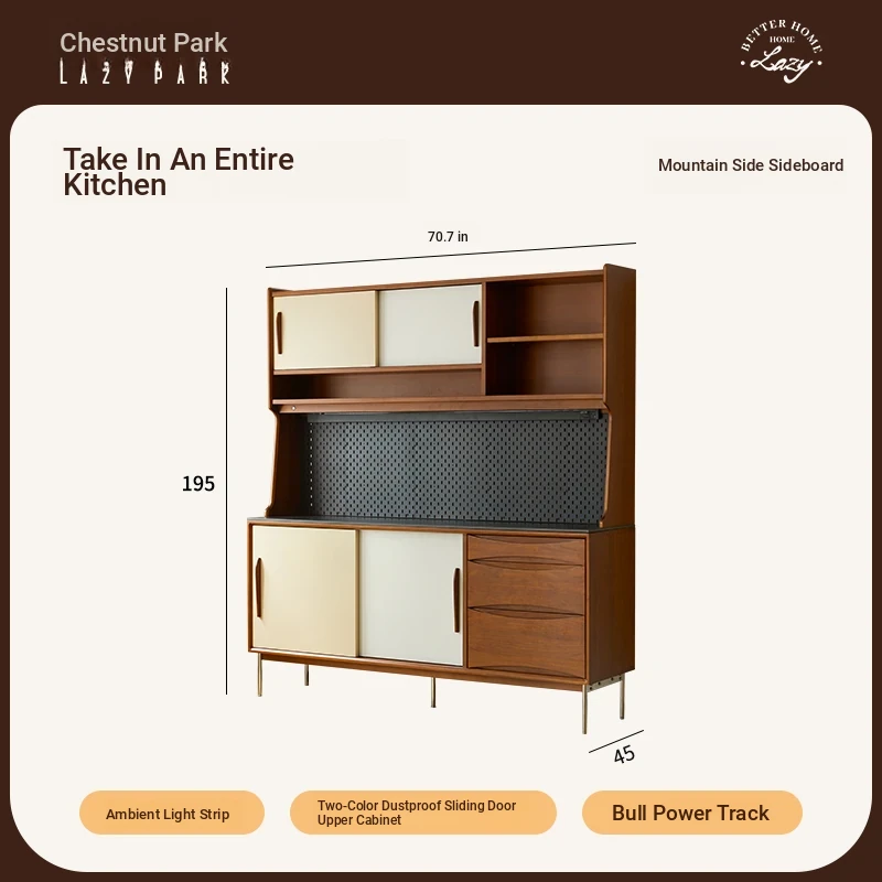 (Farewell Edition) Chestnut Park Solid Wood Vintage High Cabinet - Wall-Mounted Storage Solution for Living Room, Stylish and Functional Sideboard