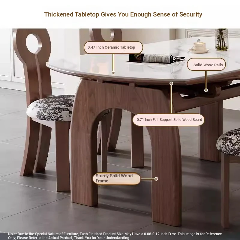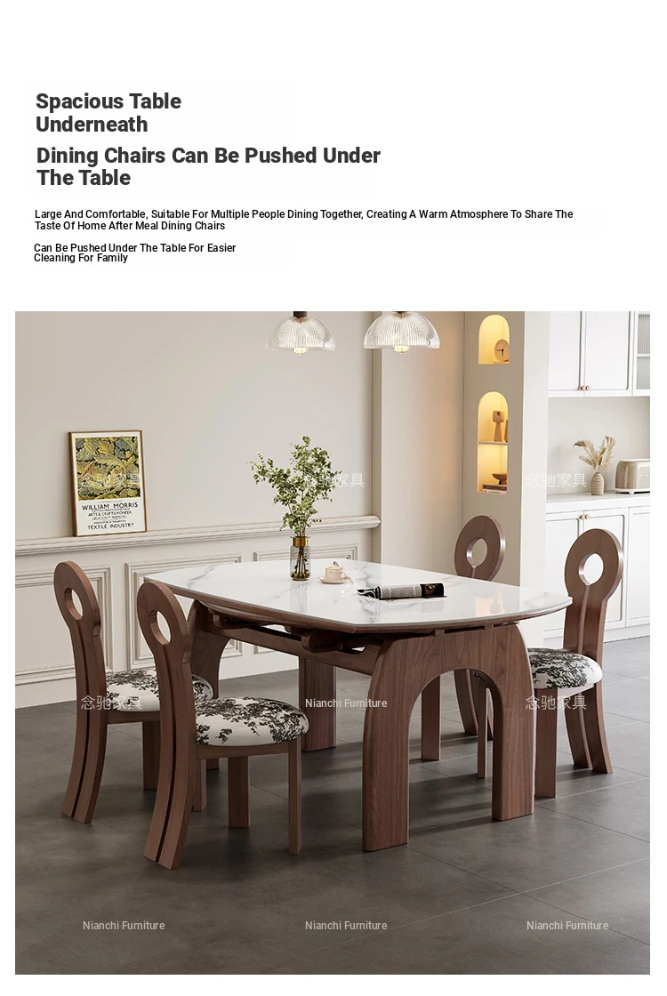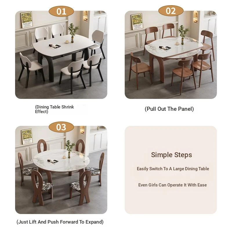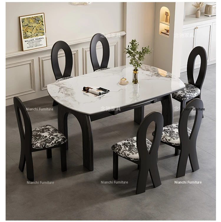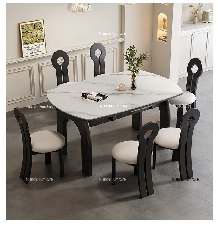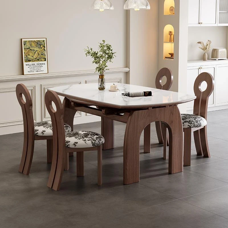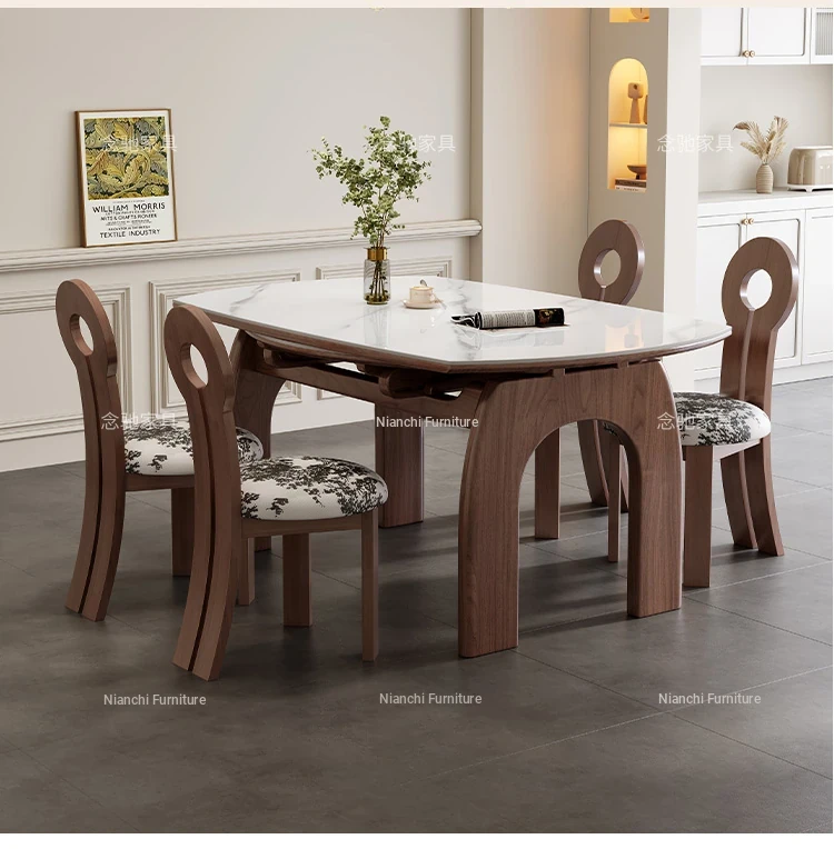 French Vintage White Ash Wood Expandable Rock Plate Dining Table and Chair Set - Retro Solid Wood, Foldable for Home Use, Perfect for Dining and Entertaining.