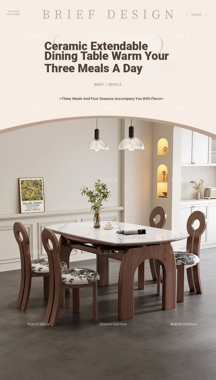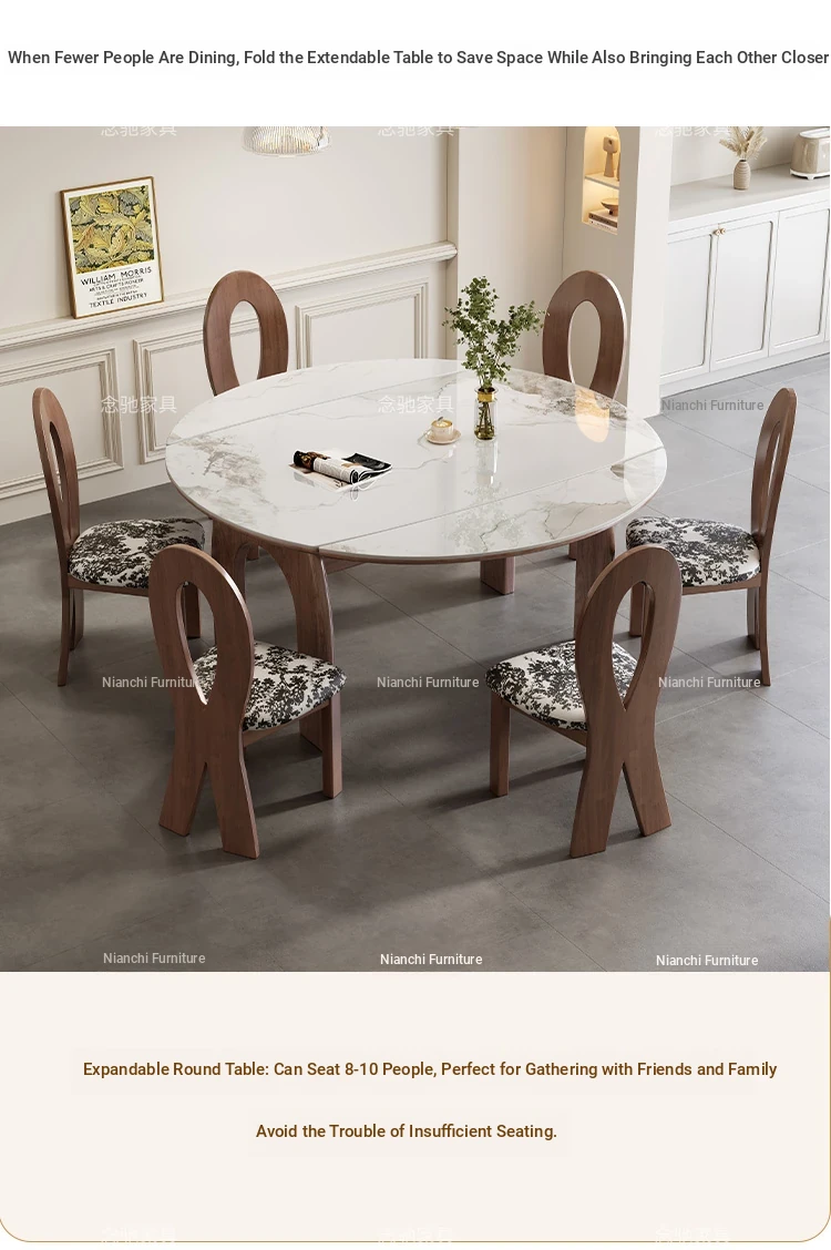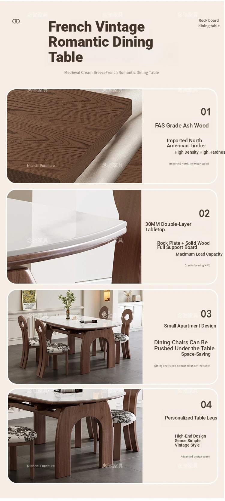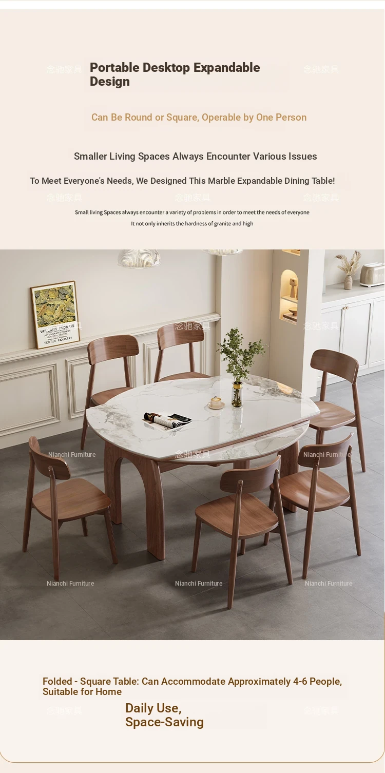 French Vintage White Ash Wood Expandable Rock Plate Dining Table and Chair Set - Retro Solid Wood, Foldable for Home Use, Perfect for Dining and Entertaining.