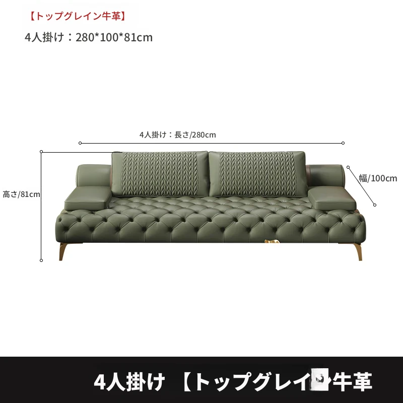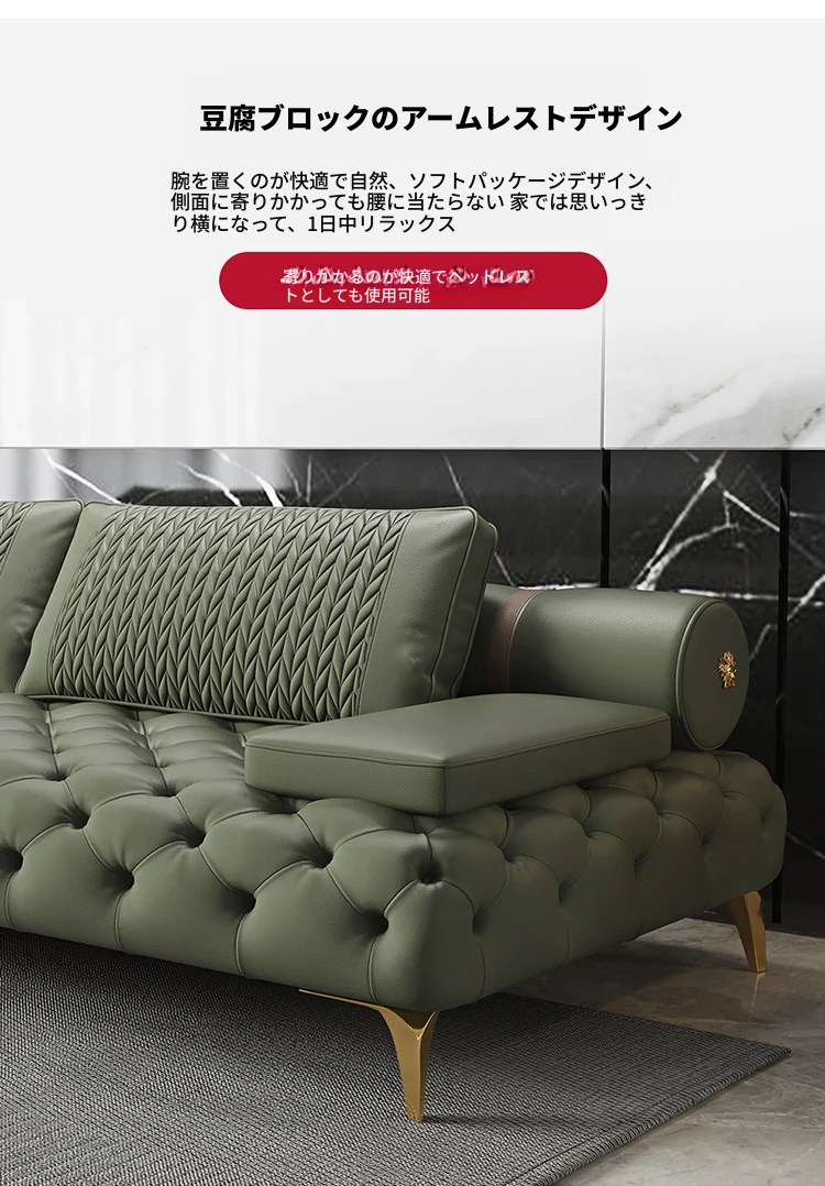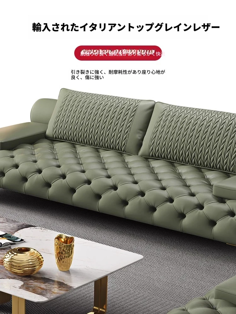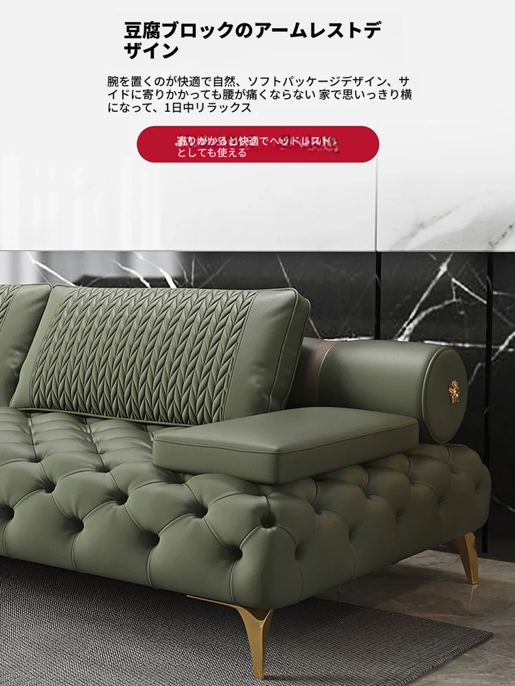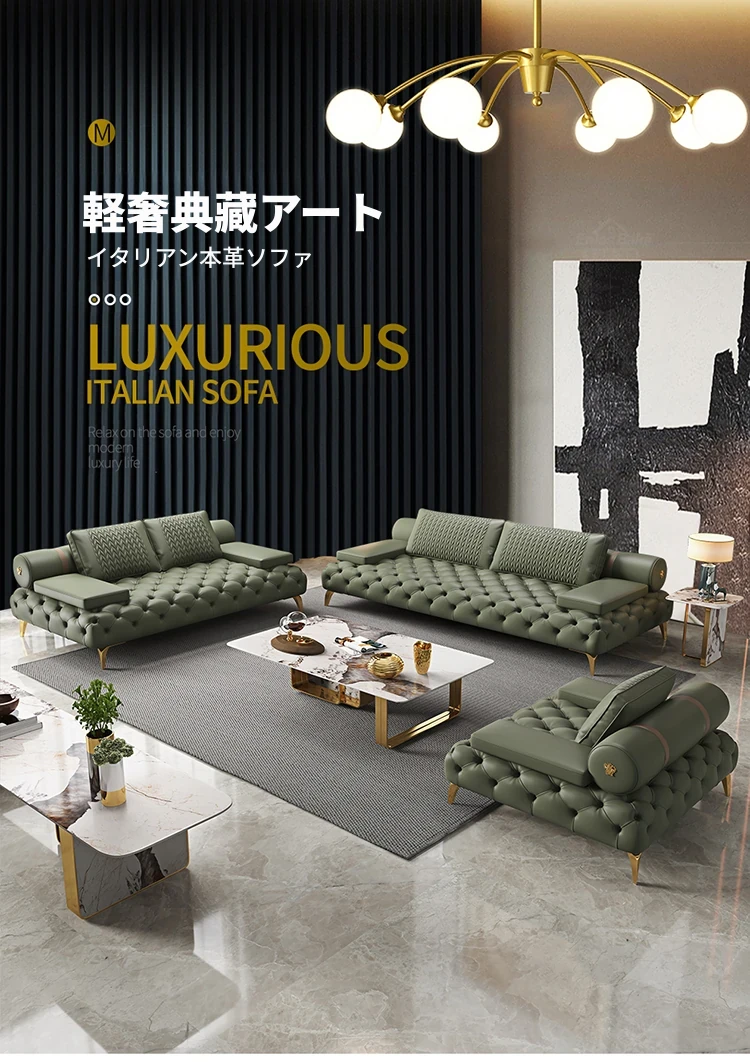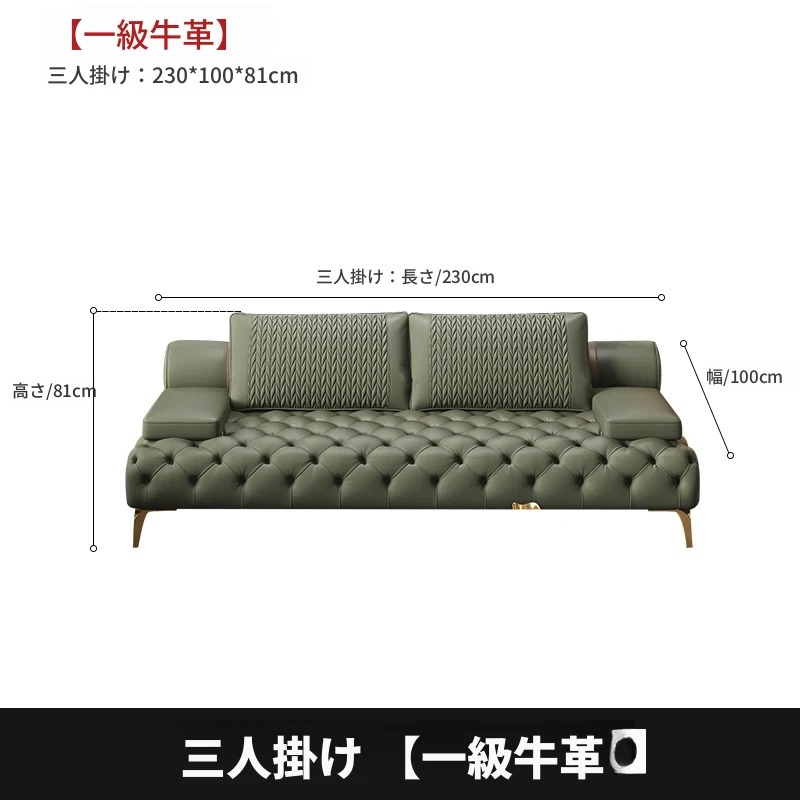 イタリアンラグジュアリー軽奢女神本革ソファ|別荘リビングに最適なストレートラインデザインのデザイナーズ牛革ソファ