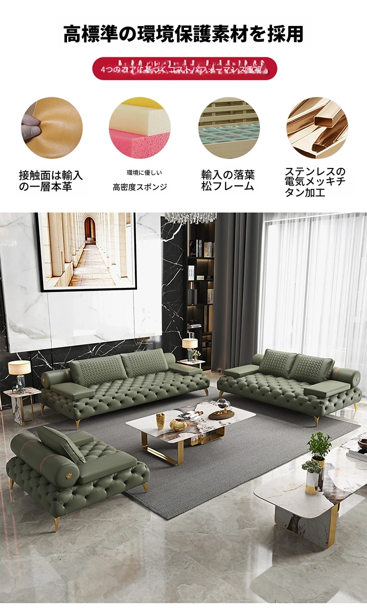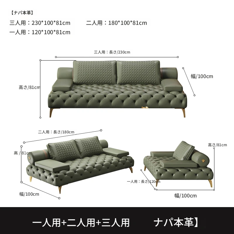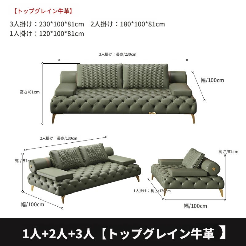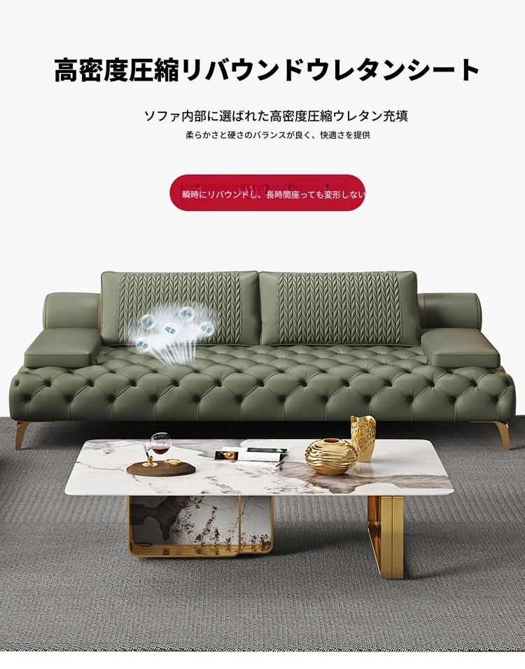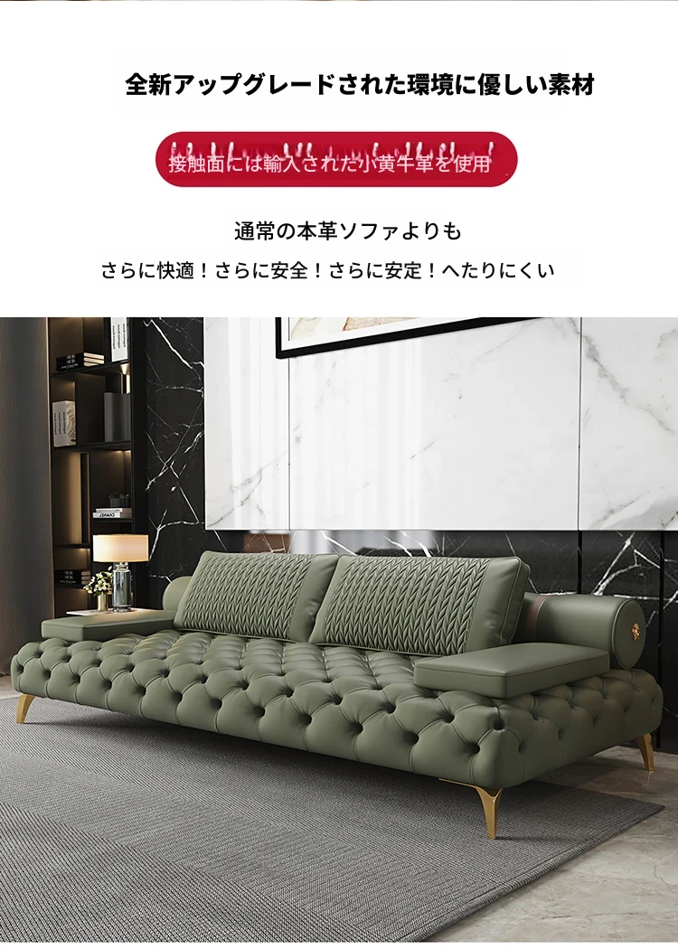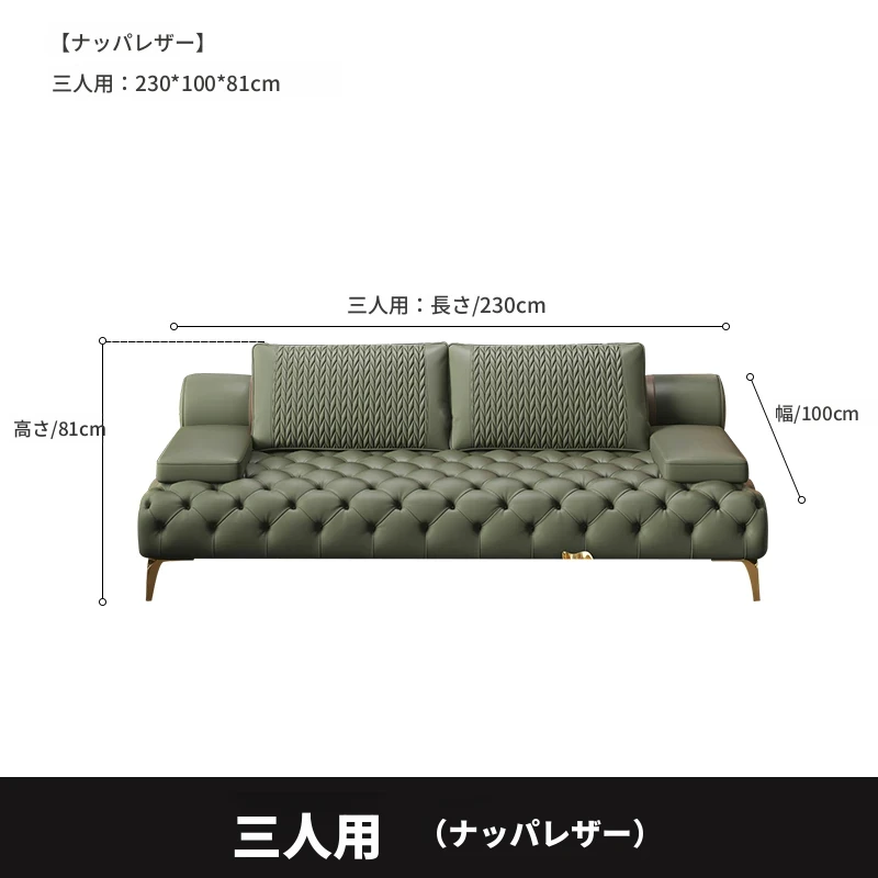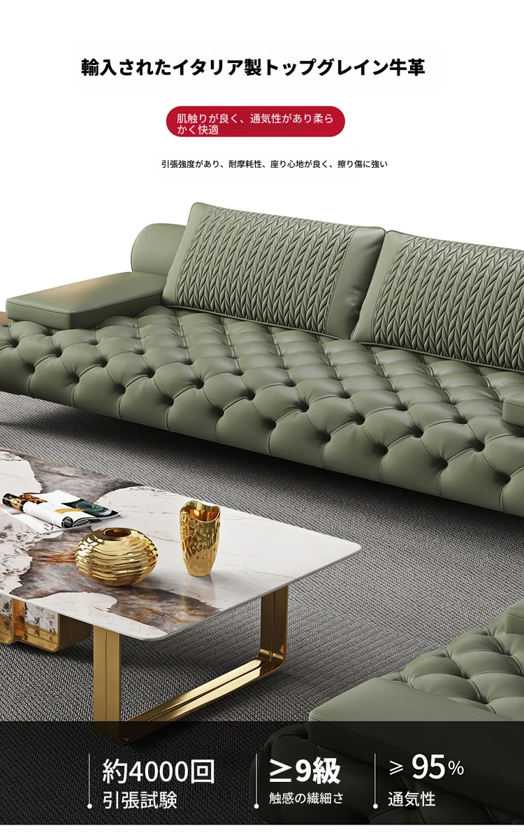 イタリアンラグジュアリー軽奢女神本革ソファ|別荘リビングに最適なストレートラインデザインのデザイナーズ牛革ソファ