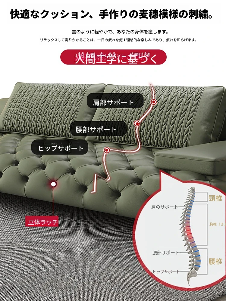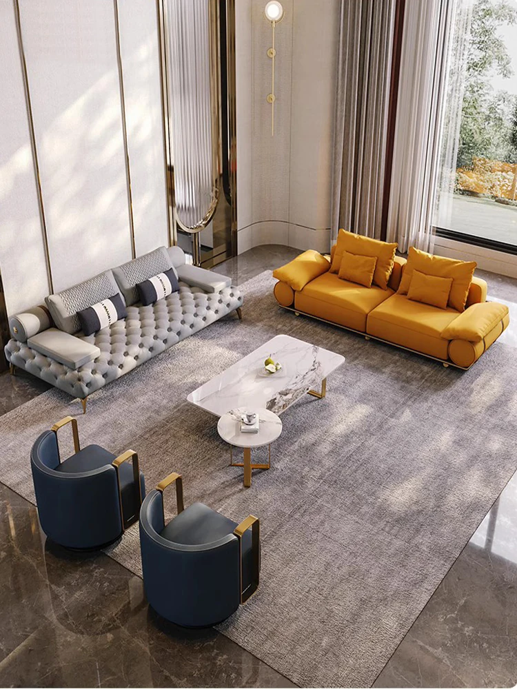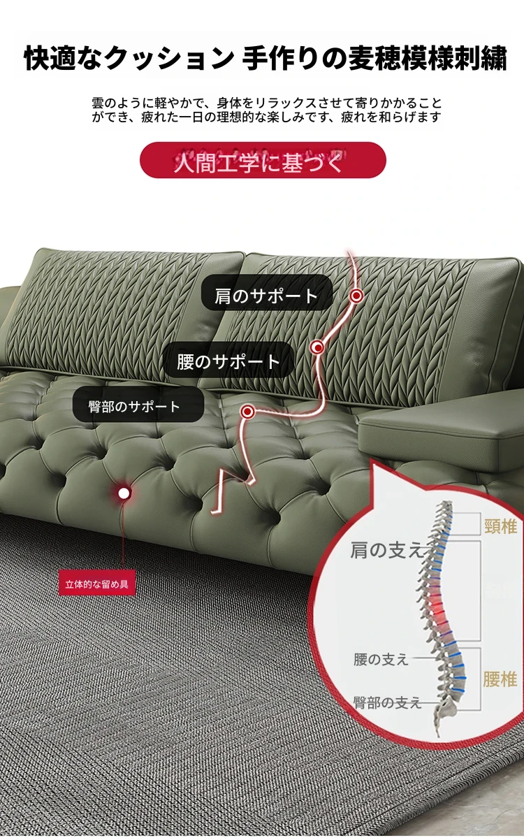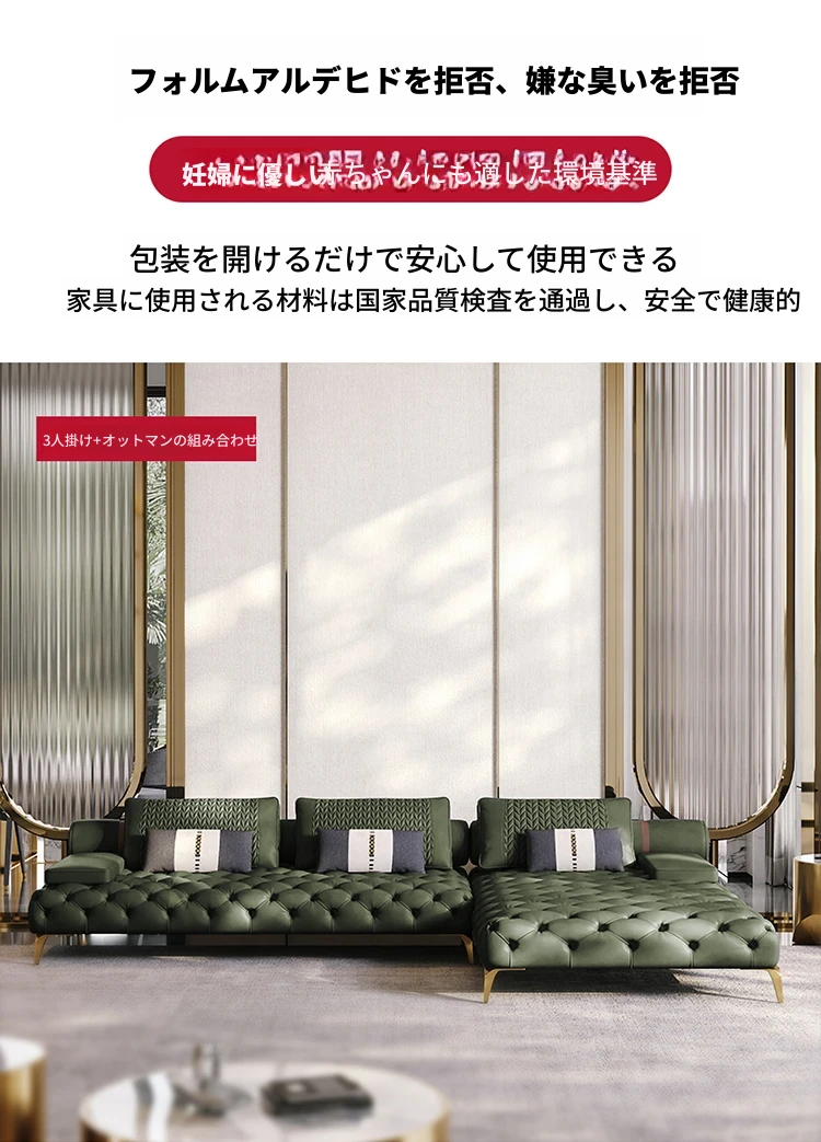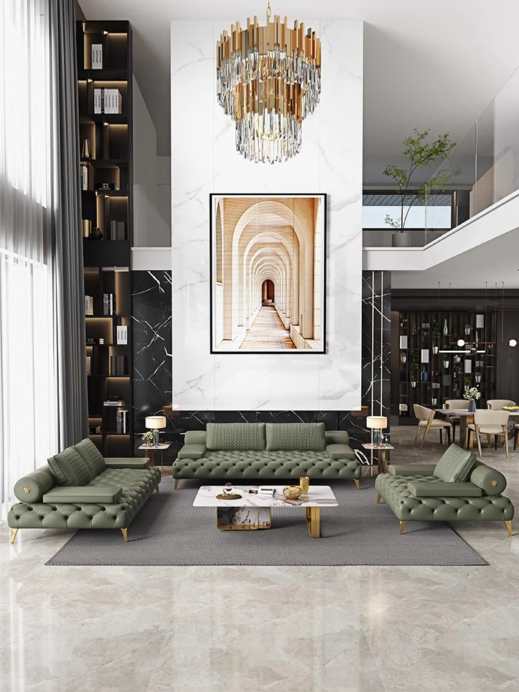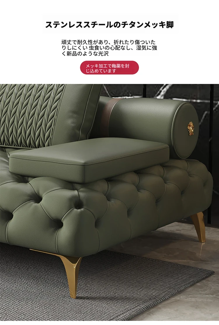 イタリアンラグジュアリー軽奢女神本革ソファ|別荘リビングに最適なストレートラインデザインのデザイナーズ牛革ソファ