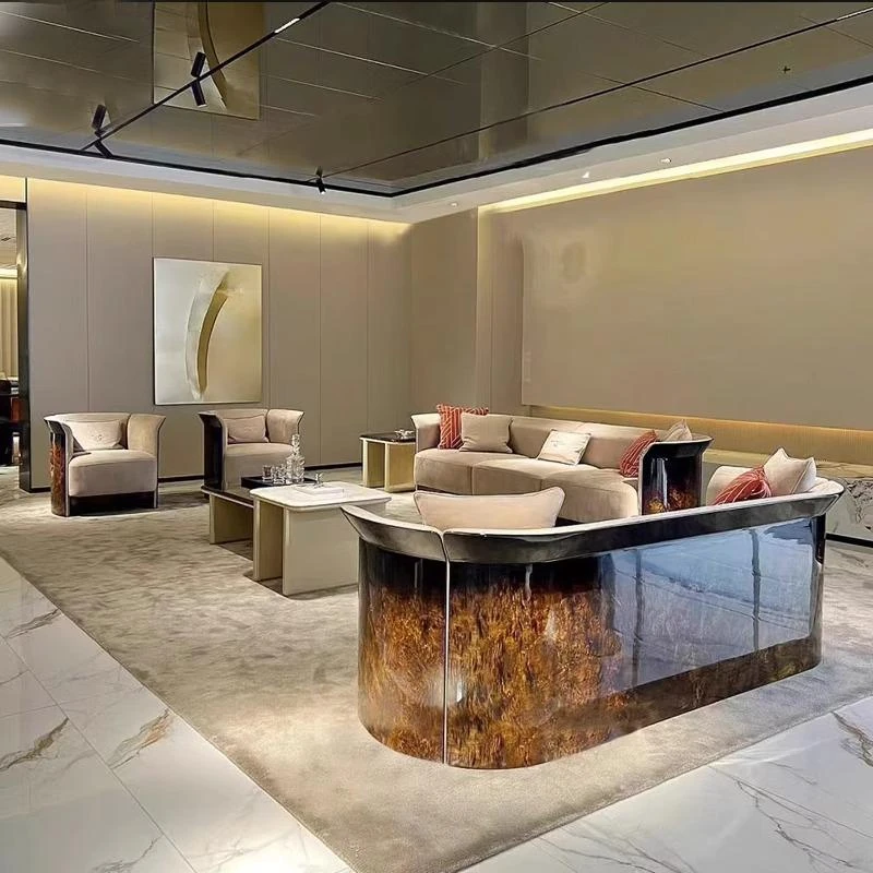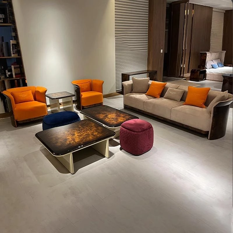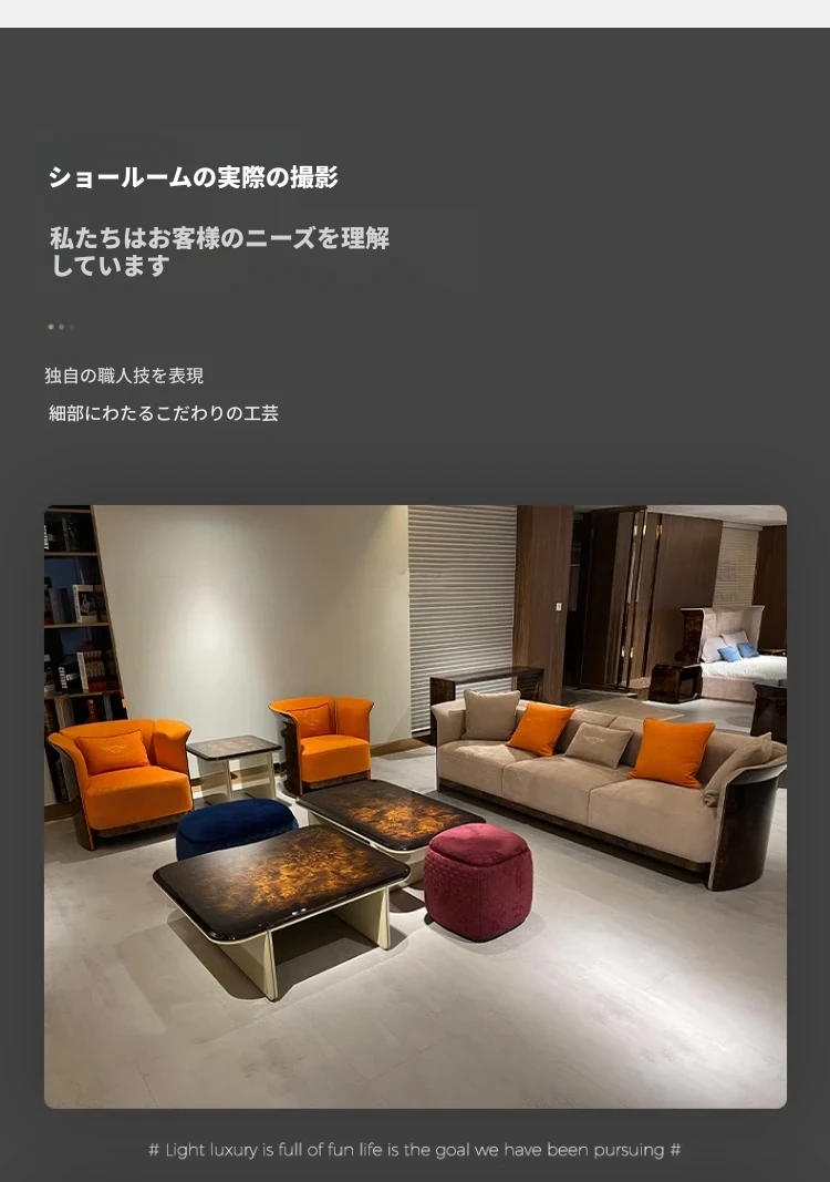 イタリアンラグジュアリー ベンティ 高級本革ソファセット ヴィラにぴったりの贅沢なリビングデザイン現代的なウッドパネル家具の組み合わせで、洗練された空間を演出!