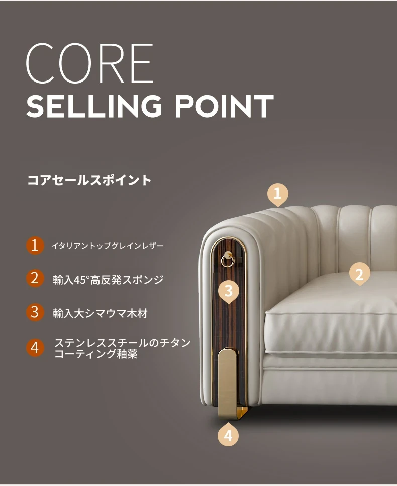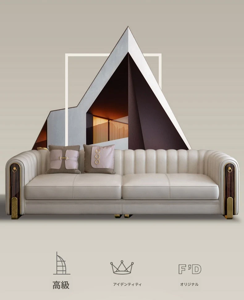 イタリアンラグジュアリー本革ソファ|高級デザイナーによる本牛革製|広々としたリビングに最適なヴィラ向けソファ|上質な素材と洗練されたデザインで、あなたの家に特別な空間を演出します。
