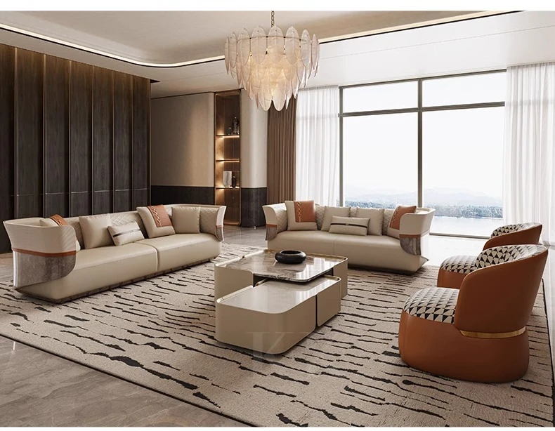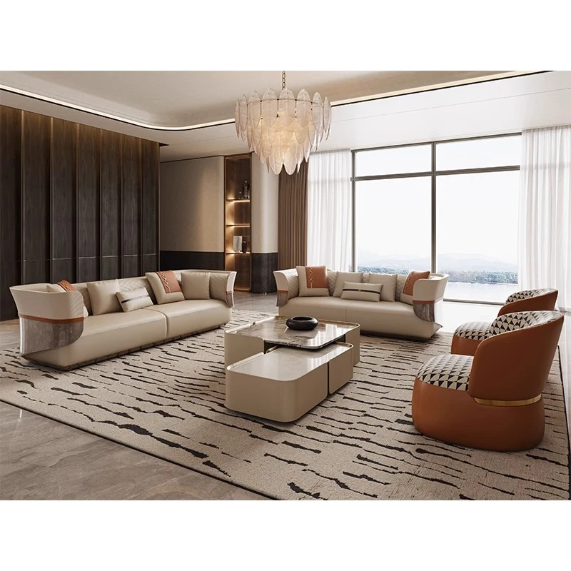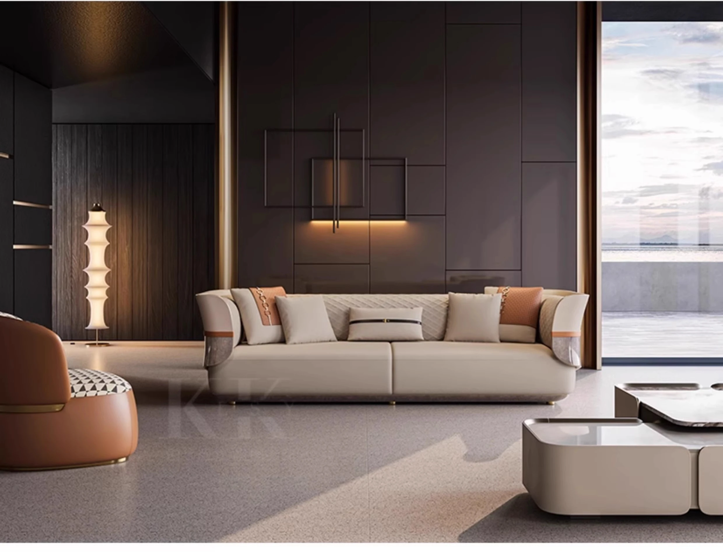 イタリアンラグジュアリー本革ソファ - 高級感溢れるデザインで、豪邸にぴったりの大空間リビング家具。上質な素材と洗練されたスタイルで、あなたの居住空間を格上げします。