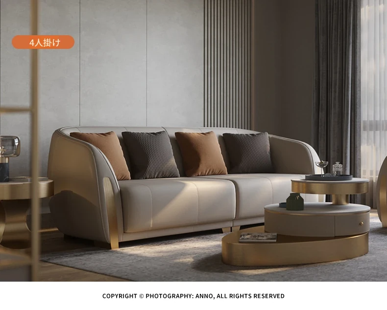イタリアンラグジュアリー本革ソファ|高級な牛革使用|モダンでシンプルなデザイン|リビングに最適|大小様々なスペースにぴったりなスタイリッシュソファ