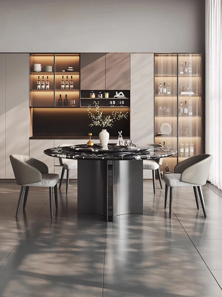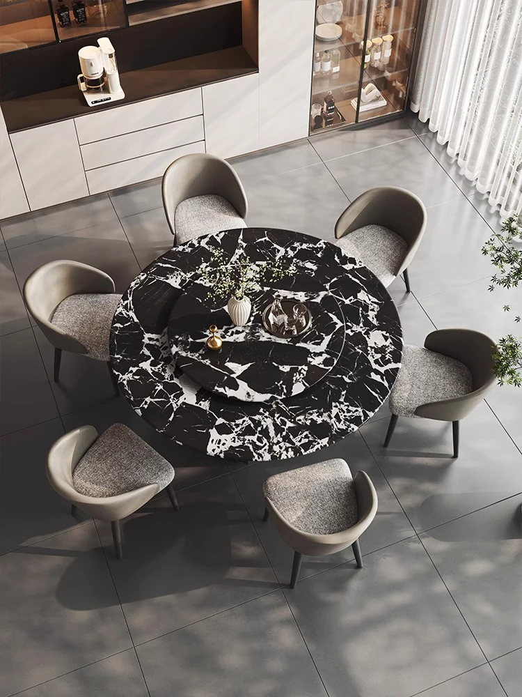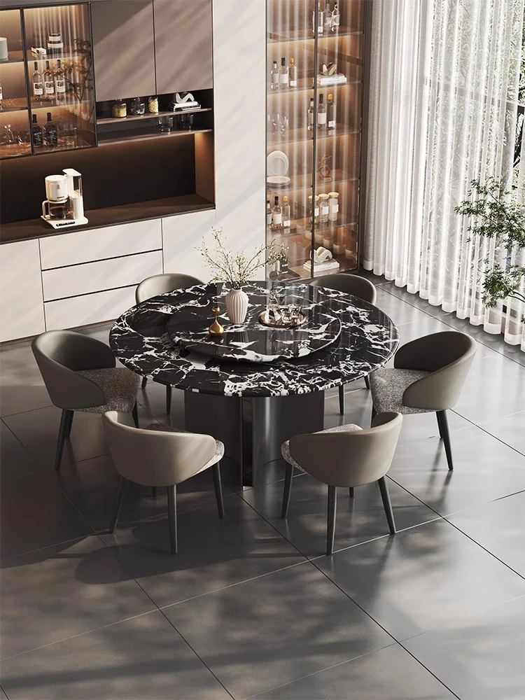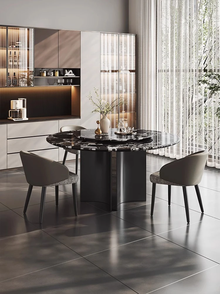 イタリアンラグジュアリー感漂う天然ボッテガ・ヴェネタ風ブラック大理石ダイニングテーブル&チェアセット 家庭用ラグジュアリーサークルテーブル
