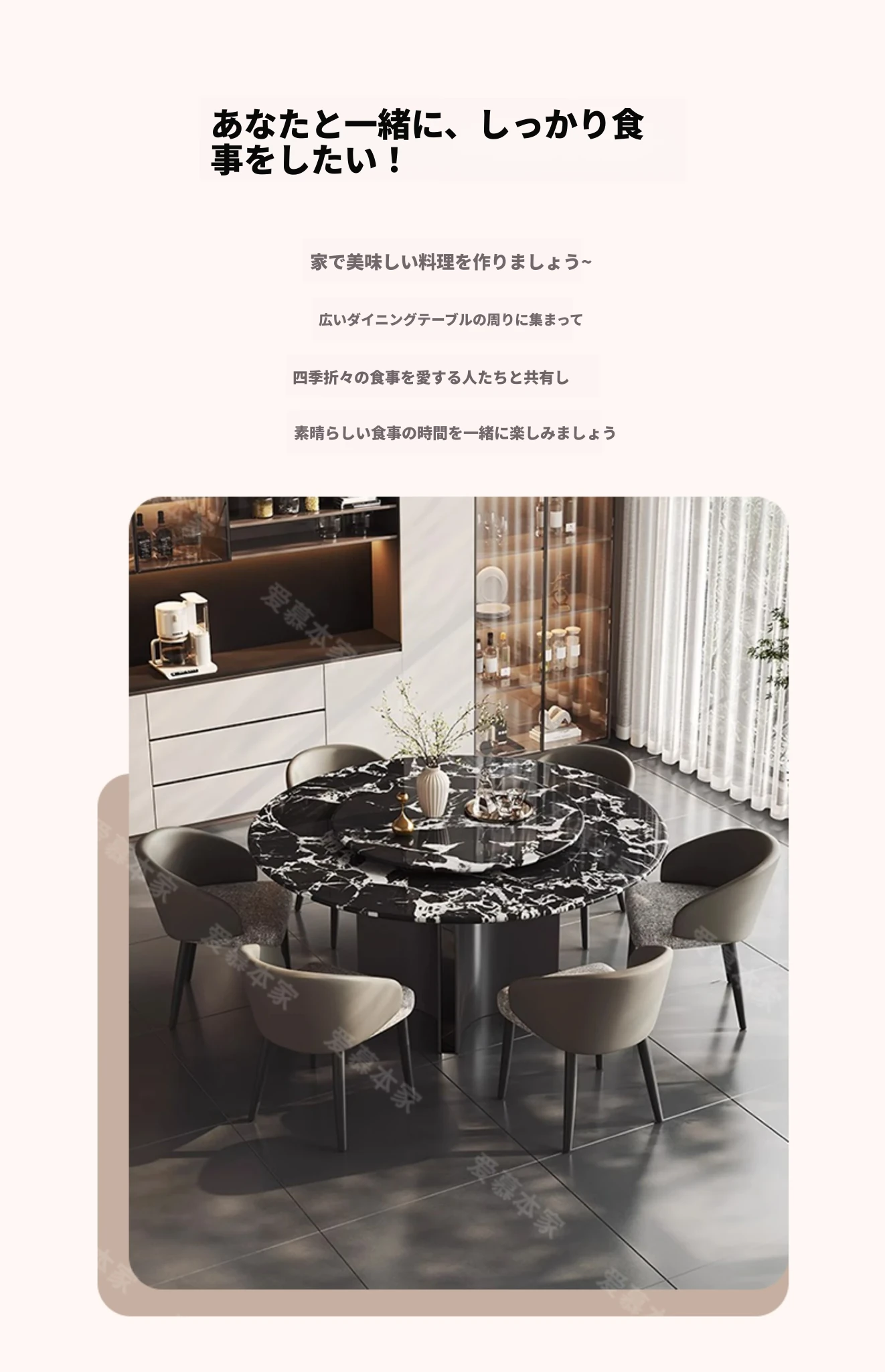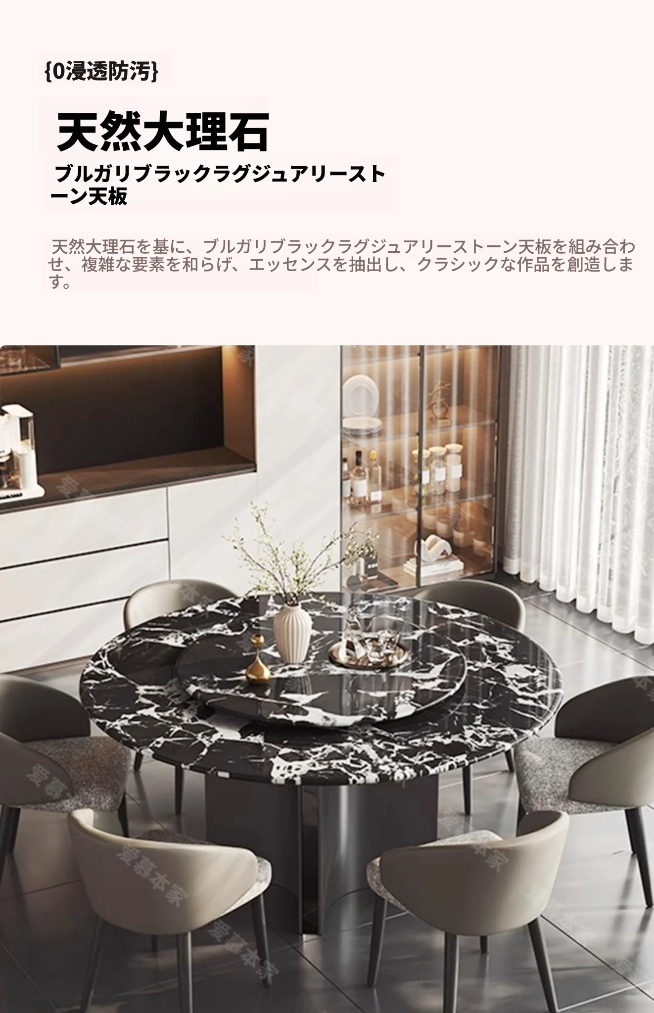 Bvlgari/宝格丽ラウンドテーブル+回転盤+ダイニングチェア*6