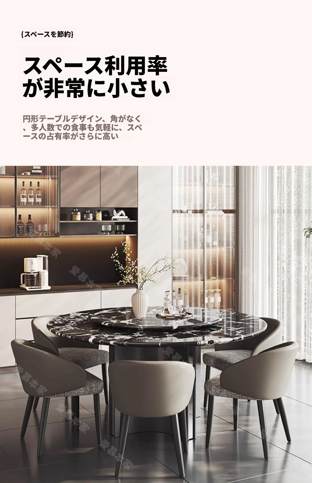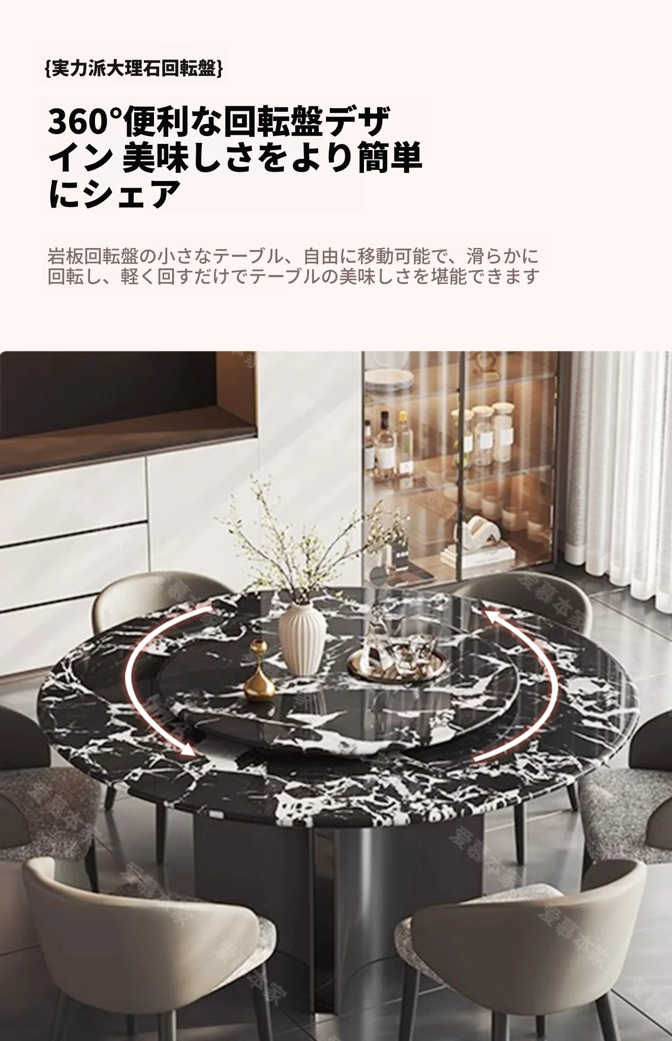 Bvlgari/宝格丽ラウンドテーブル+回転盤+ダイニングチェア*4