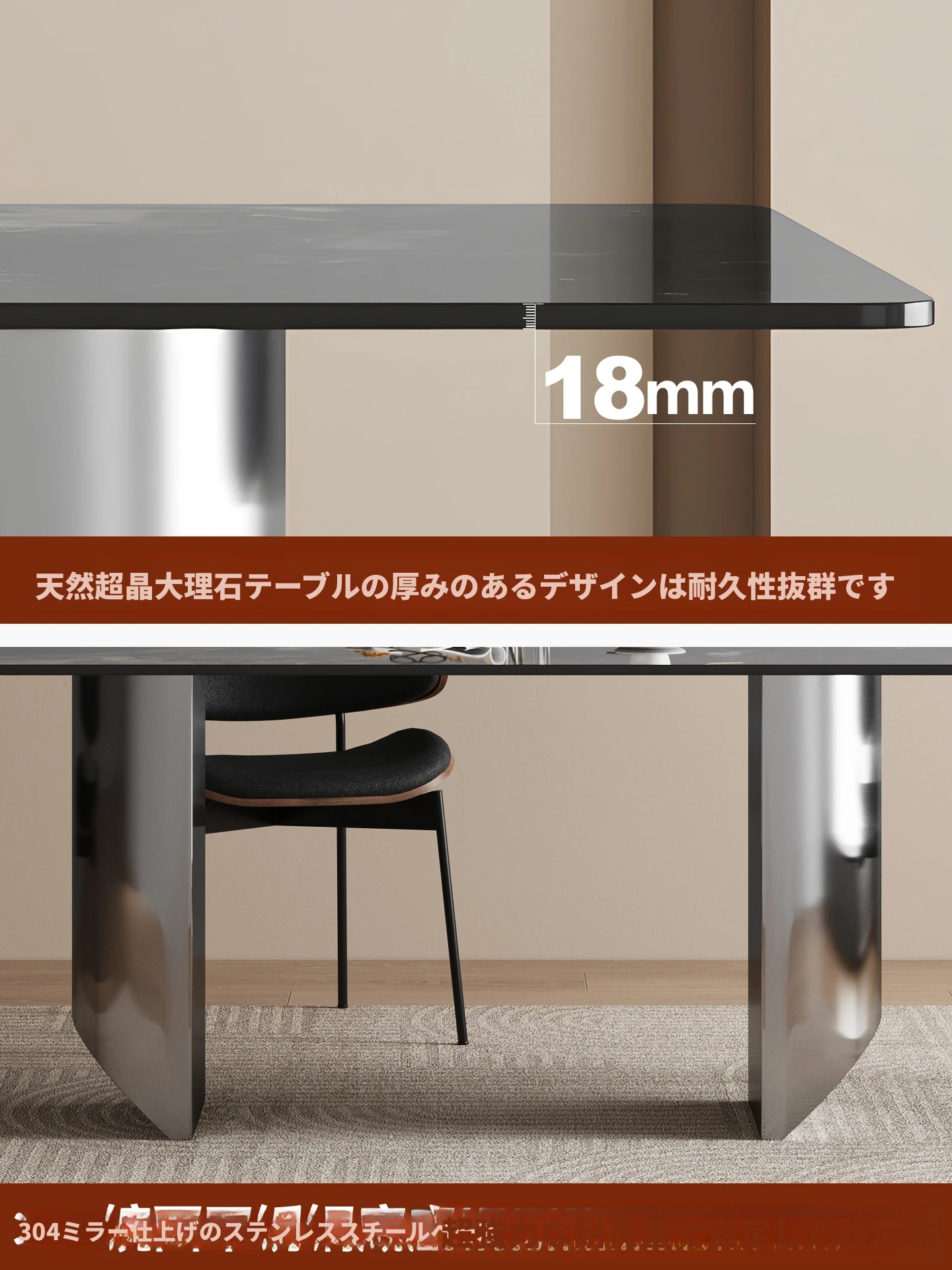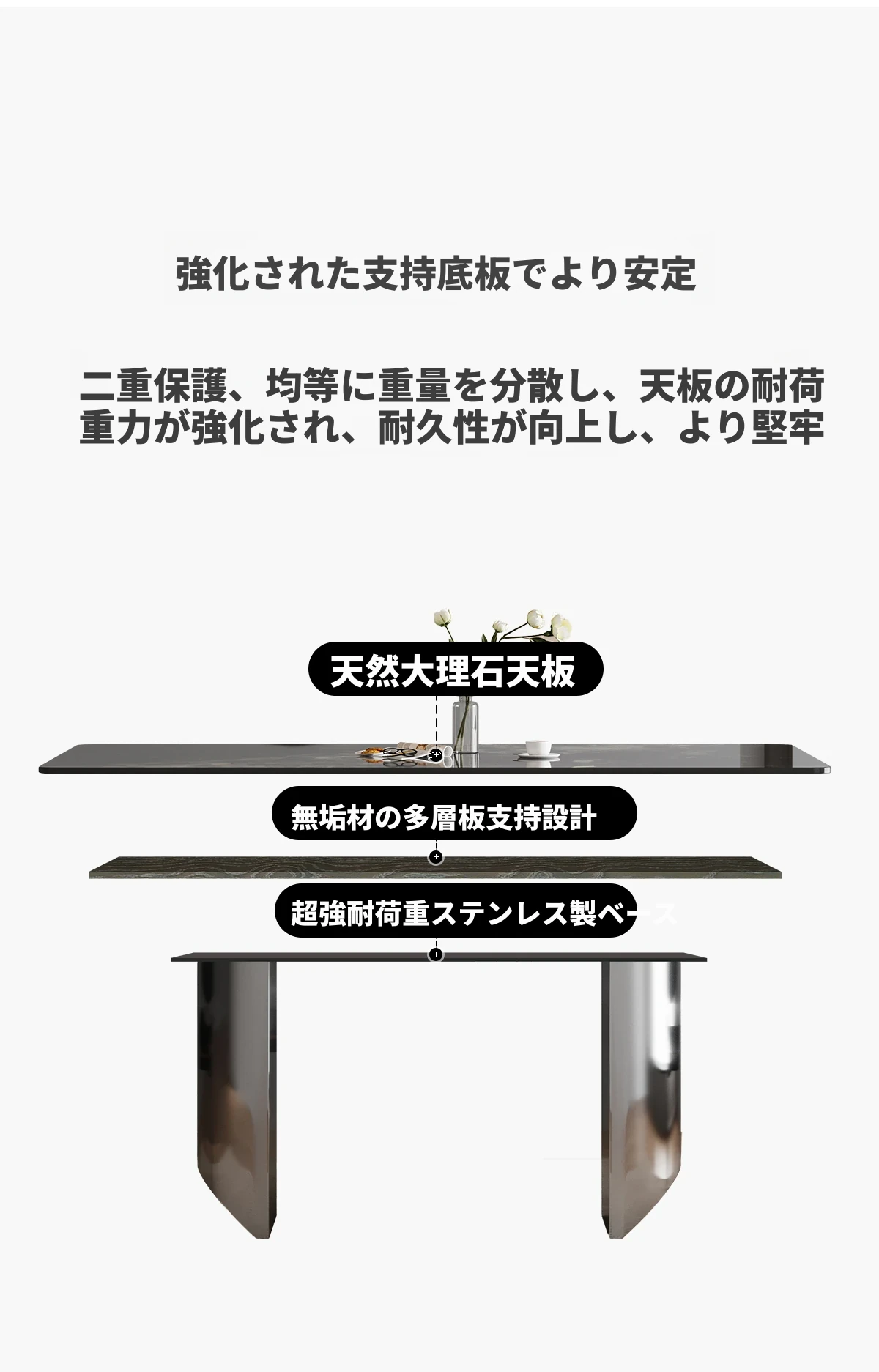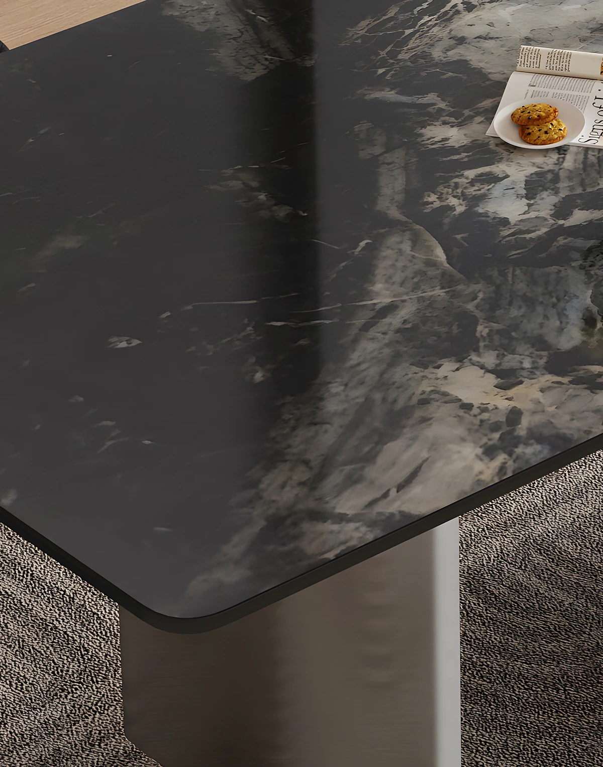 1.8*0.9メートル ブラックオニキス大理石ダイニングテーブル 【グレー鋼ベース】