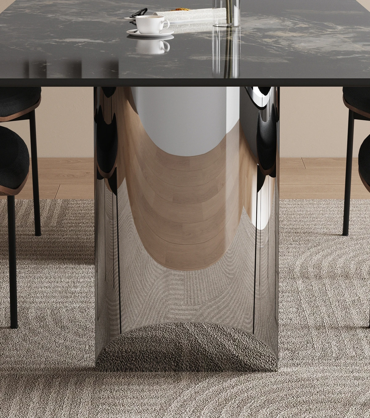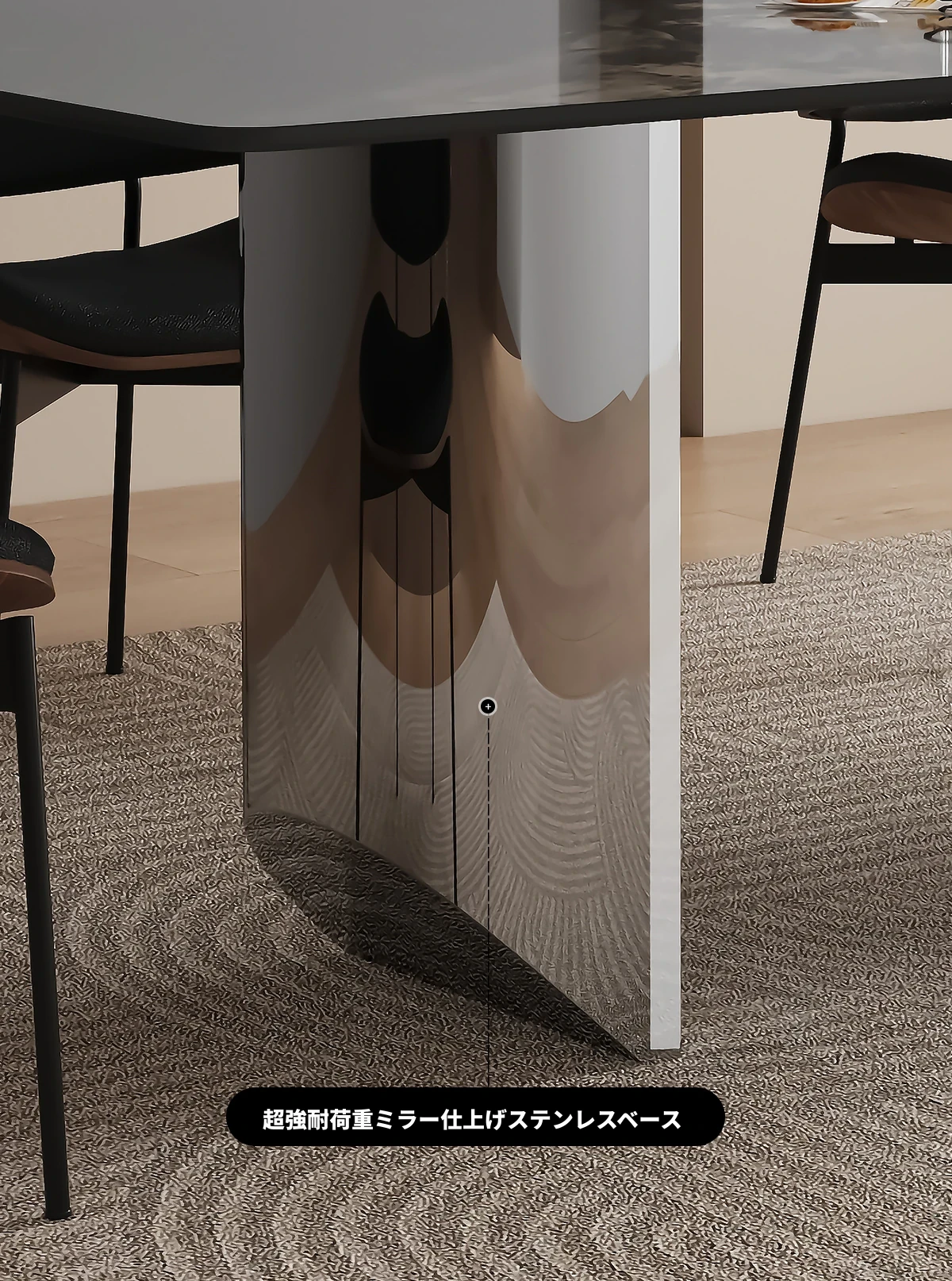 1.6*0.8メートル ブラックオニキス大理石ダイニングテーブル 【グレー鋼ベース】