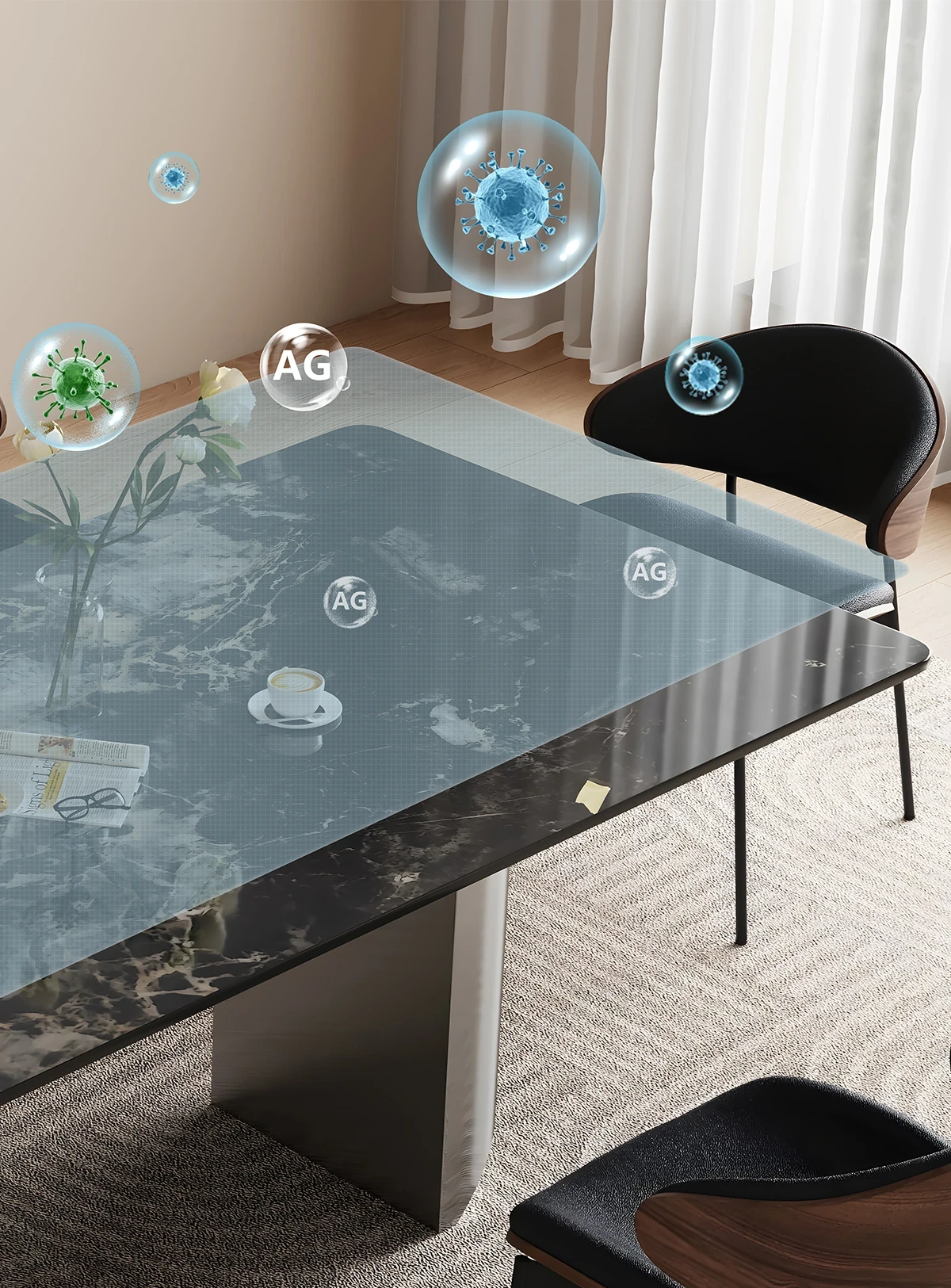 1.6*0.8メートル ブラックオニキス大理石ダイニングテーブル 【ミラー基盤】