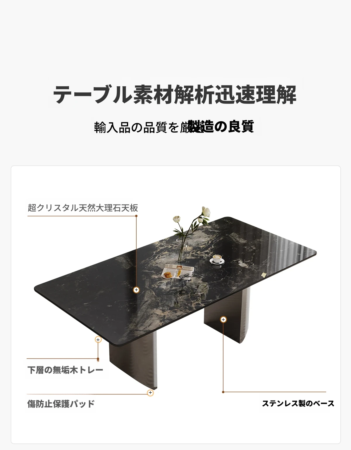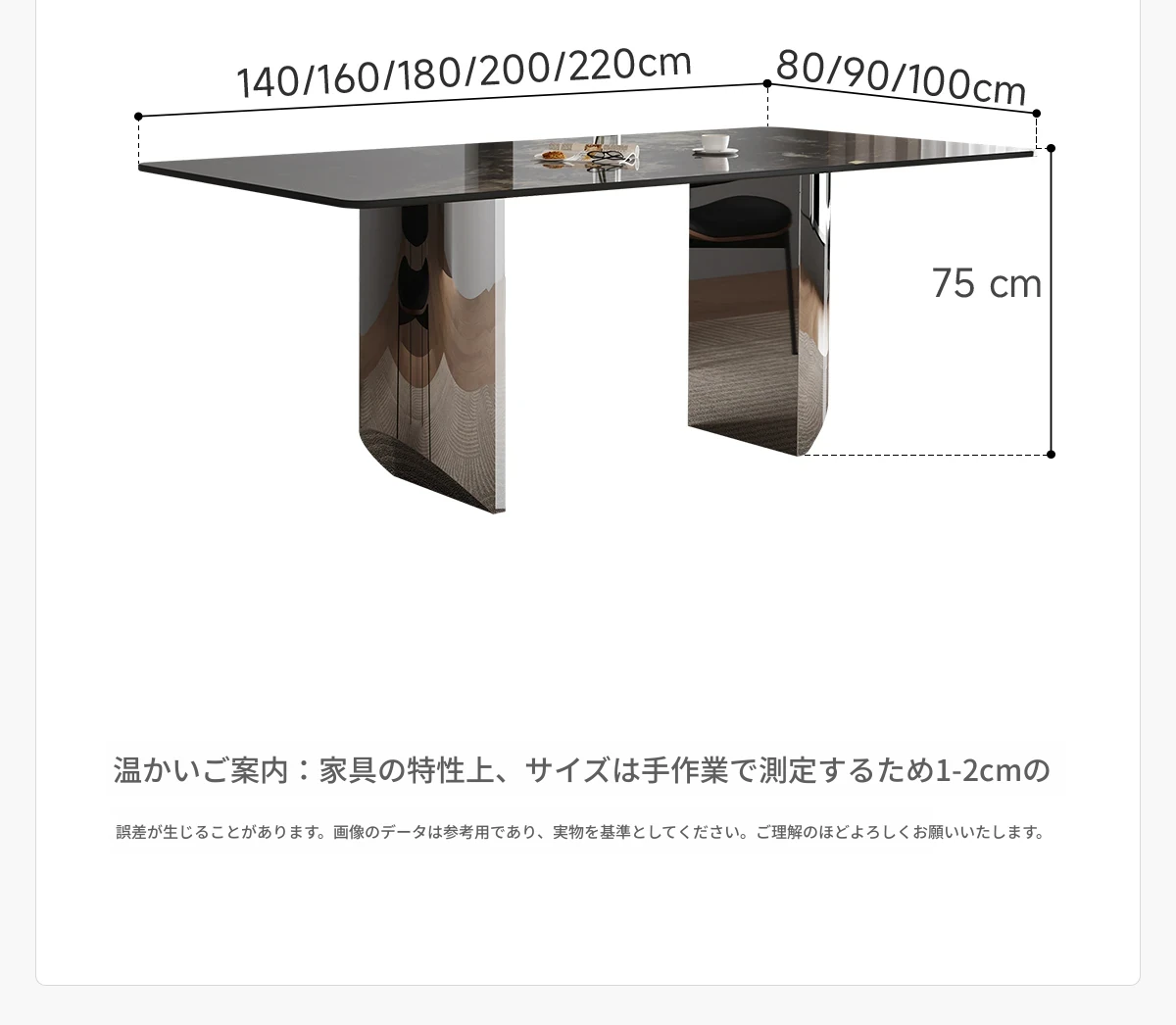 2.0*1.0メートル ブラックオニキス大理石ダイニングテーブル 【ミラー基盤】