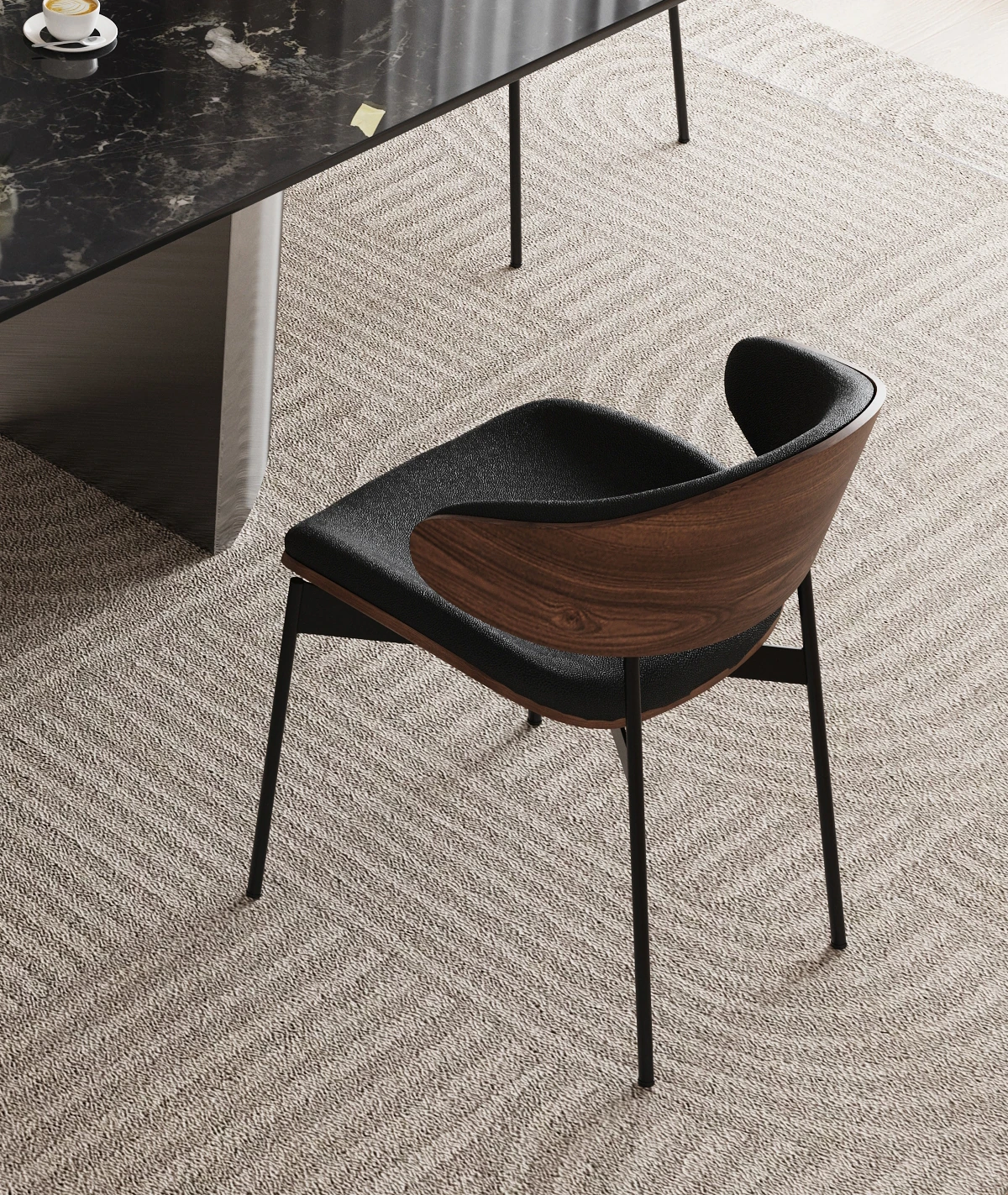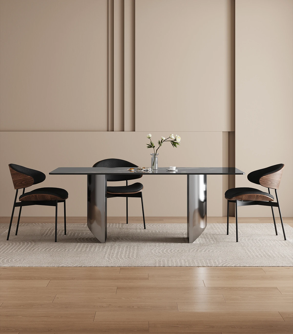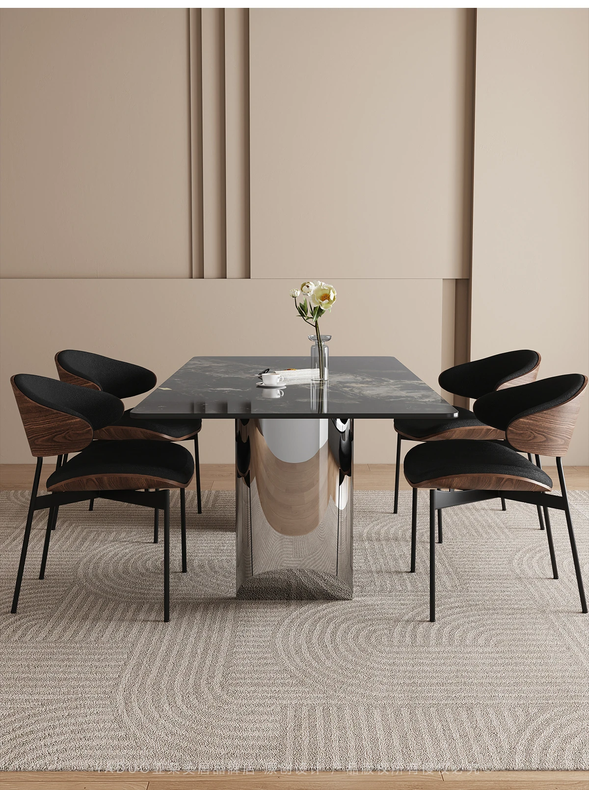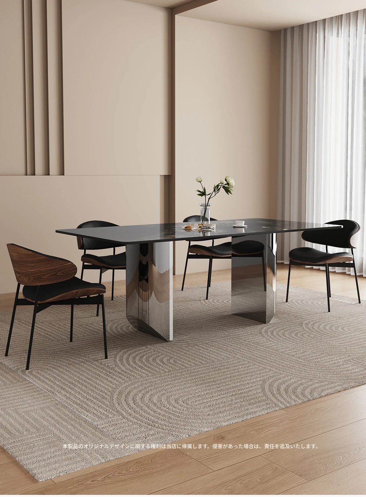 1.4*0.8メートル ブラックオニキス大理石ダイニングテーブル 【グレー鋼ベース】