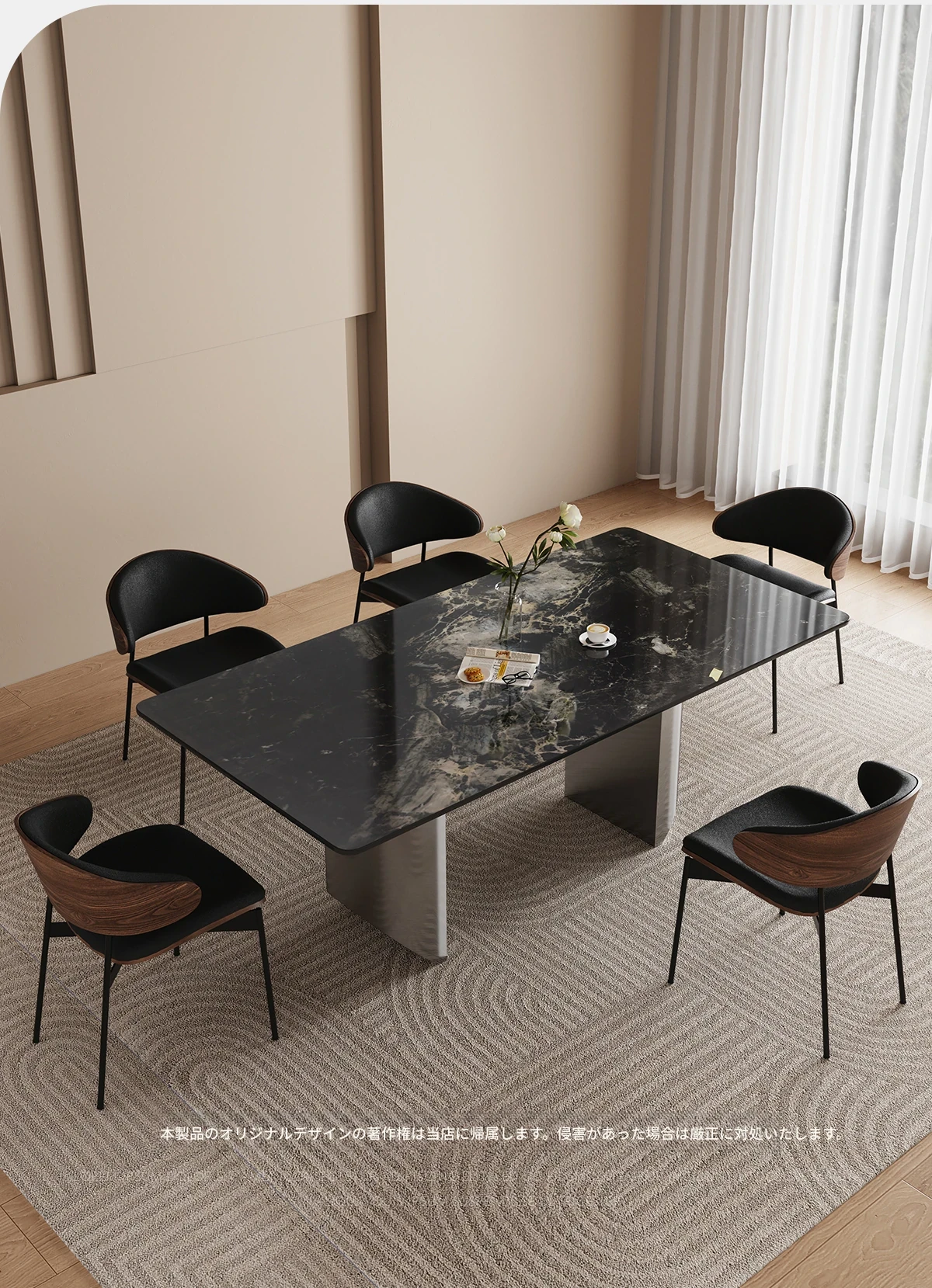 イタリアンミニマリズムの天然大理石ダイニングテーブル|小型家庭に最適なシンプルでモダンなラグジュアリー感|エレガントな長方形デザインで、おしゃれな食卓を演出!