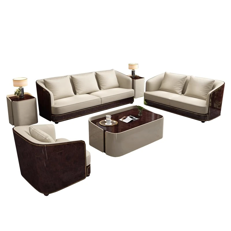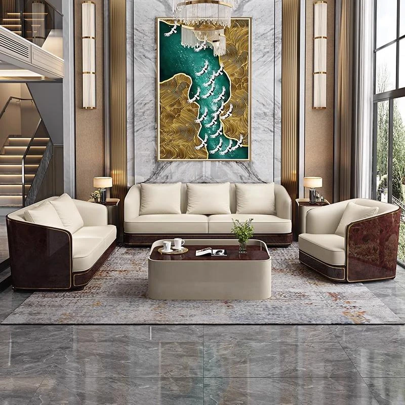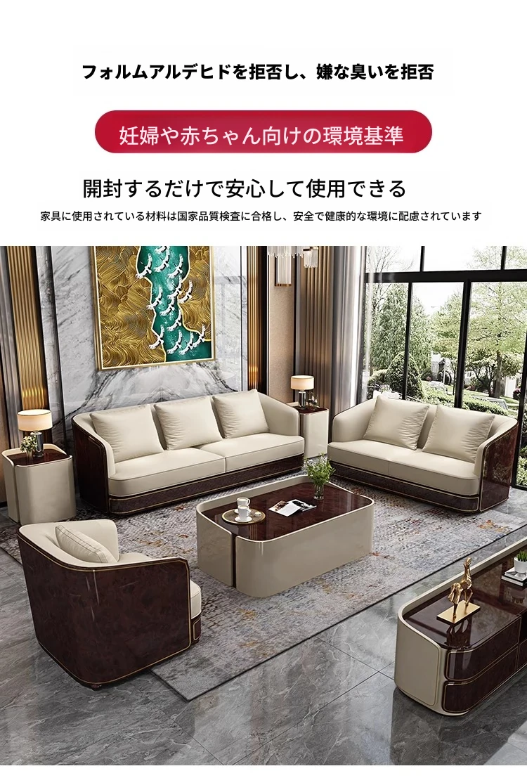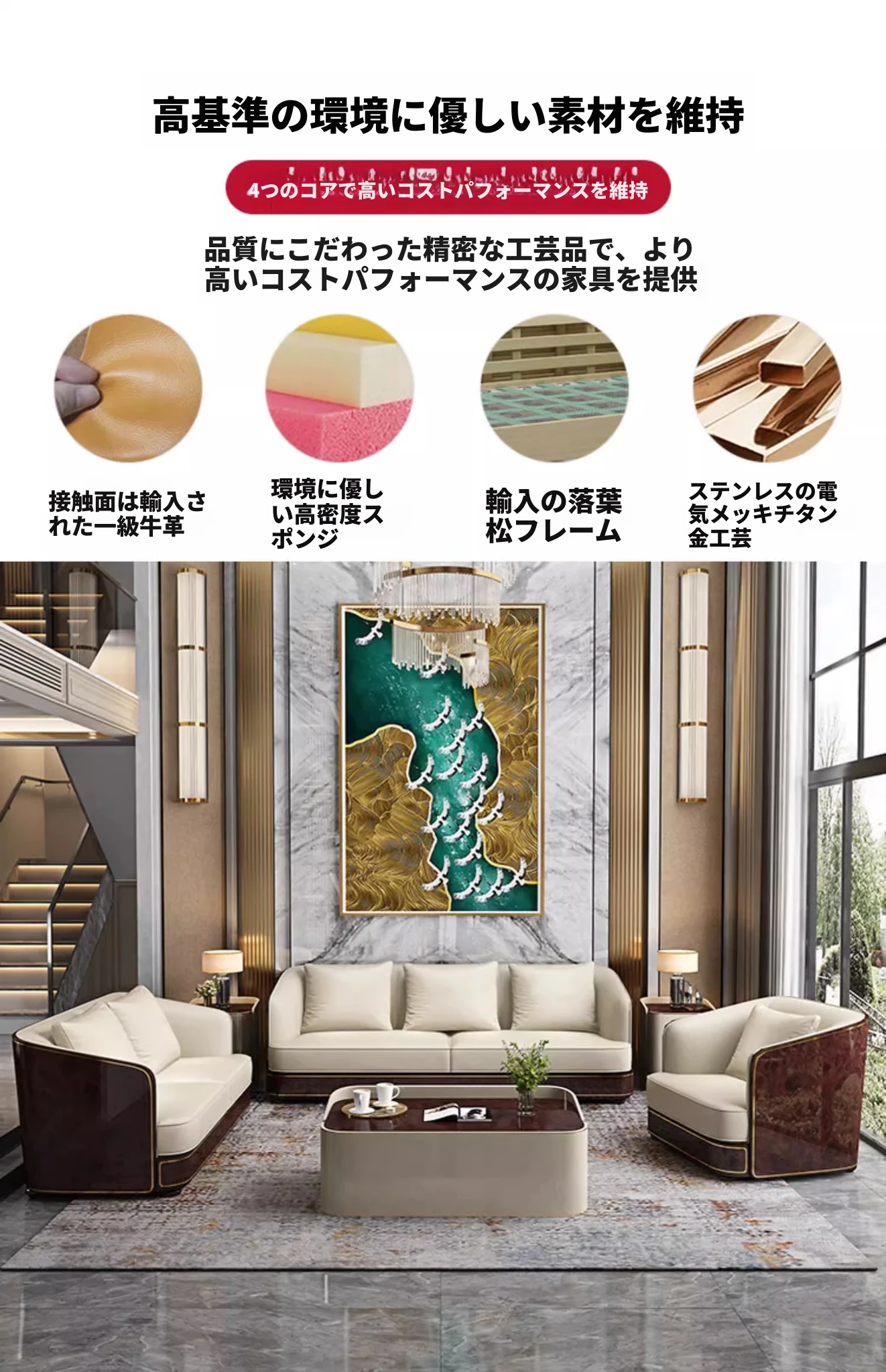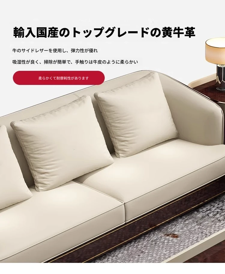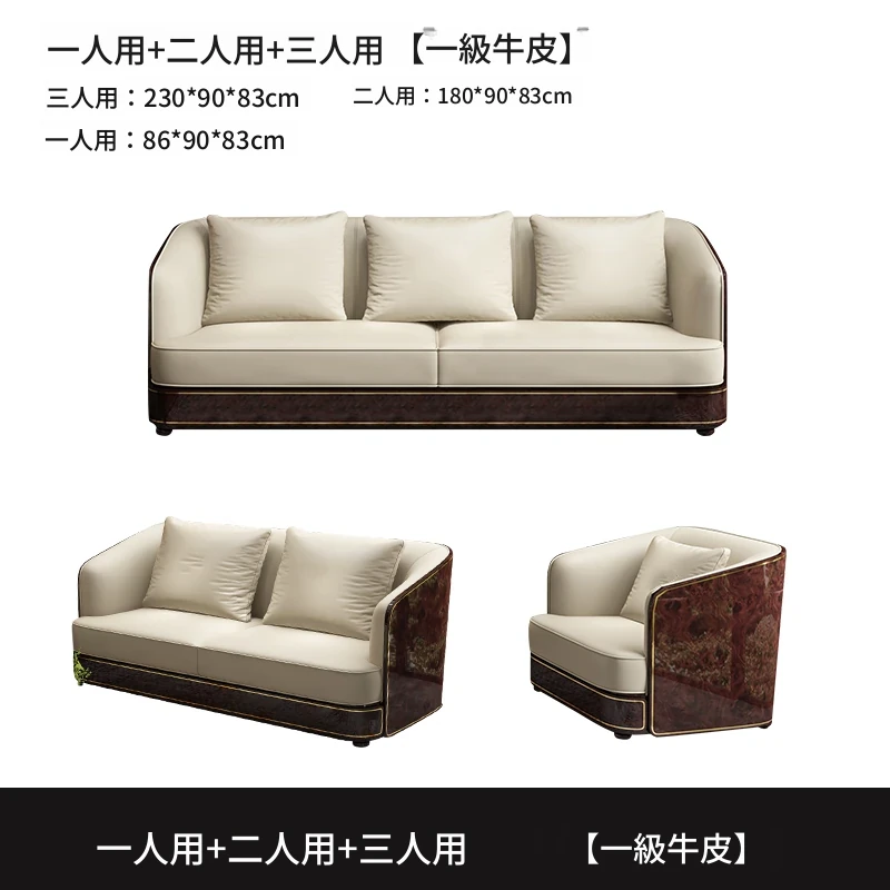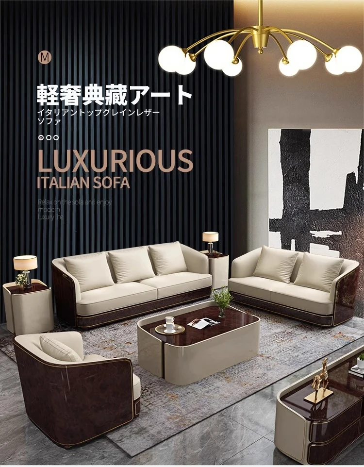 イタリアンポストモダン軽奢真皮ソファ|高級牛革使用、ヴィラ向けの広々としたリビングにぴったりな全室対応家具!洗練されたデザインで上質な空間を演出します。