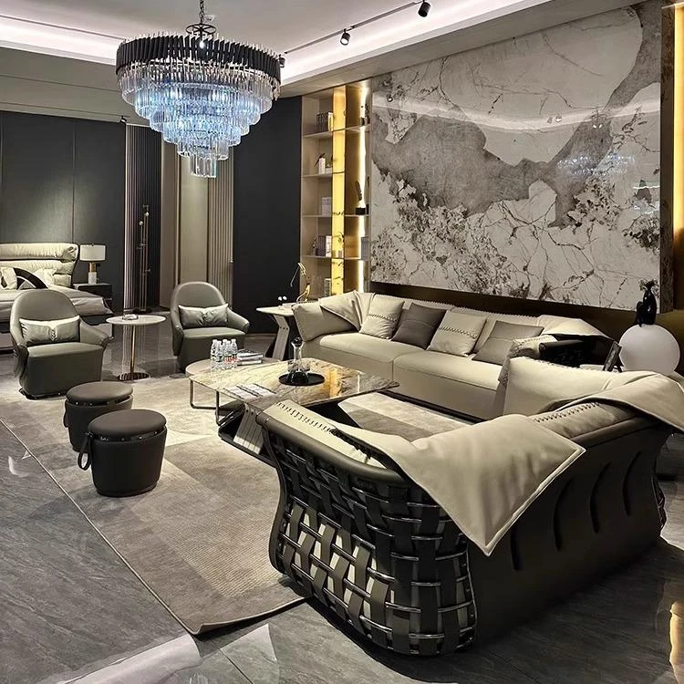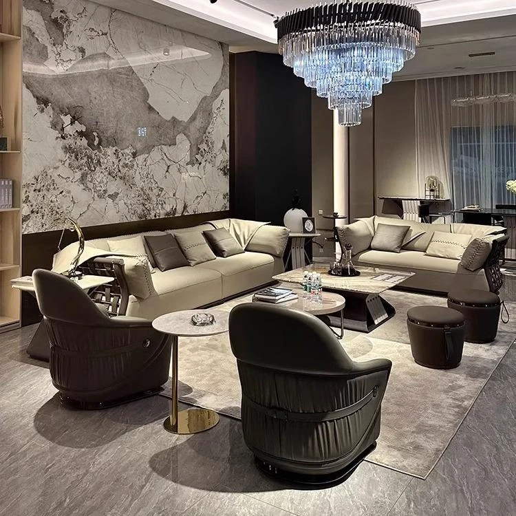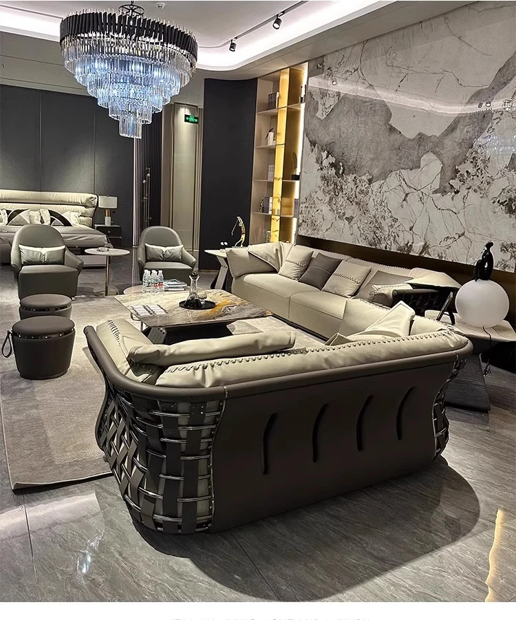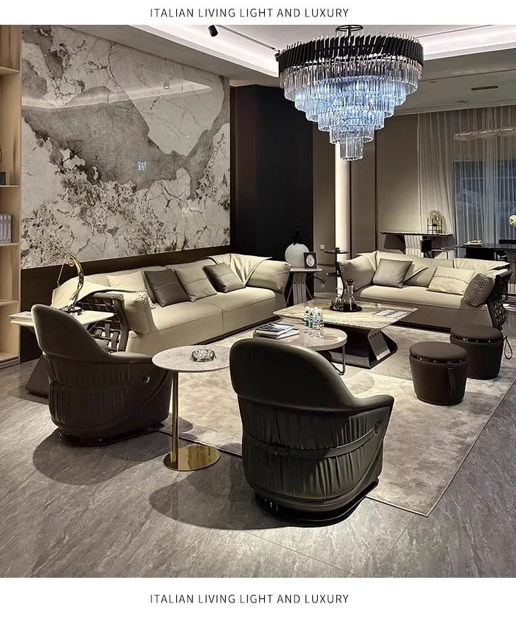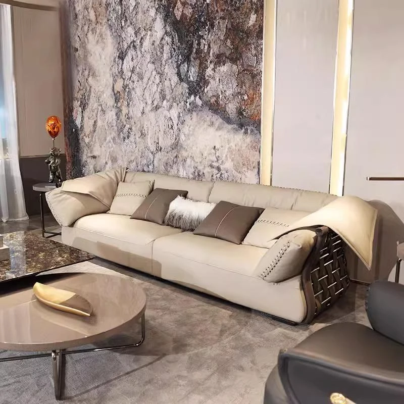 イタリアンポストモダン・ラグジュアリー本革ソファ 高級別荘向け・牛革使用・広々としたリビングに最適!ユニークなデザインで、全ての部屋にマッチする高品質な家具。あなたの空間を格上げする一品です。
