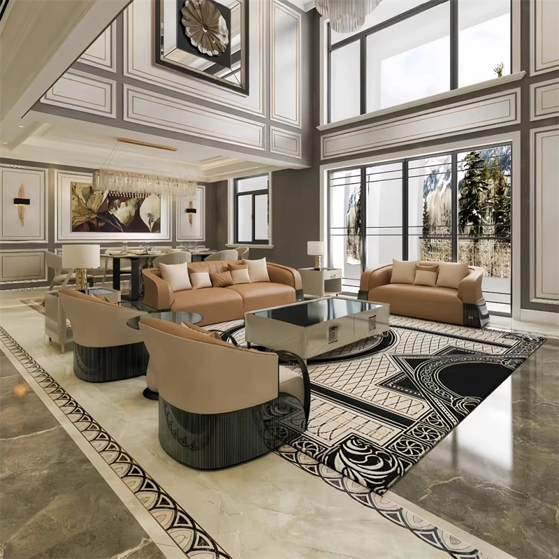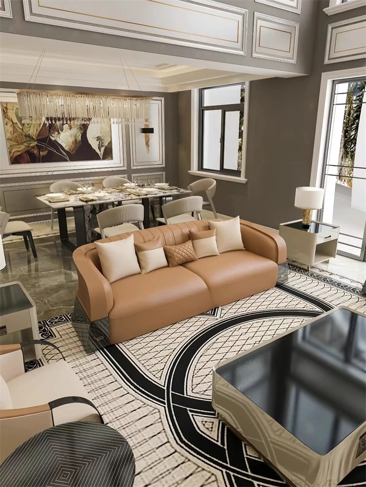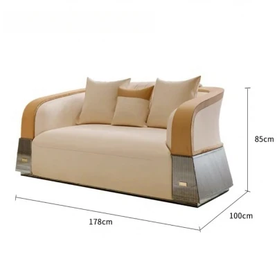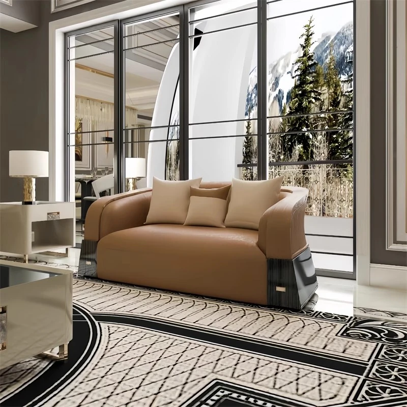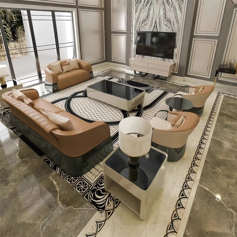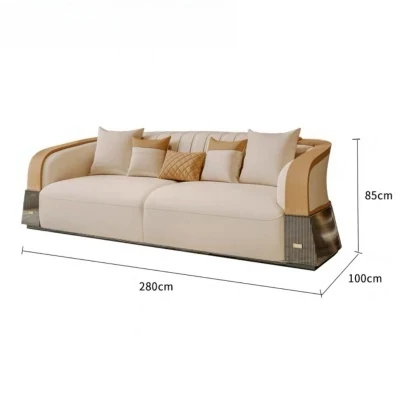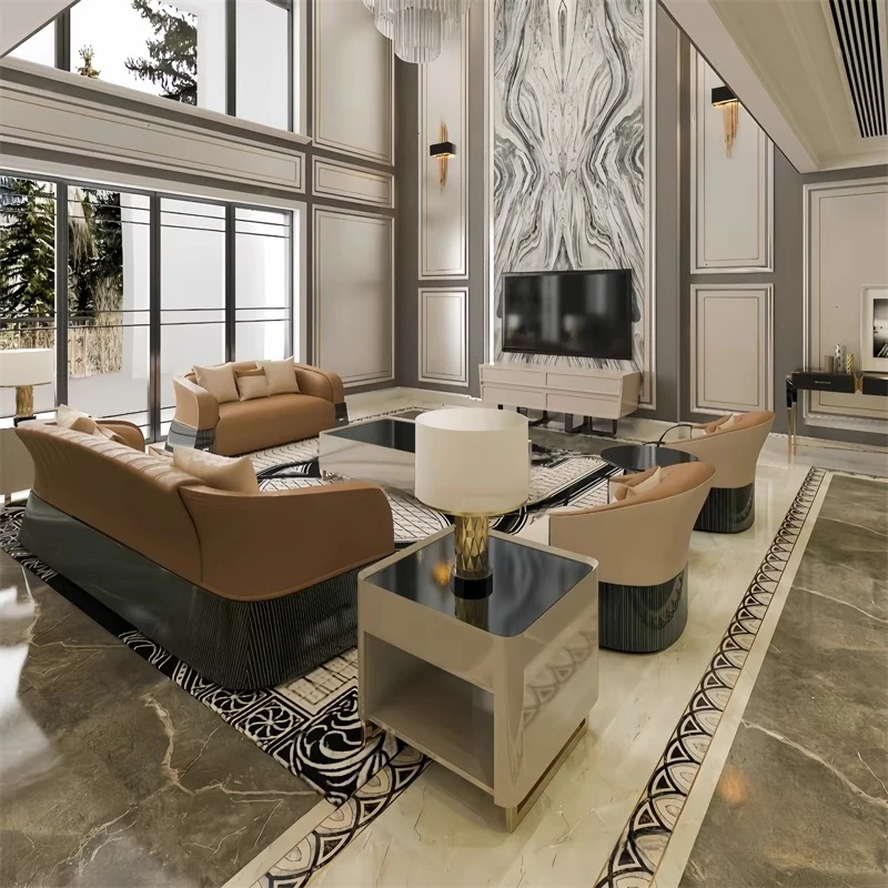 イタリアンポストモダン軽奢ソファ 高級ヴィラリビングルーム用 本革1234コンビネーション 豪華家具で贅沢なひとときを!